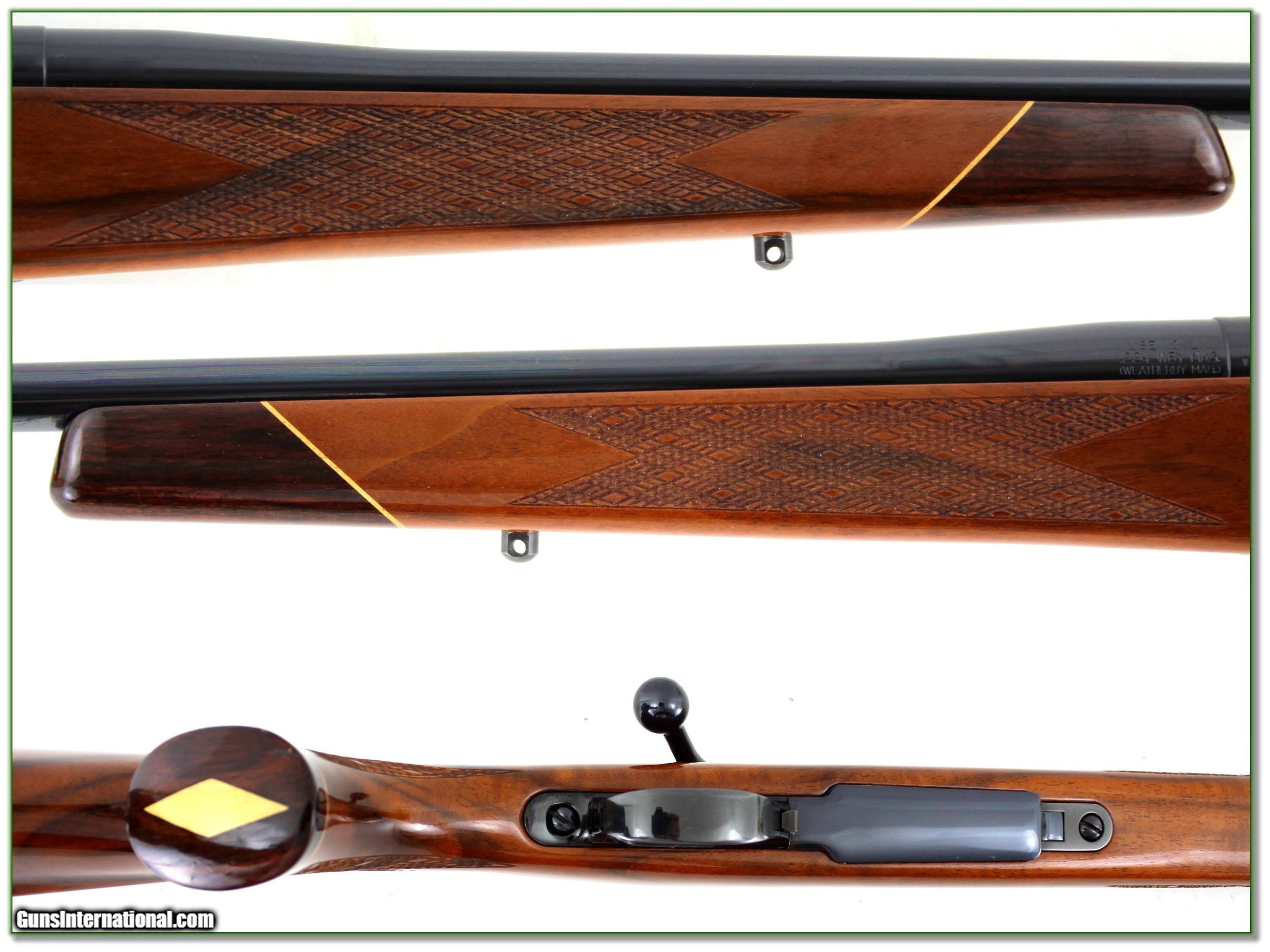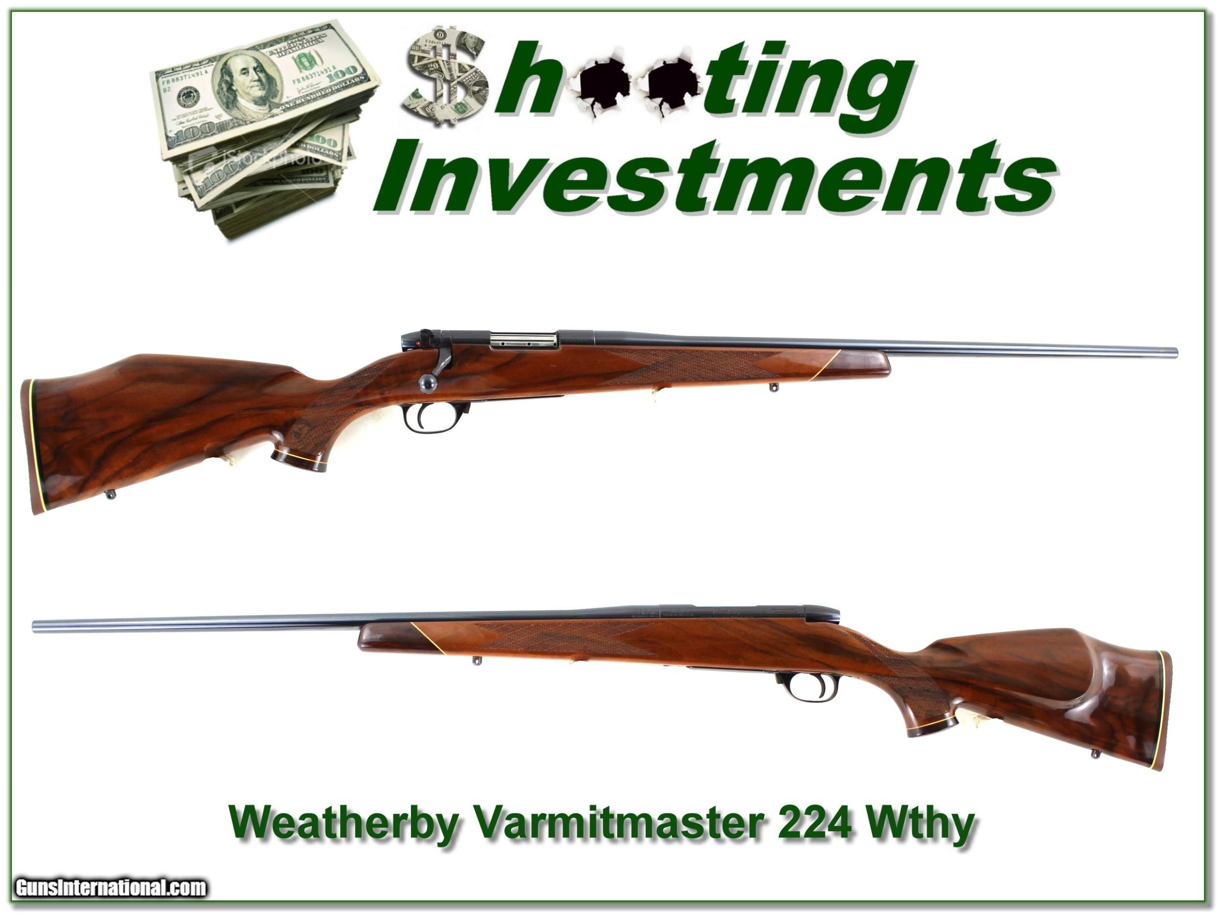 Description: This is a beautiful Weatherby Varmintmaster in 224 Weatherby Magnum. It has a 24in barrel. If fired since leaving the factory not more than a few rounds. And look at the wood! It is MUCH nicer than most. I find no marks on metal or wood. It will make a fine addition to your collection! Shipping and insurance is $49. Please email me with any questions or larger pictures. (Consign your quality firearms with Shooting Investments for only 12%! Let me know if you have any you would like to sell!) 21-0912 Payment: Payment is by Money Order, Cashiers Check or Personal Check. I can now also accept Credit Cards (MasterCard, Visa, Discover & American Express) with a 3% convenience fee. Shipping: The shipping charge will be listed in each description. It is $39 for most firearms. Some heavy guns or those insured for over $2000 will be higher. Shipments to Alaska and Hawaii are higher because air shipment is required. Most firearms are shipped on Tuesday and Thursday and usually in 5 days of receipt of payment. We package all shipments carefully and insure them. Optics are shipped Priority Mail and most other non-firearm shipments are shipped First Class. Returns: Our return policy is simple. If for any reason you are not pleased with your purchase, you may return your item for a full refund of purchase price. Ammunition cannot be returned. It is important to us that you are happy. Guns cannot be fired or dissembled before returning them and they must be returned in the same condition as received. Notification of a return must occur with-in 3 days of receipt at your dealer. Shipping, convenience and dealer fees are not refundable and are the responsibility of the buyer. Lay-a-way: If needed, we offer a 60 day lay-a-way option on most firearms. It is 1/3 now, 1/3 in 30 days and 1/3 in 60 days. Lay-a-way firearm sales are final and if not completed the first payment cannot be returned. Consigning your firearms with Shooting Investments: We will help you get top dollar for your firearms. While most local guns shops charge 20% or more, our fee is only 12% with a minimum of $75. At your local gun shop it might take months to sell. Selling on-line provides instant access to thousands of interested buyers. You won’t find any other on-line dealer willing to sell your firearms for only 12% or listing every gun on 3 separate s. Selling through an House typically costs the seller 15% and the buyer an addition 15% (so 30%) and you have to wait several months to sell and longer to receive funds. If properly priced, we will sell your firearms in a few weeks. Send us an email or give us a call and we’ll explain how easy it is for you to get top dollar. Trading: Trading for use is really just buying your gun to re-sell. If you have a gun you want to trade, please email a picture and we will let you know what we can give or it. You will always get more if we sell it for you on consignment. Help for California Buyers: We are happy to ship to California. It is the buyer’s responsibility to make sure any item you buy is legal in your state. We are also happy to help with your purchase of a firearm from someone other than us. If you see a gun you would like to buy but the seller can’t or won’t ship to California they can ship to use and we’ll then ship it to your California dealer. The cost for this service is only $30 + shipping. Let us know if we can help! SOLD |
