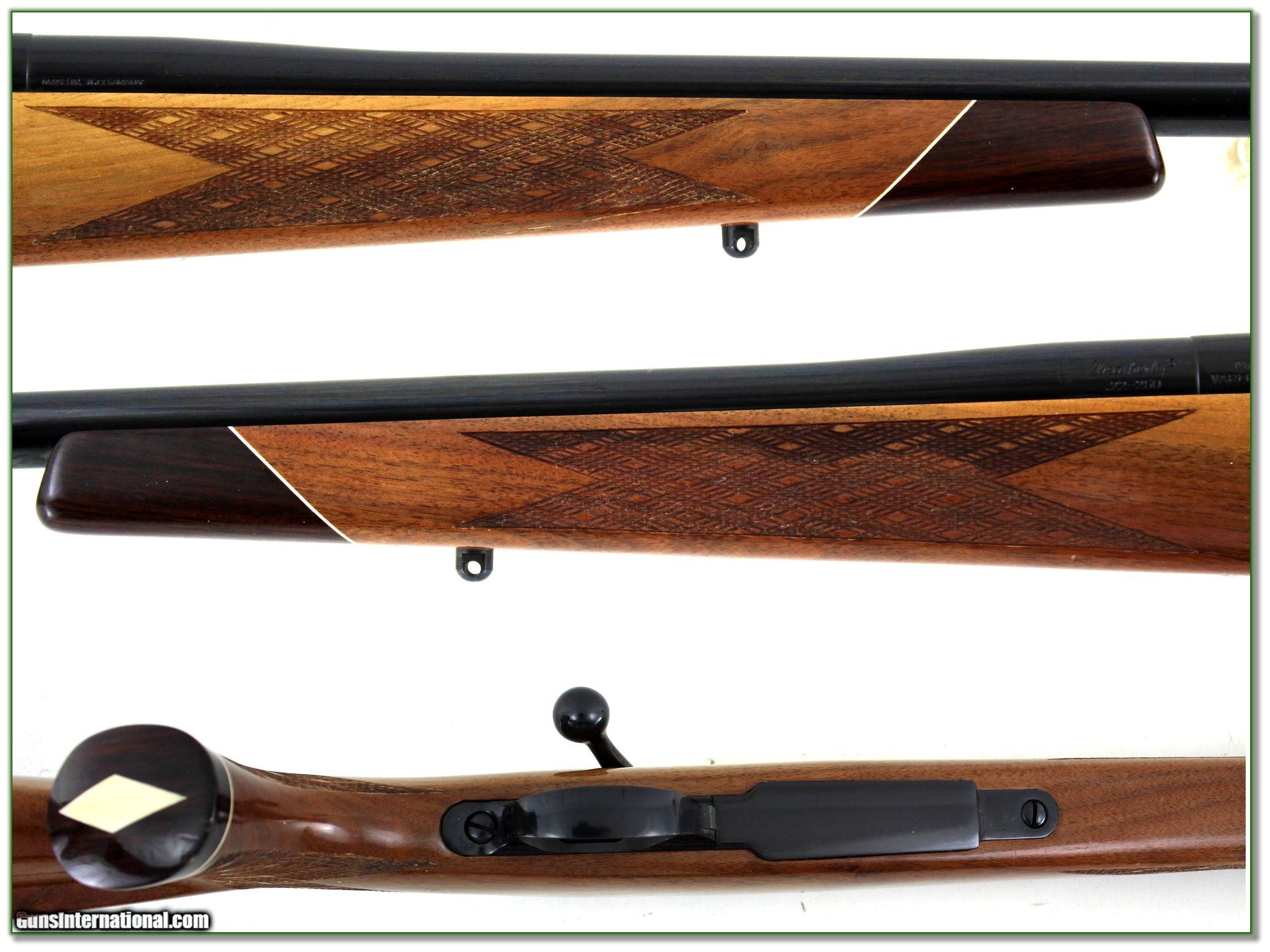 Description: Collectors, this is a 1966 German made Weatherby Varmintmaster. It is a nearly impossible to find 26in in 22-250. Nearly all were 24in guns. And look at the wood on this one! The stock feather crotch is outstanding. From the boldface I can tell this one was ever fired. Both metal and wood look NEW with no marks I find. You will look for a very long time and may never find a nicer one. It is a real Shooting Investment! Buy it before I decide to take I home. It is a Shooting Investment! Shipping and insurance is $69. Please email me with any questions or larger pictures. (Consign your quality firearms with Shooting Investments for only 12%! Let me know if you have any you would like to sell!) 24-0676 Payment: Payment is by Money Order, Cashier’s Check or Personal Check. I can now also accept Credit Cards (MasterCard, Visa, Discover & American Express) with a 3% convenience fee. Shipping: The shipping charge will be listed in each description. It is $49 for most firearms. Some heavy guns or those insured for over $2000 will be higher. Shipments to Alaska and Hawaii are higher because air shipment is required. Most firearms are shipped on Tuesday and Thursday and usually in 5 days of receipt of payment. We package all shipments carefully and insure them. Optics are shipped Priority Mail and most other non-firearm shipments are shipped First Class. Returns: Our return policy is simple. If for any reason you are not pleased with your purchase, you may return your item for a full refund of purchase price. Ammunition cannot be returned. It is important to us that you are happy. Guns cannot be fired or dissembled before returning them and they must be returned in the same condition as received. Notification of a return must occur within 3 days of receipt at your dealer. Shipping, convenience and dealer fees are not refundable and are the responsibility of the buyer. Lay-a-way: If needed, we offer a 60 day lay-a-way option on most firearms. It is 1/3 now, 1/3 in 30 days and 1/3 in 60 days. Lay-a-way firearm sales are final and cannot be returned. If a lay-a-way is not completed the first payment cannot be refunded. Consigning your firearms with Shooting Investments: We will help you get top dollar for your firearms. While most local guns shops charge 20% or more, our fee is only 12% with a minimum of $75. At your local gun shop it might take months to sell. Selling on-line provides instant access to thousands of interested buyers. You won’t find any other on-line dealer willing to sell your firearms for only 12% or listing every gun on 3 separate s. Selling through an House typically costs the seller 15% and the buyer an addition 15% (so 30%) and you have to wait several months to sell and longer to receive funds. If properly priced, we will sell your firearms within a few weeks. Send us an email or give us a call and we’ll explain how easy it is for you to get top dollar. Trading: Trading for us is really just buying your gun to re-sell. If you have a gun you want to trade, please email a picture and we will let you know what we can give for it. You will always get more if we sell it for you on consignment. SOLD |