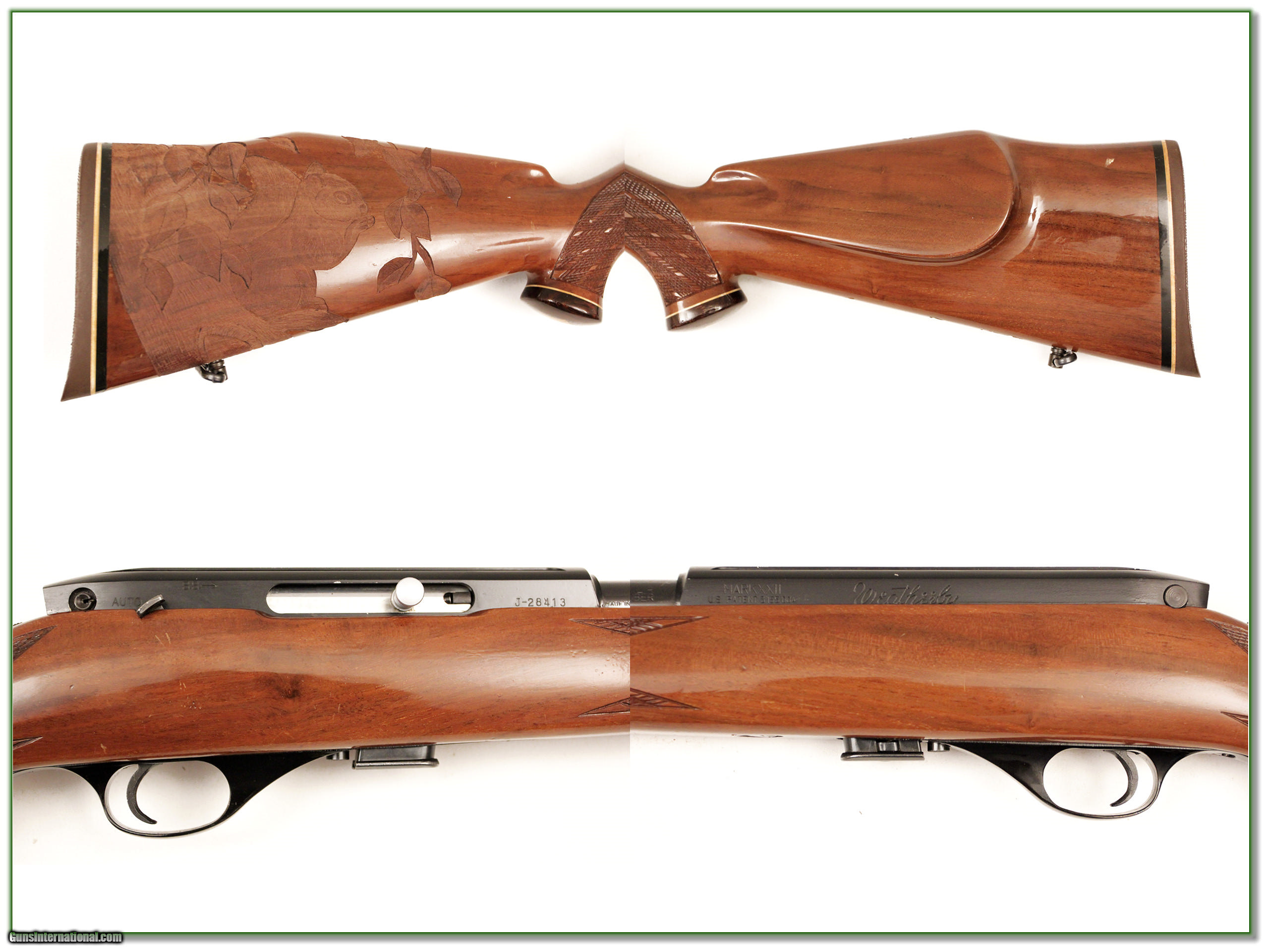 Description: This is the original Weatherby XXII 22 in semi-auto. This one has a nicely carved squirrel scene on the stock. The metal on this one is excellent and I don’t think fired many rounds. The wood looks to have bee refinished under the carving. I am selling this one on consignment and as such, lay-a-way can’t be used. It does of course have the standard 3 day inspection. Shipping and insurance is $35 or $15 more if you want it shipped in a new Plano hard case. Please email me with any questions or larger pictures. (I now consign quality firearms only 10%! Let me know if you have any you would like to sell!) [16-0342] Payment: Payment is by Money Order, Cashiers Check or Personal Check. I can now also accept MasterCard and Visa with a 3% convenience fee. PayPal can be used for some items but never firearms. Please let us know if you would like to pay via PayPal. Shipping: The shipping charge will be listed in each description. It is $35 for most guns. Some heavy guns or those insured for over $2000 will be higher. Shipments to Alaska and Hawaii are higher because air shipment is required. Most firearms are shipped within 5 days of receipt of payment. We prefer shipping at the beginning of the week to avoid firearms in transit over weekends. We package all shipments carefully and insure them for the full purchase price, rounded up to the next $100. In the unlikely event that damage occurs, it is important that you save all packaging material for the claims process. Optics are shipped Priority Mail and most other non-firearm shipments are shipped First Class. Returns: Our return policy is simple. If for any reason you are not pleased with your purchase, you may return your item for a refund. The only exception is ammunition, it cannot be returned. It is important to us that you are happy. Guns cannot be fired or dissembled before returning them and must be returned in the same condition as received. Notification of a return must occur with-in 3 days of receipt at your dealer. Shipping, convenience and dealer fees are not refundable and are the responsibility of the buyer. Lay-a-way: If needed, we offer a 60 day lay-a-way option on most firearms. It is 1/3 now, 1/3 in 30 days and 1/3 in 60 days. Lay-a-way firearm sales are final. Consigning your firearms with Shooting Investments: We will help you get top dollar for your firearms. While most local guns shops charge 20% or more, our fee is only 10% with a minimum of $50. At your local gun shop it might take months to sell. Selling on-line provides instant access to thousands of interested buyers. You won’t find any other on-line dealer willing to sell your firearms for only 10% or listing every gun on 4 separate s. Selling through an House typically costs the seller 15% and the buyer an addition 15% (so 30%) and you have to wait several months to sell and longer to receive funds. If properly priced, we will sell your firearms in a week or two. Send us an email or give us a call and we’ll explain how easy it is for you to get top dollar. Trading: We collect guns and usually just trade for guns we want to add to our collections. We often sell guns for others wanting to purchase one of ours. We find this the most fair to both of us. Our Commission is only 10% and we hold the gun you want until yours sells. Please contact us if you want to sell one of yours to buy one of ours. Help for California Buyers: We are happy to ship to California. It is the buyer’s responsibility to make sure any item you buy is legal in your state. We are also happy to help with your purchase of a firearm from someone other than us. If you see a gun you would like to buy but the seller can’t or won’t ship to California we can help. You buy the gun and have it shipped to us. We’ll then ship it to your California dealer. The cost for this service is only $30 + shipping. Let me know if we can help! SOLD |