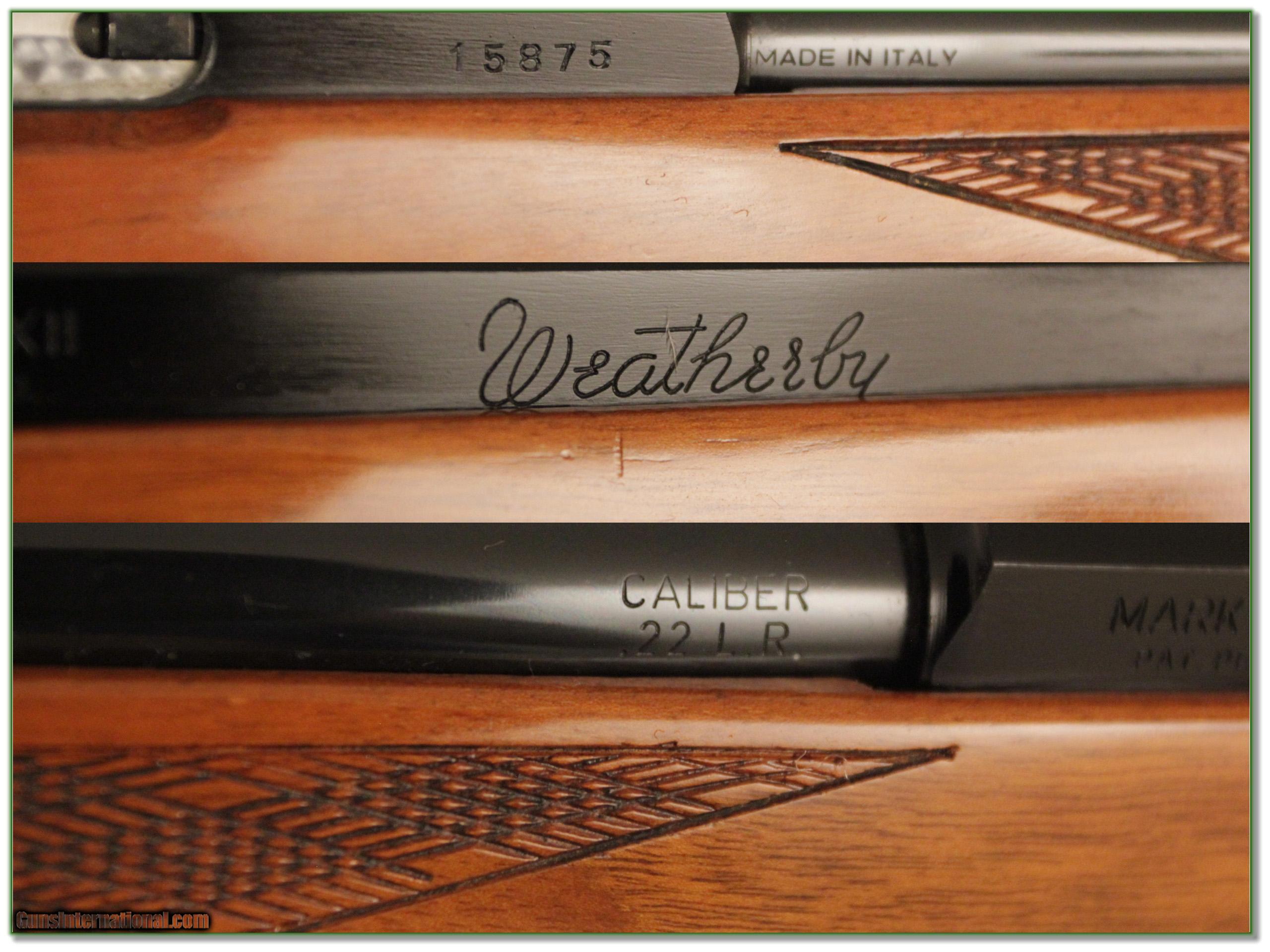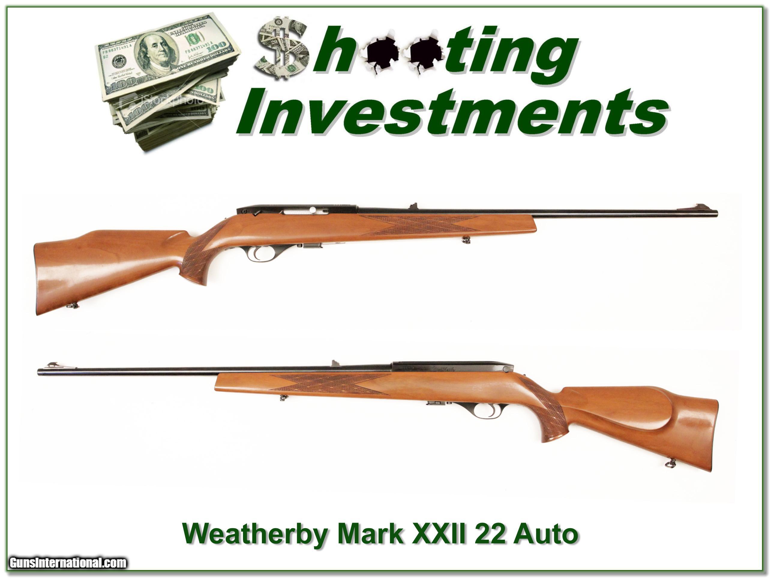 Description: This is an excellent condition Weatherby XXII 22 auto. It is an early Beretta made in Italy gun. Only a couple minor marks on the wood. I am selling this one on consignment and as such lay-a-way can’t be used. It does of course have the standard 3 day inspection. Shipping and insurance is $35 or $15 more if you want it shipped in a new Plano hard case. Please email me with any questions or larger pictures. (I now consign quality firearms only 10%! Let me know if you have any you would like to sell!) [15-1303] Payment: Payment is by Money Order, Cashiers Check or Personal Check. I can now also accept MasterCard and Visa with a 3% convenience fee. PayPal can be used for some items but never firearms. Please let us know if you would like to pay via PayPal. Shipping: The shipping charge will be listed in each description. It is $35 for most guns. Some heavy guns or those insured for over $2000 will be higher. Shipments to Alaska and Hawaii are higher because air shipment is required. Most firearms are shipped within 5 days of receipt of payment. We prefer shipping at the beginning of the week to avoid firearms in transit over weekends. We package all shipments carefully and insure them for the full purchase price, rounded up to the next $100. In the unlikely event that damage occurs, it is important that you save all packaging material for the claims process. Optics are shipped Priority Mail and most other non-firearm shipments are shipped First Class. Returns: Our return policy is simple. If for any reason you are not pleased with your purchase, you may return your item for a refund. The only exception is ammunition, it cannot be returned. It is important to us that you are happy. Guns cannot be fired or dissembled before returning them and must be returned in the same condition as received. Notification of a return must occur with-in 3 days of receipt at your dealer. Shipping, convenience and dealer fees are not refundable and are the responsibility of the buyer. Lay-a-way: If needed, we offer a 60 day lay-a-way option on most firearms. It is 1/3 now, 1/3 in 30 days and 1/3 in 60 days. Lay-a-way firearm sales are final. Consigning your firearms with Shooting Investments: We will help you get top dollar for your firearms. While most local guns shops charge 20% or more, our fee is only 10% with a minimum of $50. At your local gun shop it might take months to sell. Selling on-line provides instant access to thousands of interested buyers. You won’t find any other on-line dealer willing to sell your firearms for only 10% or listing every gun on 4 separate s. Selling through an House typically costs the seller 15% and the buyer an addition 15% (so 30%) and you have to wait several months to sell and longer to receive funds. If properly priced, we will sell your firearms in a week or two. Send us an email or give us a call and we’ll explain how easy it is for you to get top dollar. Trading: We collect guns and usually just trade for guns we want to add to our collections. We often sell guns for others wanting to purchase one of ours. We find this the most fair to both of us. Our Commission is only 10% and we hold the gun you want until yours sells. Please contact us if you want to sell one of yours to buy one of ours. Help for California Buyers: We are happy to ship to California. It is the buyer’s responsibility to make sure any item you buy is legal in your state. We are also happy to help with your purchase of a firearm from someone other than us. If you see a gun you would like to buy but the seller can’t or won’t ship to California we can help. You buy the gun and have it shipped to us. We’ll then ship it to your California dealer. The cost for this service is only $30 + shipping. Let me know if we can help! SOLD |