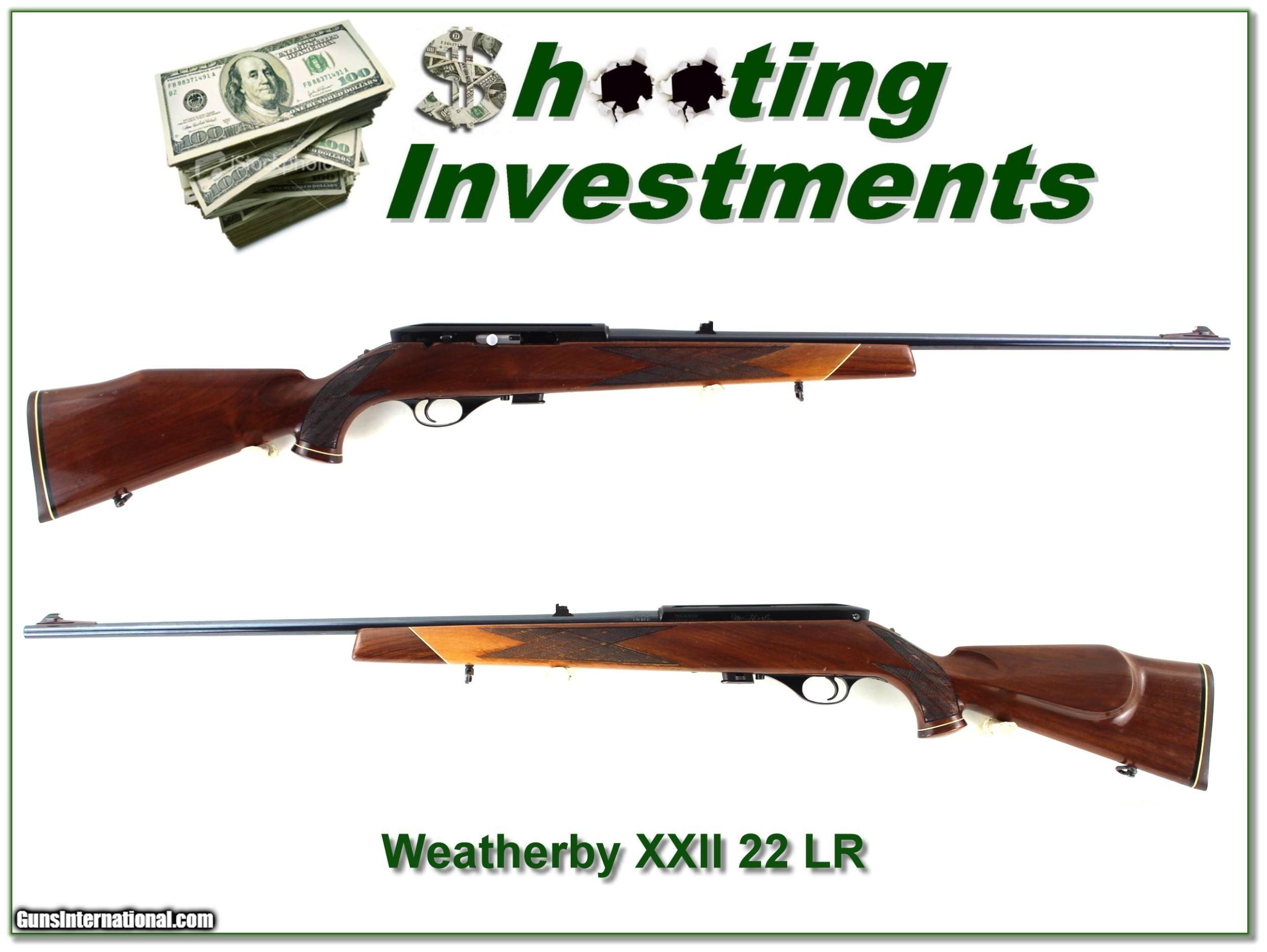 Description: This is an early 1966 KTG (Japan) made Weatherby XXII 22 auto. The metal is in excellent condition and the wood only has a few minor marks. These early guns are just like the Italian Deluxe XXII’s with rosewood tips, adjustable trigger, more sturdy safety and magazine release and 3 leaf rear sight. These are know as accurate semi-autos! Shipping and insurance is $39. Please email me with any questions or larger pictures. (Consign your quality firearms with Shooting Investments for only 12%! Let me know if you have any you would like to sell!) 21-1479 Payment: Payment is by Money Order, Cashiers Check or Personal Check. I can now also accept Credit Cards (MasterCard, Visa, Discover & American Express) with a 3% convenience fee. Shipping: The shipping charge will be listed in each description. It is $39 for most firearms. Some heavy guns or those insured for over $2000 will be higher. Shipments to Alaska and Hawaii are higher because air shipment is required. Most firearms are shipped on Tuesday and Thursday and usually in 5 days of receipt of payment. We package all shipments carefully and insure them. Optics are shipped Priority Mail and most other non-firearm shipments are shipped First Class. Returns: Our return policy is simple. If for any reason you are not pleased with your purchase, you may return your item for a full refund of purchase price. Ammunition cannot be returned. It is important to us that you are happy. Guns cannot be fired or dissembled before returning them and they must be returned in the same condition as received. Notification of a return must occur with-in 3 days of receipt at your dealer. Shipping, convenience and dealer fees are not refundable and are the responsibility of the buyer. Lay-a-way: If needed, we offer a 60 day lay-a-way option on most firearms. It is 1/3 now, 1/3 in 30 days and 1/3 in 60 days. Lay-a-way firearm sales are final and if not completed the first payment cannot be returned. Consigning your firearms with Shooting Investments: We will help you get top dollar for your firearms. While most local guns shops charge 20% or more, our fee is only 12% with a minimum of $75. At your local gun shop it might take months to sell. Selling on-line provides instant access to thousands of interested buyers. You won’t find any other on-line dealer willing to sell your firearms for only 12% or listing every gun on 3 separate s. Selling through an House typically costs the seller 15% and the buyer an addition 15% (so 30%) and you have to wait several months to sell and longer to receive funds. If properly priced, we will sell your firearms in a few weeks. Send us an email or give us a call and we’ll explain how easy it is for you to get top dollar. Trading: Trading for use is really just buying your gun to re-sell. If you have a gun you want to trade, please email a picture and we will let you know what we can give or it. You will always get more if we sell it for you on consignment. Help for California Buyers: We are happy to ship to California. It is the buyer’s responsibility to make sure any item you buy is legal in your state. We are also happy to help with your purchase of a firearm from someone other than us. If you see a gun you would like to buy but the seller can’t or won’t ship to California they can ship to use and we’ll then ship it to your California dealer. The cost for this service is only $30 + shipping. Let us know if we can help! SOLD |