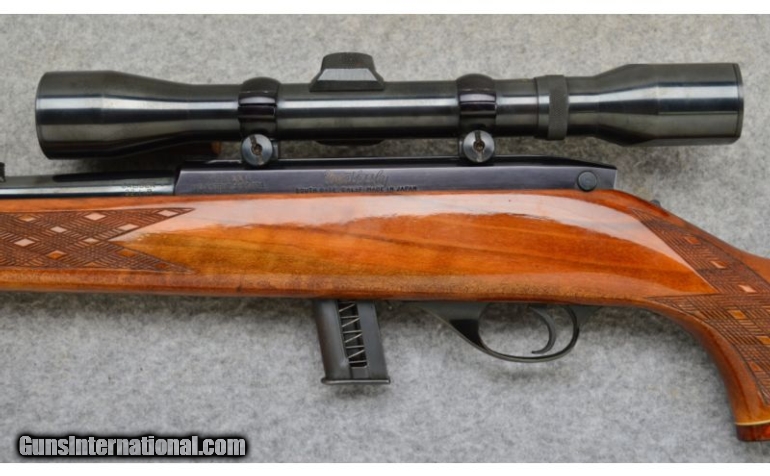 Description: Excellent condition overall with handling marks on the stock. SOLD Caliber Info: .22 Long Rifle Rimfire Metal Condition: Excellent Wood Condition: Very Good Bore Condition: Excellent Barrels: 24 Stock: Skipline Checkered Walnut with Monte Carlo Comb and Cheekpiece Stock Dimensions: LOP: 13 5/8 Fore End: Rosewood Tip Butt Pad: Weatherby Butt Pad Weight: 7 lbs. 8 ozs. Sights: Weaver K4-W 4x Scope Item Location: Hamburg, PA |