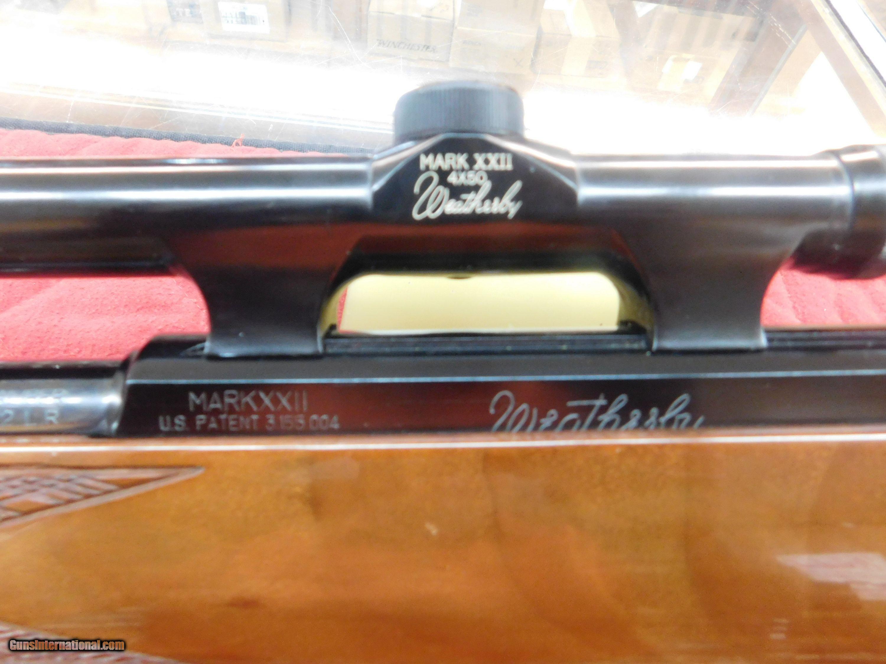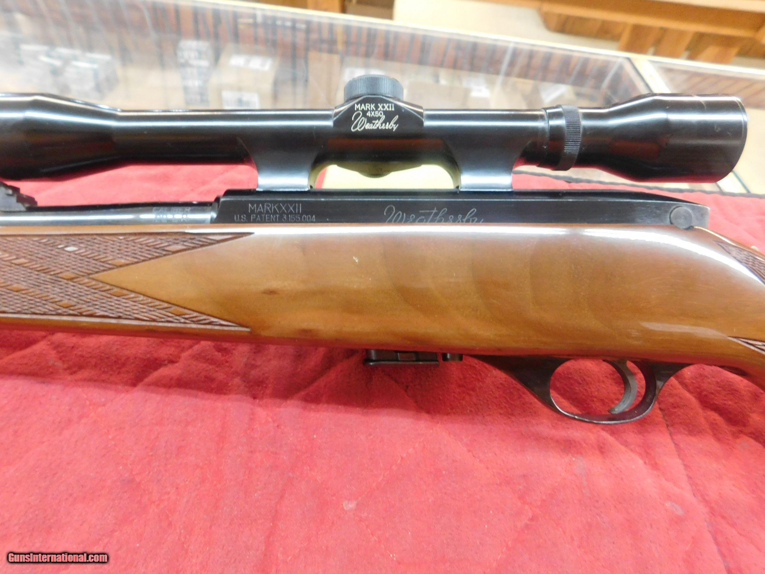 Description: This is a rifle one does not run across often. Here we have a Weatherby Mark XXII 22 LR semi auto rifle with the correct pad original magizine and best of all the original factory matching scope. The pictures will speak to the condition of the rifle. It does show honest wear but is not hurt. THis is a great find for collectors and shooters alike. SOLD Manufacturer: Weatherby Model: Mark XXII Caliber Info: 22 |