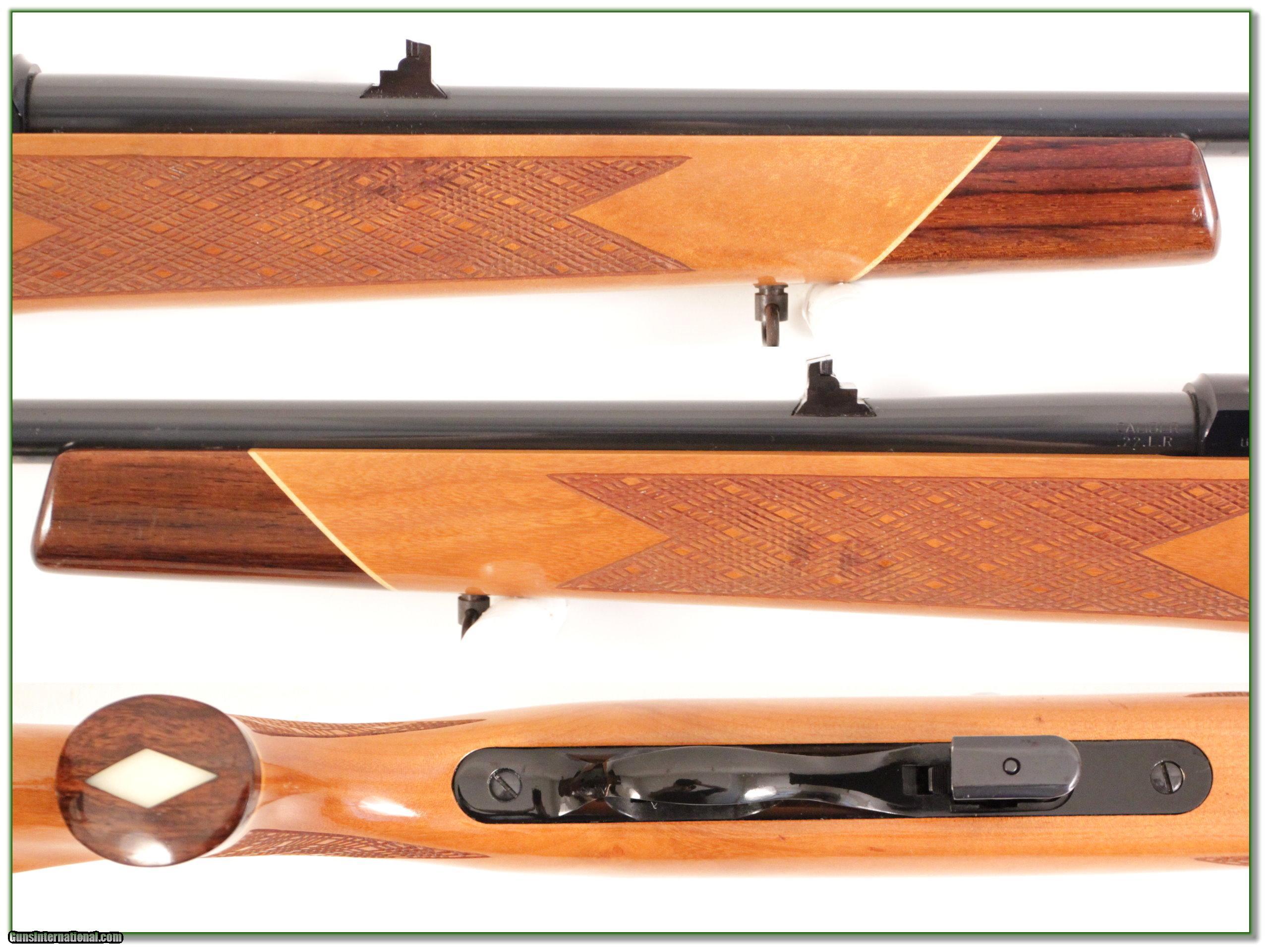 Description: Collectors and shooters, this is an excellent collector condition Weatherby XXII. This is the original semi-auto gun. This one had beautiful blond wood and was made in Japan. It comes with a 10 round magazine as shown. It is a real Shooting Investment! Shipping and insurance is $35 or $15 more if you want it shipped in a new Plano hard case. Please email me with any questions or larger pictures. (I now consign quality firearms only 10%! Let me know if you have any you would like to sell!) [16-1077] Payment: Payment is by Money Order, Cashiers Check or Personal Check. I can now also accept MasterCard and Visa with a 3% convenience fee. PayPal can be used for some items but never firearms. Please let us know if you would like to pay via PayPal. Shipping: The shipping charge will be listed in each description. It is $35 for most guns. Some heavy guns or those insured for over $2000 will be higher. Shipments to Alaska and Hawaii are higher because air shipment is required. Most firearms are shipped within 5 days of receipt of payment. We prefer shipping at the beginning of the week to avoid firearms in transit over weekends. We package all shipments carefully and insure them for the full purchase price, rounded up to the next $100. In the unlikely event that damage occurs, it is important that you save all packaging material for the claims process. Optics are shipped Priority Mail and most other non-firearm shipments are shipped First Class. Returns: Our return policy is simple. If for any reason you are not pleased with your purchase, you may return your item for a refund. The only exception is ammunition, it cannot be returned. It is important to us that you are happy. Guns cannot be fired or dissembled before returning them and must be returned in the same condition as received. Notification of a return must occur with-in 3 days of receipt at your dealer. Shipping, convenience and dealer fees are not refundable and are the responsibility of the buyer. Lay-a-way: If needed, we offer a 60 day lay-a-way option on most firearms. It is 1/3 now, 1/3 in 30 days and 1/3 in 60 days. Lay-a-way firearm sales are final. Consigning your firearms with Shooting Investments: We will help you get top dollar for your firearms. While most local guns shops charge 20% or more, our fee is only 10% with a minimum of $50. At your local gun shop it might take months to sell. Selling on-line provides instant access to thousands of interested buyers. You won’t find any other on-line dealer willing to sell your firearms for only 10% or listing every gun on 4 separate s. Selling through an House typically costs the seller 15% and the buyer an addition 15% (so 30%) and you have to wait several months to sell and longer to receive funds. If properly priced, we will sell your firearms in a week or two. Send us an email or give us a call and we’ll explain how easy it is for you to get top dollar. Trading: We collect guns and usually just trade for guns we want to add to our collections. We often sell guns for others wanting to purchase one of ours. We find this the most fair to both of us. Our Commission is only 10% and we hold the gun you want until yours sells. Please contact us if you want to sell one of yours to buy one of ours. Help for California Buyers: We are happy to ship to California. It is the buyer’s responsibility to make sure any item you buy is legal in your state. We are also happy to help with your purchase of a firearm from someone other than us. If you see a gun you would like to buy but the seller can’t or won’t ship to California we can help. You buy the gun and have it shipped to us. We’ll then ship it to your California dealer. The cost for this service is only $30 + shipping. Let me know if we can help! SOLD |