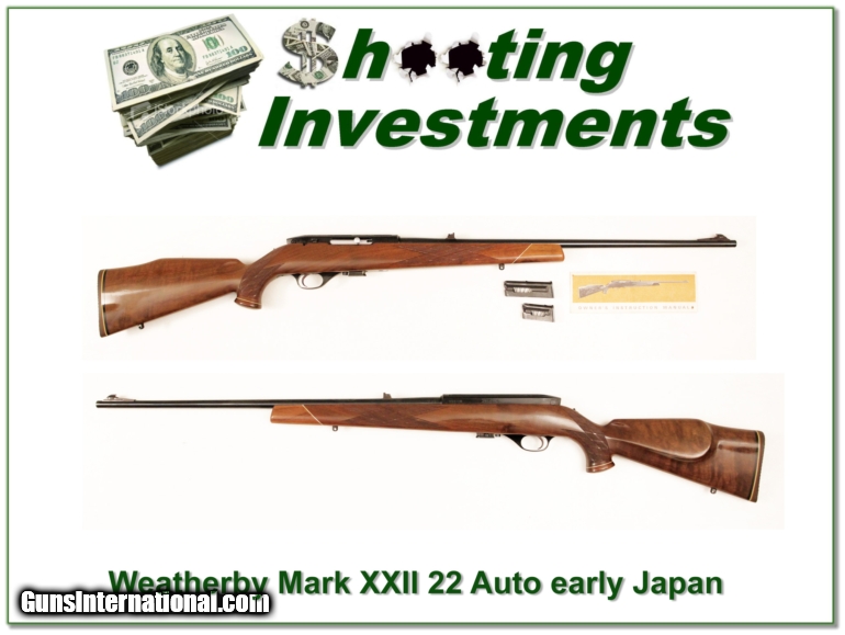 Description: This is a very nice Weatherby XXII 22 semi-auto. It is an early Japan made gun with all the features of the Italian made guns. That is 3 leaf rear sight, adjustable trigger pull, push button magazine release and more sturdy safety switch. This one comes with factory manual and 3 magazines. It has only a few minor marks. I am selling this one on consignment and as such lay-a-way can’t be used. It does of course have the standard 3 day inspection. Shipping and insurance is $30 or $18 more if you want it shipped in a new Plano hard case. Please email me with any questions or larger pictures. (I now consign quality firearms only 10%! Let me know if you have any you would like to sell!) [15-0417] Payment: Payment is by Money Order, Cashiers Check or Personal Check. I can now also accept MasterCard and Visa with a 3% convenience fee. PayPal can be used for some items but never firearms. Please let us know if you would like to pay via PayPal. Shipping: The shipping charge will be listed in each description. It is $30 for most guns. Some heavy guns or those insured for over $2000 may be higher. Shipments to Alaska and Hawaii are higher because air shipment is required. Most firearms are shipped within 5 days of receipt of payment. We prefer shipping at the beginning of the week to avoid firearms in transit over weekends. We package all shipments carefully and insure them for the full purchase price, rounded up to the next $100. In the unlikely event that damage occurs, it is important that you save all packaging material for the claims process. Optics are shipped Priority Mail and most other non-firearm shipments are shipped First Class. Returns: Our return policy is simple. If for any reason you are not pleased with your purchase, you may return your item for a refund. The only exception is ammunition, it cannot be returned. It is important to us that you are happy. Guns cannot be fired or dissembled before returning them and must be returned in the same condition as received. Notification of a return must occur with-in 3 days of receipt at your dealer. Shipping, convenience and dealer fees are not refundable and are the responsibility of the buyer. Lay-a-way: If needed, we offer a 60 day lay-a-way option on most firearms. It is 1/3 now, 1/3 in 30 days and 1/3 in 60 days. Lay-a-way firearm sales are final. Consigning your firearms with Shooting Investments: We will help you get top dollar for your firearms. While most local guns shops charge 20% or more, our fee is only 10% with a minimum of $50. At your local gun shop it might take months to sell. Selling on-line provides instant access to thousands of interested buyers. You won’t find any other on-line dealer willing to sell your firearms for only 10% or listing every gun on 4 separate s. Selling through an House typically costs the seller 15% and the buyer an addition 15% (so 30%) and you have to wait several months to sell and longer to receive funds. If properly priced, we will sell your firearms in a week or two. Send us an email or give us a call and we’ll explain how easy it is for you to get top dollar. Trading: We collect guns and usually just trade for guns we want to add to our collections. We often sell guns for others wanting to purchase one of ours. We find this the most fair to both of us. Our Commission is only 10% and we hold the gun you want until yours sells. Please contact us if you want to sell one of yours to buy one of ours. Help for California Buyers: We are happy to ship to California. It is the buyer’s responsibility to make sure any item you buy is legal in your state. We are also happy to help with your purchase of a firearm from someone other than us. If you see a gun you would like to buy but the seller can’t or won’t ship to California we can help. You buy the gun and have it shipped to us. We’ll then ship it to your California dealer. The cost for this service is only $30 + shipping. Let me know if we can help! SOLD |