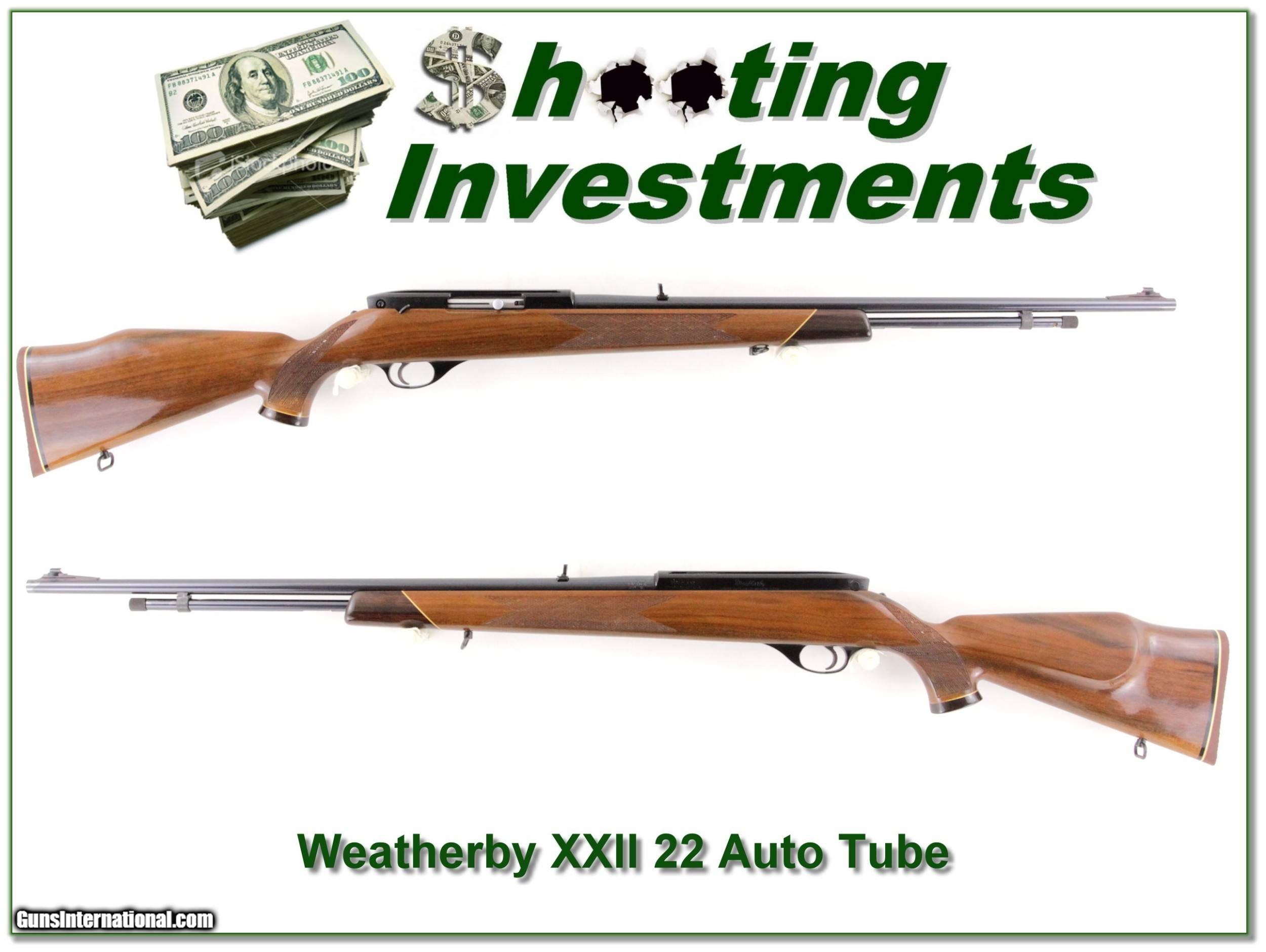 Description: Weatherby and rimfires collectors, this is a no longer made Weatherby Mark XXII, 22 semi-auto. It is the harder to find tube model that holds 15 rounds and this one looks about new. I am sure only a few rounds fired. The wood is a darker brown. I see no marks of note! It will make a nice addition to any collection and is sure to increase in value over time. It is a Shooting Investment. Shipping with insurance is $39. Please email me with any questions or larger pictures. (Consign your quality firearms with Shooting Investments for only 12%! Let me know if you have any you would like to sell!) 19-1118 Payment: Payment is by Money Order, Cashiers Check or Personal Check. I can now also accept Credit Cards (MasterCard, Visa, Discover & American Express) with a 3% convenience fee. PayPal can be used for some items but never for firearms. Shipping: The shipping charge will be listed in each description. It is $39 for most firearms. Some heavy guns or those insured for over $2000 will be higher. Shipments to Alaska and Hawaii are higher because air shipment is required. Most firearms are shipped on Tuesday and Thursday and usually in 5 days of receipt of payment. We package all shipments carefully and insure them. Optics are shipped Priority Mail and most other non-firearm shipments are shipped First Class. Returns: Our return policy is simple. If for any reason you are not pleased with your purchase, you may return your item for a full refund of purchase price. Ammunition cannot be returned. It is important to us that you are happy. Guns cannot be fired or dissembled before returning them and they must be returned in the same condition as received. Notification of a return must occur with-in 3 days of receipt at your dealer. Shipping, convenience and dealer fees are not refundable and are the responsibility of the buyer. Lay-a-way: If needed, we offer a 60 day lay-a-way option on most firearms. It is 1/3 now, 1/3 in 30 days and 1/3 in 60 days. Lay-a-way firearm sales are final and if not completed the first payment cannot be returned. Consigning your firearms with Shooting Investments: We will help you get top dollar for your firearms. While most local guns shops charge 20% or more, our fee is only 12% with a minimum of $75. At your local gun shop it might take months to sell. Selling on-line provides instant access to thousands of interested buyers. You won’t find any other on-line dealer willing to sell your firearms for only 12% or listing every gun on 3 separate s. Selling through an House typically costs the seller 15% and the buyer an addition 15% (so 30%) and you have to wait several months to sell and longer to receive funds. If properly priced, we will sell your firearms in a few weeks. Send us an email or give us a call and we’ll explain how easy it is for you to get top dollar. Trading: Trading for use is really just buying your gun to re-sell. If you have a gun you want to trade, please email a picture and we will let you know what we can give or it. You will always get more if we sell it for you on consignment. Help for California Buyers: We are happy to ship to California. It is the buyer’s responsibility to make sure any item you buy is legal in your state. We are also happy to help with your purchase of a firearm from someone other than us. If you see a gun you would like to buy but the seller can’t or won’t ship to California they can ship to use and we’ll then ship it to your California dealer. The cost for this service is only $30 + shipping. Let us know if we can help! SOLD |