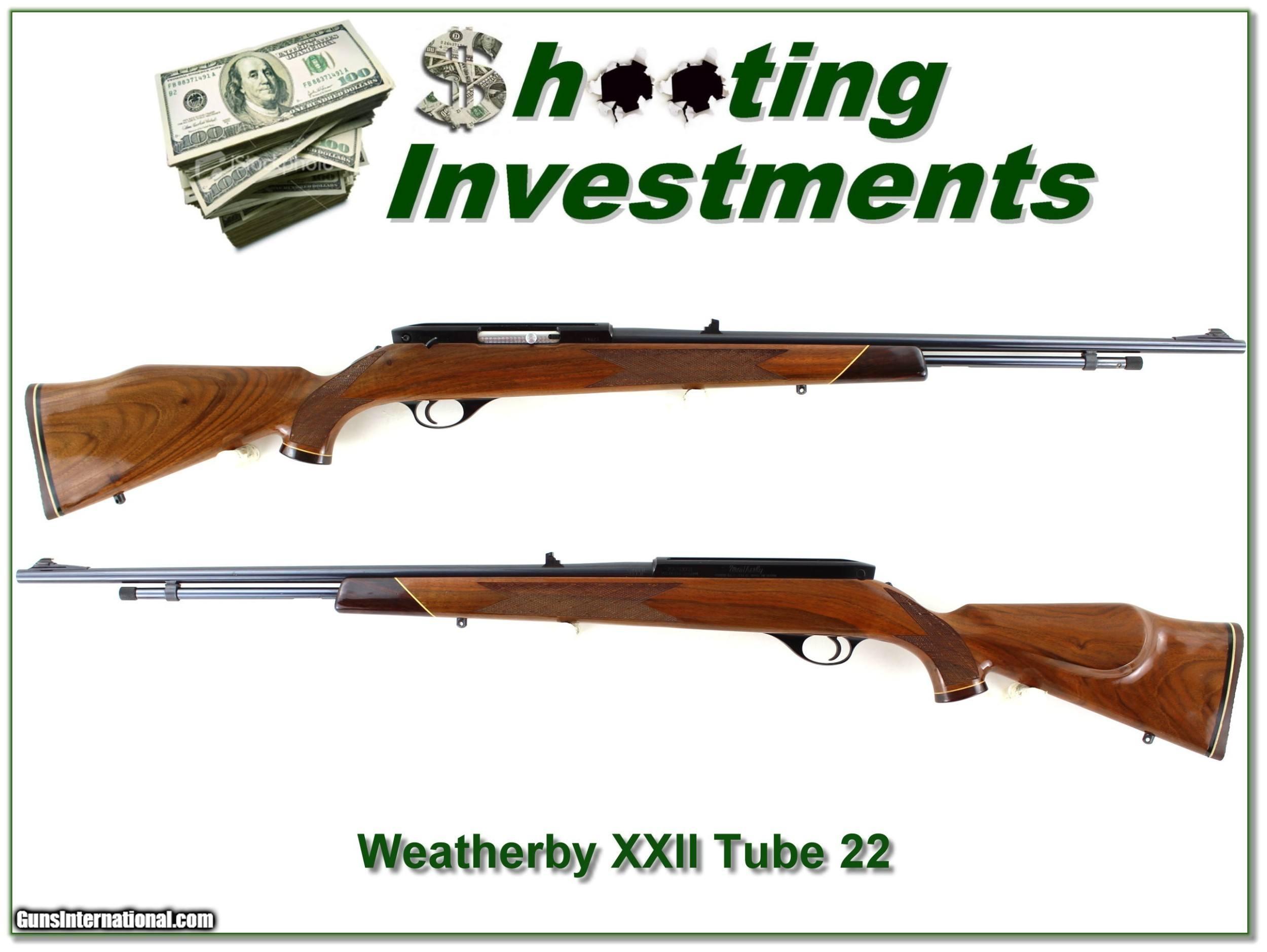 Description: Weatherby and rimfires collectors, this is a no longer made Weatherby Mark XXII, 22 semi-auto. It is the harder to find tube model that holds 15 rounds and this one looks about new. I am sure only a few rounds fired. The wood is a beautiful medium colored stock with excellent grain. I find no marks of note! It will make a nice addition to any collection and is sure to increase in value over time. It is a Shooting Investment. Shipping and insurance is $39. Please email me with any questions or larger pictures. (Consign your quality firearms with Shooting Investments for only 12%! Let me know if you have any you would like to sell!) 21-0411 Payment: Payment is by Money Order, Cashiers Check or Personal Check. I can now also accept Credit Cards (MasterCard, Visa, Discover & American Express) with a 3% convenience fee. Shipping: The shipping charge will be listed in each description. It is $39 for most firearms. Some heavy guns or those insured for over $2000 will be higher. Shipments to Alaska and Hawaii are higher because air shipment is required. Most firearms are shipped on Tuesday and Thursday and usually in 5 days of receipt of payment. We package all shipments carefully and insure them. Optics are shipped Priority Mail and most other non-firearm shipments are shipped First Class. Returns: Our return policy is simple. If for any reason you are not pleased with your purchase, you may return your item for a full refund of purchase price. Ammunition cannot be returned. It is important to us that you are happy. Guns cannot be fired or dissembled before returning them and they must be returned in the same condition as received. Notification of a return must occur with-in 3 days of receipt at your dealer. Shipping, convenience and dealer fees are not refundable and are the responsibility of the buyer. Lay-a-way: If needed, we offer a 60 day lay-a-way option on most firearms. It is 1/3 now, 1/3 in 30 days and 1/3 in 60 days. Lay-a-way firearm sales are final and if not completed the first payment cannot be returned. Consigning your firearms with Shooting Investments: We will help you get top dollar for your firearms. While most local guns shops charge 20% or more, our fee is only 12% with a minimum of $75. At your local gun shop it might take months to sell. Selling on-line provides instant access to thousands of interested buyers. You won’t find any other on-line dealer willing to sell your firearms for only 12% or listing every gun on 3 separate s. Selling through an House typically costs the seller 15% and the buyer an addition 15% (so 30%) and you have to wait several months to sell and longer to receive funds. If properly priced, we will sell your firearms in a few weeks. Send us an email or give us a call and we’ll explain how easy it is for you to get top dollar. Trading: Trading for use is really just buying your gun to re-sell. If you have a gun you want to trade, please email a picture and we will let you know what we can give or it. You will always get more if we sell it for you on consignment. Help for California Buyers: We are happy to ship to California. It is the buyer’s responsibility to make sure any item you buy is legal in your state. We are also happy to help with your purchase of a firearm from someone other than us. If you see a gun you would like to buy but the seller can’t or won’t ship to California they can ship to use and we’ll then ship it to your California dealer. The cost for this service is only $30 + shipping. Let us know if we can help! SOLD |