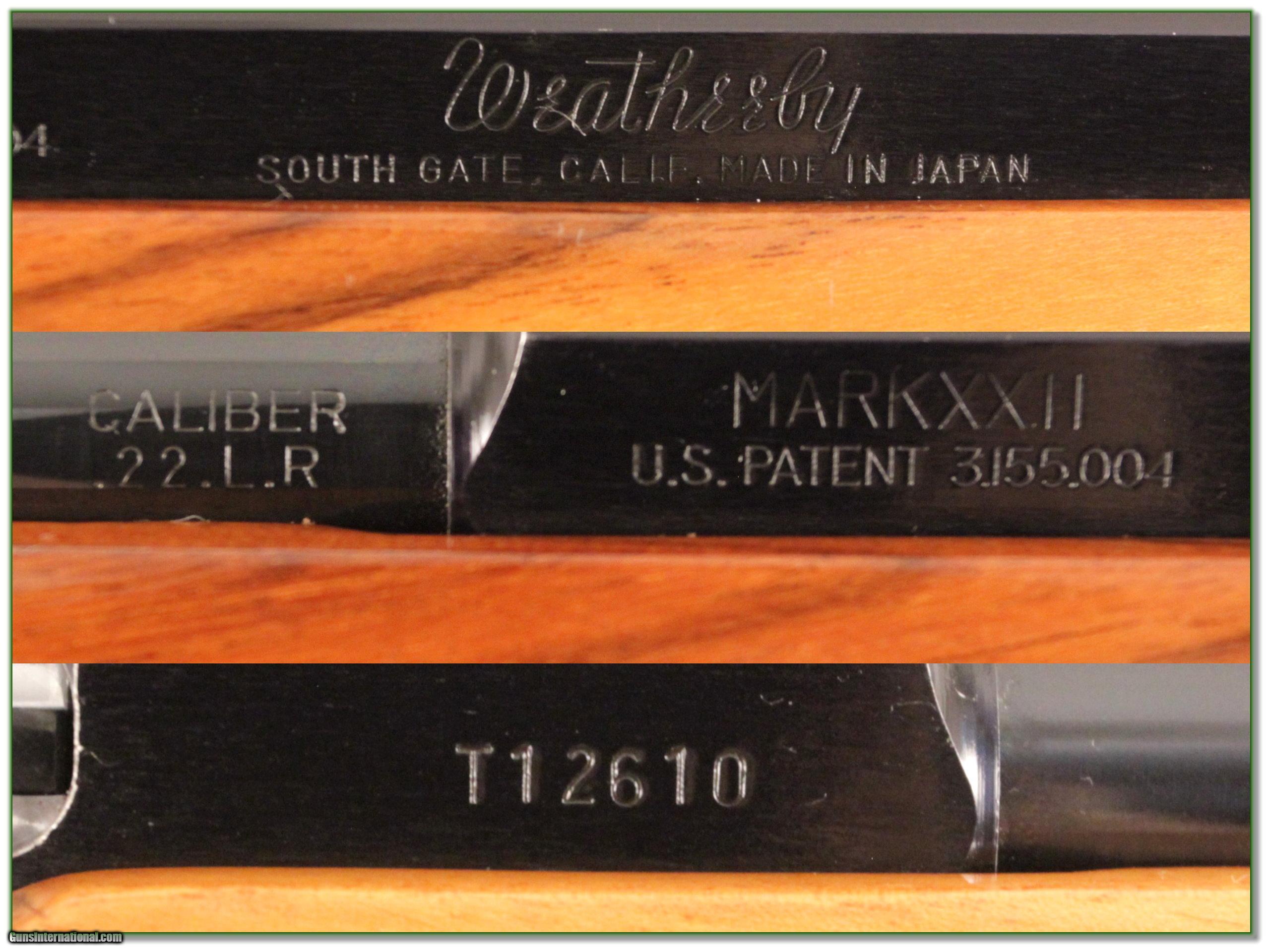 Description: This is the original Weatherby Mark XXII semi-auto. It is the harder to find tube feed gun with very blond wood with nice character dark figure in the butt. It has some use with a few marks. The front blade was removed. It will make a nice XXII you can use and is sure to increase in value over time. It is a Shooting Investment. Shipping and insurance is $35 or $15 more if you want it shipped in a new Plano hard case. Please email me with any questions or larger pictures. (I now consign quality firearms only 10%! Let me know if you have any you would like to sell!) [16-1291] Payment: Payment is by Money Order, Cashiers Check or Personal Check. I can now also accept MasterCard and Visa with a 3% convenience fee. PayPal can be used for some items but never firearms. Please let us know if you would like to pay via PayPal. Shipping: The shipping charge will be listed in each description. It is $35 for most guns. Some heavy guns or those insured for over $2000 will be higher. Shipments to Alaska and Hawaii are higher because air shipment is required. Most firearms are shipped within 5 days of receipt of payment. We prefer shipping at the beginning of the week to avoid firearms in transit over weekends. We package all shipments carefully and insure them for the full purchase price, rounded up to the next $100. In the unlikely event that damage occurs, it is important that you save all packaging material for the claims process. Optics are shipped Priority Mail and most other non-firearm shipments are shipped First Class. Returns: Our return policy is simple. If for any reason you are not pleased with your purchase, you may return your item for a refund. The only exception is ammunition, it cannot be returned. It is important to us that you are happy. Guns cannot be fired or dissembled before returning them and must be returned in the same condition as received. Notification of a return must occur with-in 3 days of receipt at your dealer. Shipping, convenience and dealer fees are not refundable and are the responsibility of the buyer. Lay-a-way: If needed, we offer a 60 day lay-a-way option on most firearms. It is 1/3 now, 1/3 in 30 days and 1/3 in 60 days. Lay-a-way firearm sales are final. Consigning your firearms with Shooting Investments: We will help you get top dollar for your firearms. While most local guns shops charge 20% or more, our fee is only 10% with a minimum of $50. At your local gun shop it might take months to sell. Selling on-line provides instant access to thousands of interested buyers. You won’t find any other on-line dealer willing to sell your firearms for only 10% or listing every gun on 4 separate s. Selling through an House typically costs the seller 15% and the buyer an addition 15% (so 30%) and you have to wait several months to sell and longer to receive funds. If properly priced, we will sell your firearms in a week or two. Send us an email or give us a call and we’ll explain how easy it is for you to get top dollar. Trading: We collect guns and usually just trade for guns we want to add to our collections. We often sell guns for others wanting to purchase one of ours. We find this the most fair to both of us. Our Commission is only 10% and we hold the gun you want until yours sells. Please contact us if you want to sell one of yours to buy one of ours. Help for California Buyers: We are happy to ship to California. It is the buyer’s responsibility to make sure any item you buy is legal in your state. We are also happy to help with your purchase of a firearm from someone other than us. If you see a gun you would like to buy but the seller can’t or won’t ship to California we can help. You buy the gun and have it shipped to us. We’ll then ship it to your California dealer. The cost for this service is only $30 + shipping. Let me know if we can help! SOLD |