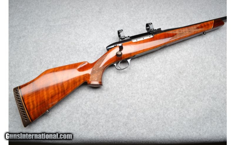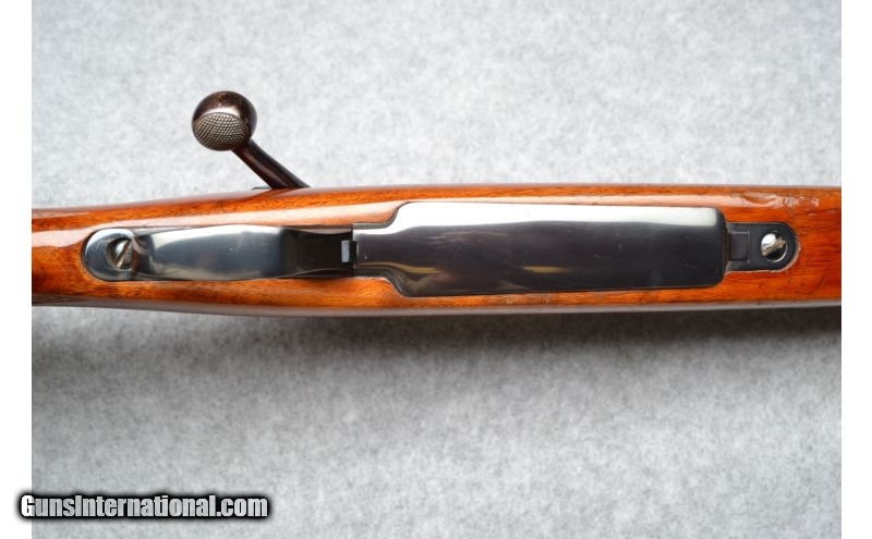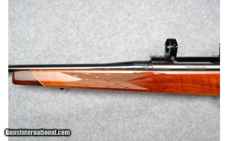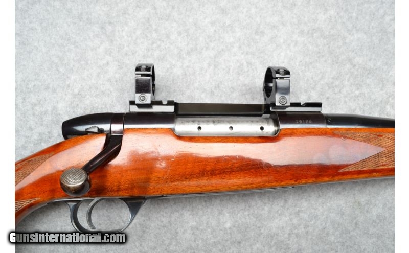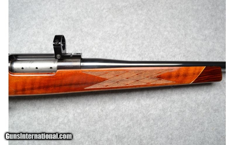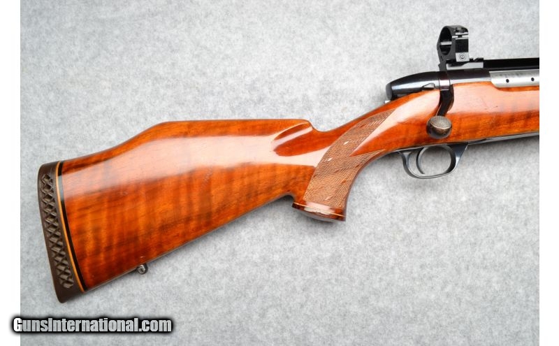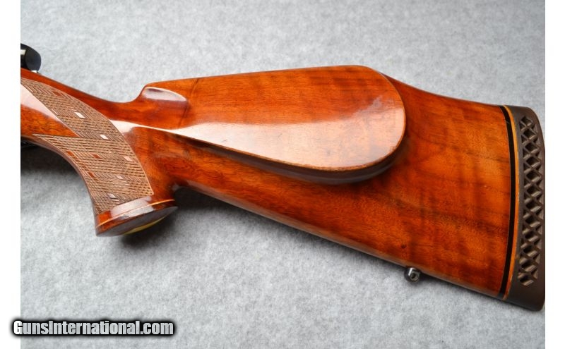 Description: This is a Weatherby Mark V, stamped 'rechambered to 7mm Wby Mag'. The rifle is a classic-looking Weatherby, but does show a good bit of use. B&L mount with scope rings are included.Condition: Metal is good, showing numerous small scratches, and loss of bluing at the muzzle and bolt handle; there is evidence of touch-up rebluing where barrel enters action; Wood is good, also showing numerous dings, scratches and finish wear; the grip cap insert and most of the white-line spacing is discolored from stock refinishing; note the chipped wood at the rear of the action.This rifle is an excellent choice for a hard hunter who wants the quality and classic good looks of Weatherby! SOLD Manufacturer: S/N 16196 Caliber Info: 7mm WBY MAG Metal Condition: Good Wood Condition: Good Bore Condition: Clean Barrels: 24 Triggers: Factory Stock: Factory wood, checkered Stock Dimensions: OAL 44 1/2 inches Butt Pad: Factory, brown rubber Weight: 7 lb 15 oz Sights: B&L mount and rings only, no scope Item Location: Greenville, SC |