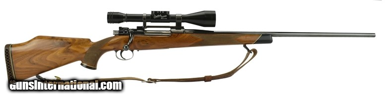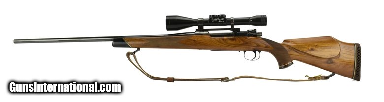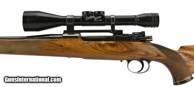 Description: Weatherby Mauser Sporter .270 Wby/Mag caliber rifle. Original Pre-Mark V model made on a commercial Mauser action. Has a figured walnut stock and a vintage Weatherby 2.75X10 scope. A classic early example of the work that made Roy Weatherby famous.