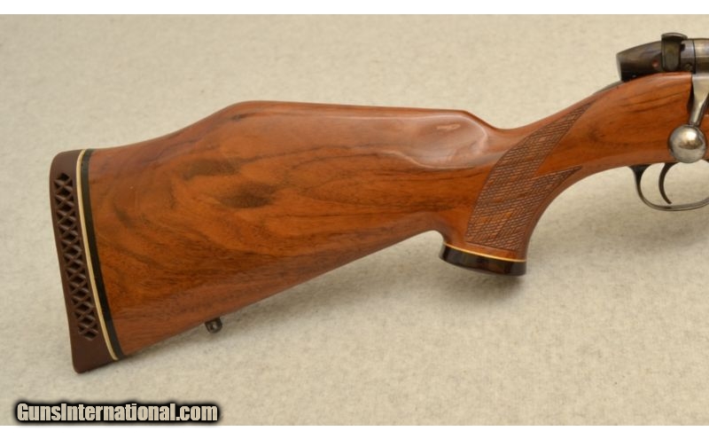 Description: SOLD Caliber Info: 257 Weatherby Magnum Metal Condition: Metal is in Very Good Condition (Some loss of blueing near muzzle-see pictures) Wood Condition: Wood is in Excellent Condition Bore Condition: Bore is Bright and Shinyu Barrels: 24" Barrel Triggers: Grooved Narrow Trigger Stock: High Gloss Figured Monte Carlo Stock with Double Panel Cut Checkering Stock Dimensions: 13 1/2" LOP Fore End: High Gloss Figured Fore End with Double Panel Cut Checkering Butt Pad: Brown Rubber Ventilated Butt Pad Weight: 8 Pounds Sights: No Sights Item Location: Green Bay, WI |