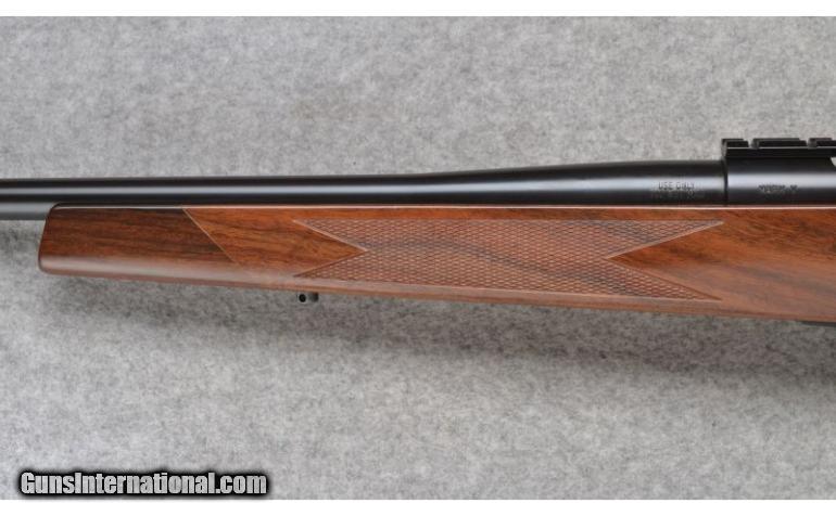 Description: Wood shows a few light use marks and remains free of cracks. Blue and bore are excellent. SOLD Manufacturer: S/N PB006XXX Caliber Info: .300 Wby. Mag. Metal Condition: Excellent Wood Condition: Very Good Bore Condition: Excellent Barrels: 26" with muzzle brake Triggers: Narrow, grooved trigger Stock: Semi-gloss walnut Monte Carlo stock with two-panel cut checkering, rosewood grip cap, sling swivel stud installed Stock Dimensions: 13 1/2" LOP Fore End: Semi-gloss walnut fore end with two-panel cut checkering, rosewood cap, sling swivel stud installed Butt Pad: Solid Pachmayr basket-weave textured pad with black spacer Weight: 8 LB Sights: Weaver scope bases Item Location: Green Bay, WI |