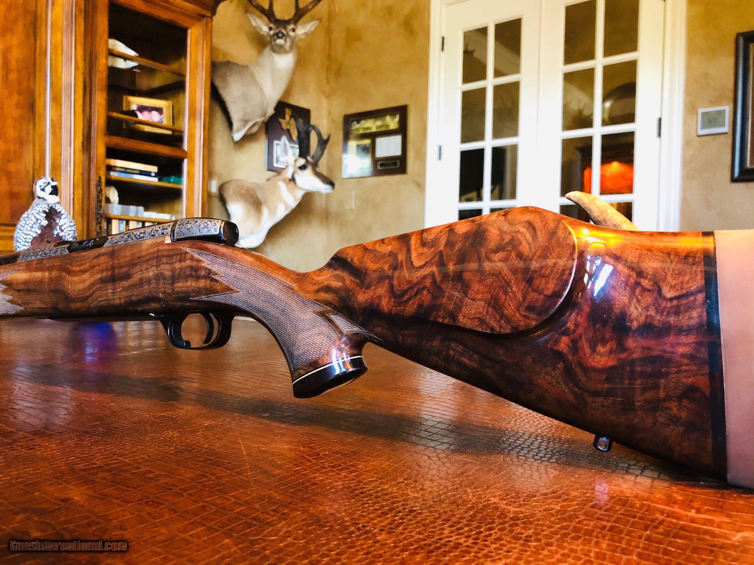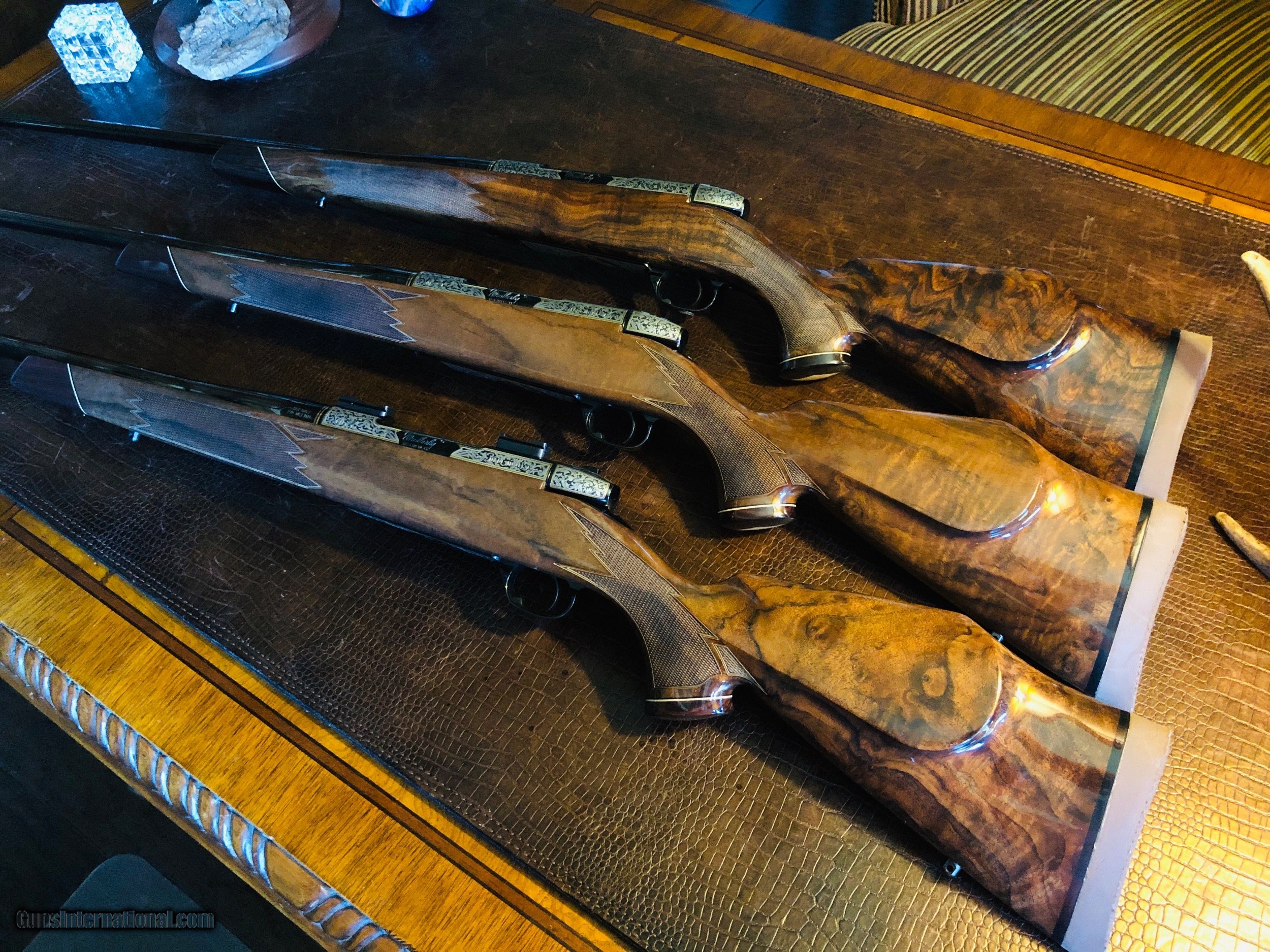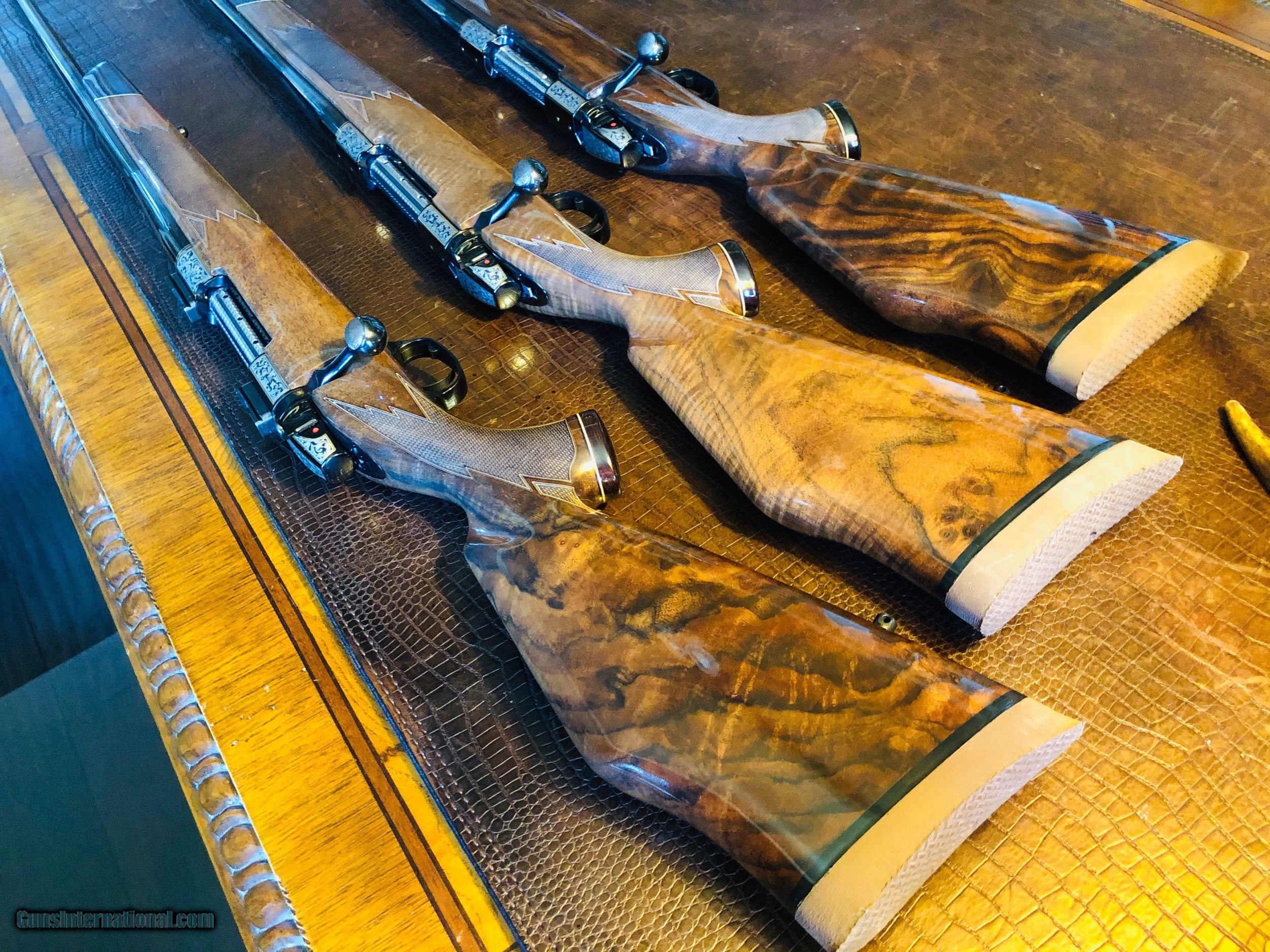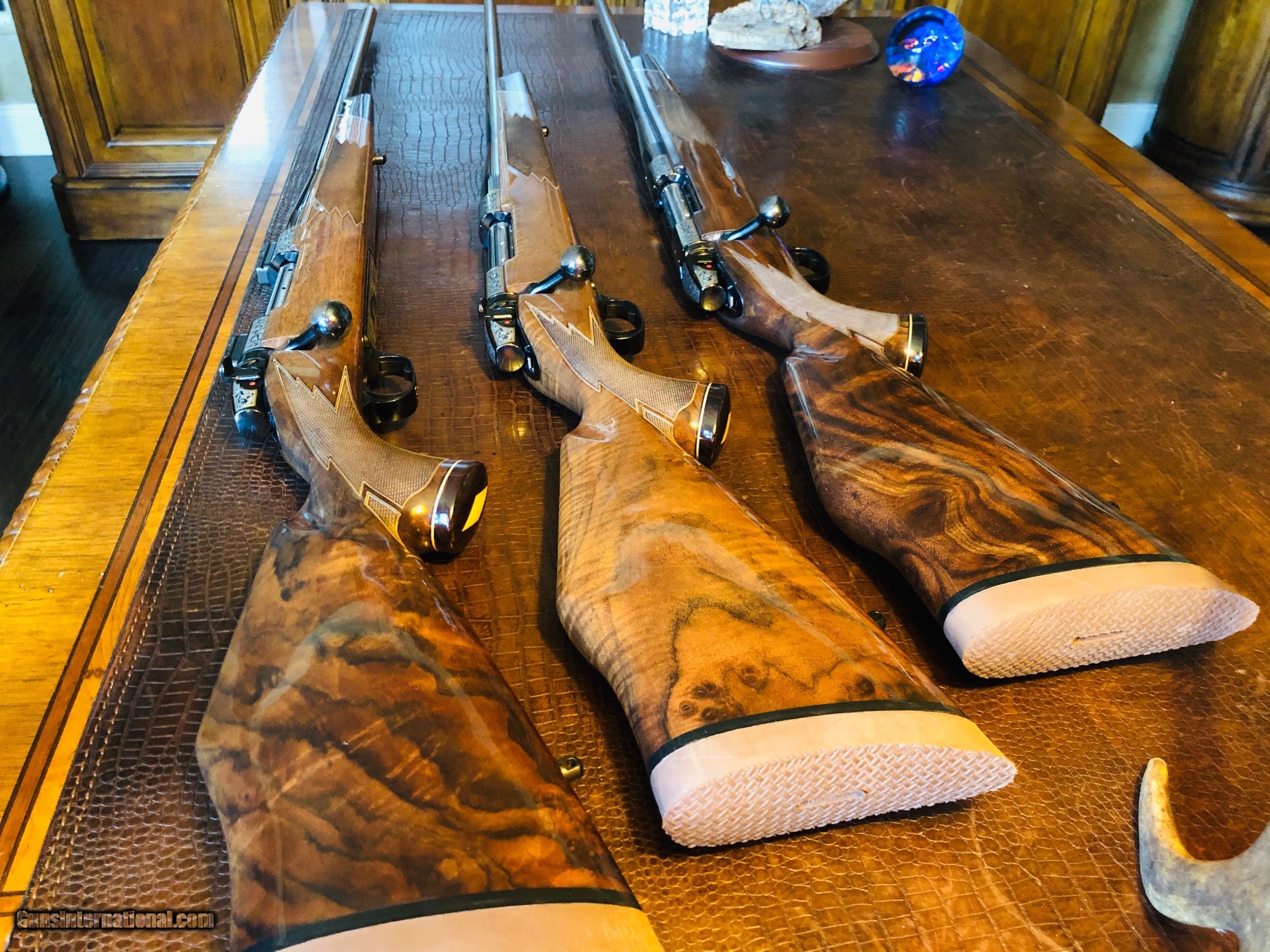 Description: Weatherby Royal Ultramark Custom - Set of 9 guns - .257 Weatherby Mag, .270 Weatherby Mag, .300 WinMag, 7MM Weatherby Mag, .300 Weatherby Mag, .340 Weatherby Mag, .375 H&H Mag, .375 Weatherby Mag, .416 Rem Mag - all are unfired and new in boxes and cases. All guns have the same engraving from Weatherby custom shop - I pictured 3 examples of these guns here. $6,000 each or $50,000 for the set - I list only nice guns - these are perfection. *****SPECIAL NOTE***** 1. I am a reasonable man – I encourage you to make reasonable offers on my listings. At times, there is some flexibility in pricing – other times there is not. I have been collecting guns since 1988 – so I have amassed quite a covey of what I consider to be some very fine guns and some utility guns. Feel free to call me, unlike most gun dealers – I am easy to talk to and will answer the phone on weekends and late evenings (not after 9PM CST). 2. I DO NOT ACCEPT TRADES 3. I do provide LAY-A-WAY plan, please inquire about my terms if you have a need – glad to do it when I can. 4. My collection consists of many guns that were bought from individuals – that means **I BUY GUNS** but I only buy clean used guns with collectibility. In particular - **I BUY SHOTGUNS** 5. ALL OF MY TRANSACTIONS ARE DONE THROUGH MY FFL with whom I have a very solid relationship. If you buy a guns from me, you’ll pay them, they will ship to your FFL of choice and all dealings will be with them post receipt of funds. They are a high end boutique gun dealer in the Texas Hill Country and can accommodate the entire transaction. If you live in Texas and want to drive to see one of my guns, reach out to me to discuss making an appointment with my FFL – I do not show guns at my home nor do I meet guys at public locations for viewings or sales. ALL GUNS ARE LEGALLY TRANSFERRED through my FFL – there are NO EXCEPTIONS. 6. Certified funds are preferred – if you send a personal check for payment the FFL ships one week after receipt. Certified funds payments – shipments are done next business day. NO CREDIT CARD payments are accepted. 7. I encourage you to shoot the guns you buy from me – so during your 3 day inspection – shoot the gun. Make sure it is operating in the manner you expected. If you are not happy – return the gun for a full refund except shipping costs. SOLD Rifle Caliber: .257 Weatherby Magnum |