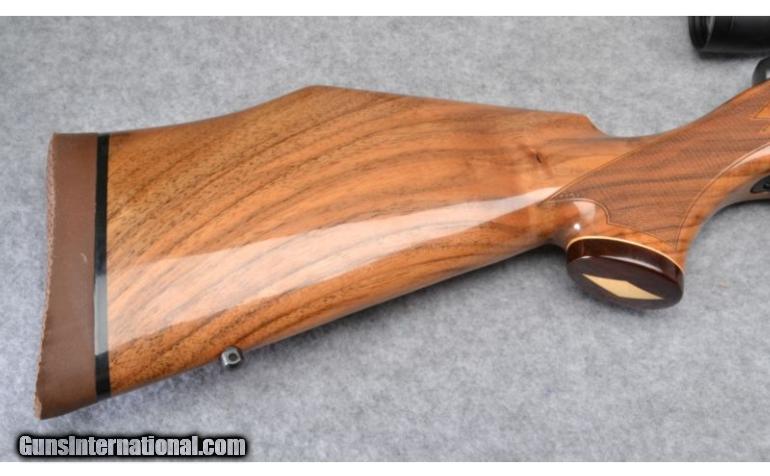 Description: Marks to cheek piece and grip cap. Scratch to left side of butt stock forward of checkering SOLD Manufacturer: S/N PB031XXX Caliber Info: .270 Weatherby Magnum Metal Condition: Excellent Wood Condition: Very Good Bore Condition: Excellent Barrels: 26 Triggers: Factory Stock: Checkered Walnut Stock Dimensions: 13 1/2" LOP Fore End: Checkered Walnut Butt Pad: Brown Rubber Weight: 9 3/4 lbs Sights: Leupold VX-3/4.6-14X40mm Item Location: Columbus, OH |