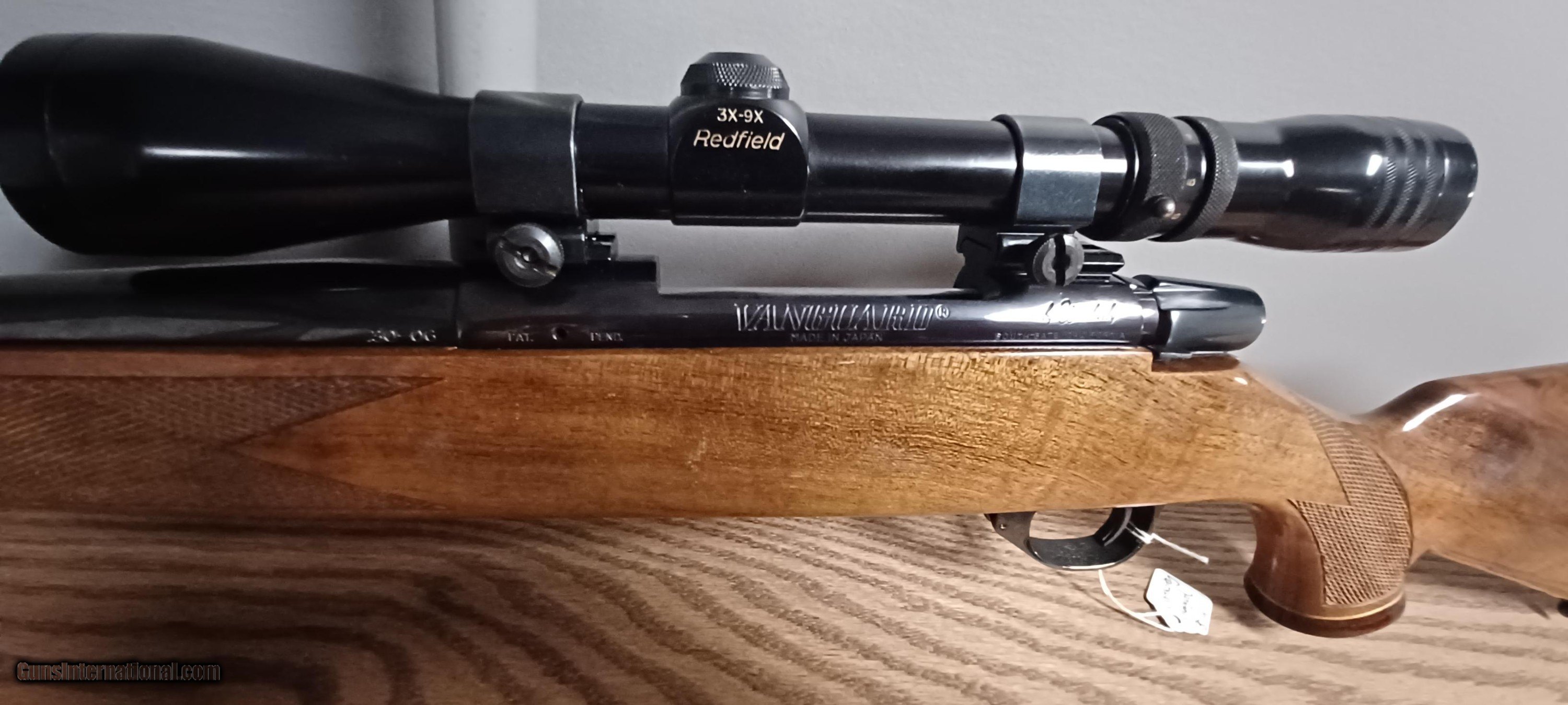 Description: Very nice Weatherby 30-06 with the deluxe style stock and classic white diamond below the trigger guard. Clean with a Redfield scope. SOLD Rifle Caliber: .30-06 Springfield Manufacturer: Weatherby Model: vanguard Condition: good Metal Condition: good Wood Condition: good |
