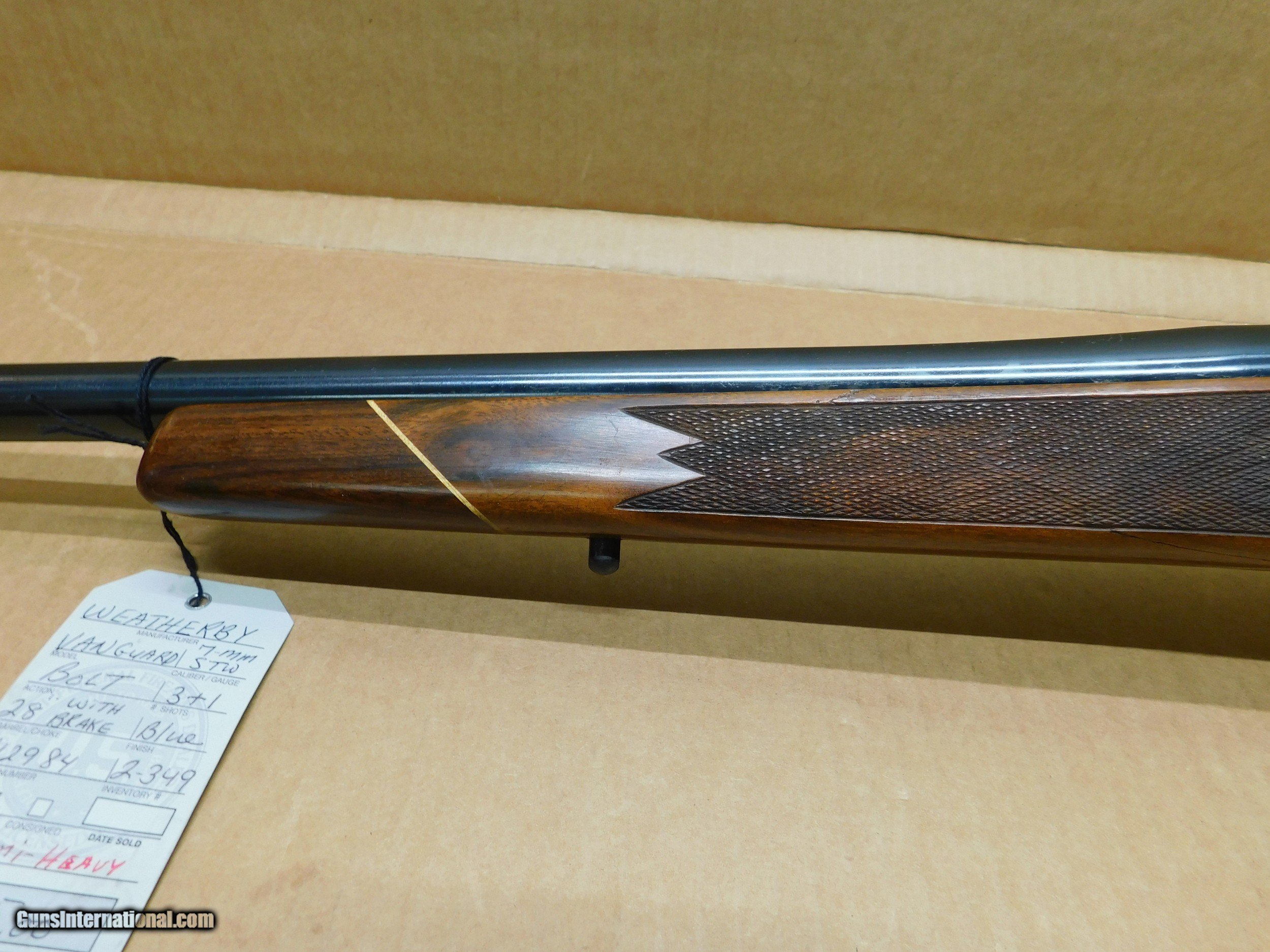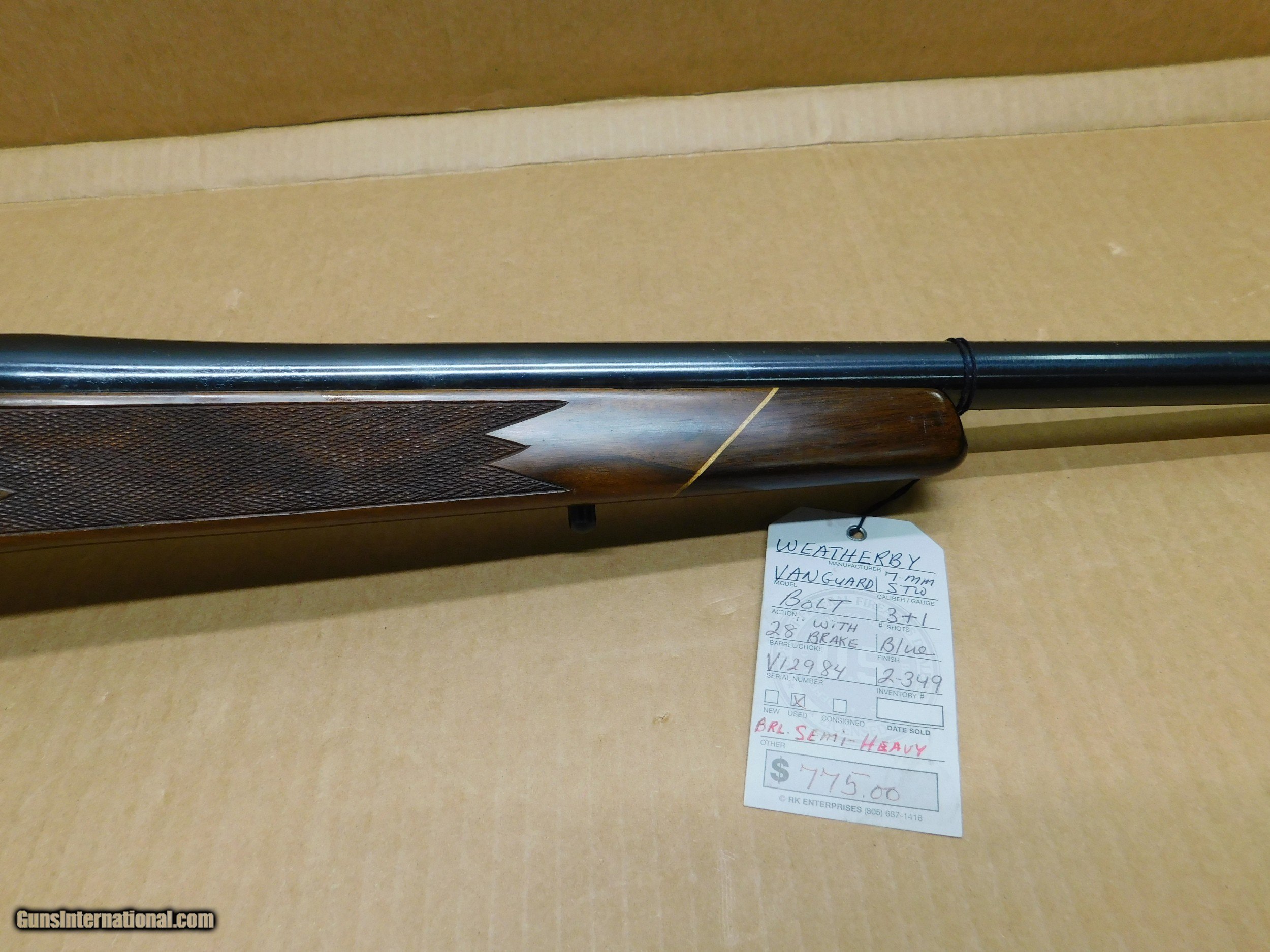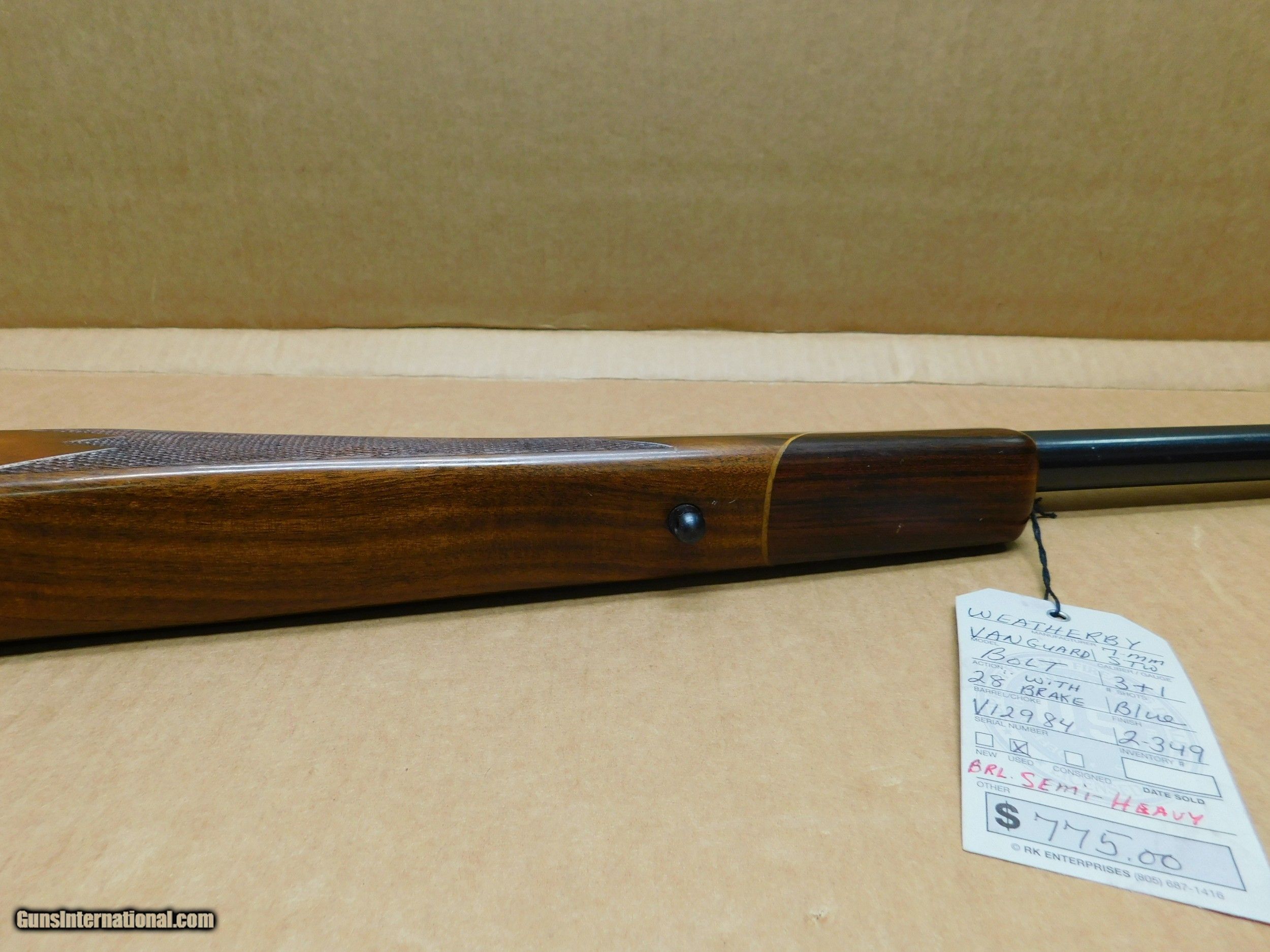 Description: This is a used Weatherby Vanguard 7-MM STW bolt action rifle Gun has been rebarreled with a custom medium-heavy 28" blued barrel with brake It is a 3+1 shot SN-V12984 SOLD Manufacturer: Weatherby Model: Vanguard Serial Number: V12984 Barrel Length: 28 Caliber Info: 7 MM STW Condition: Used Metal Condition: very good Wood Condition: Very good Bore Condition: Very good Barrel Type: Round with brake Action: Bolt Triggers: Standard Stock: Checkered walnut with cheek rest and sling studs Butt Pad: Rubber Finish: Blue |