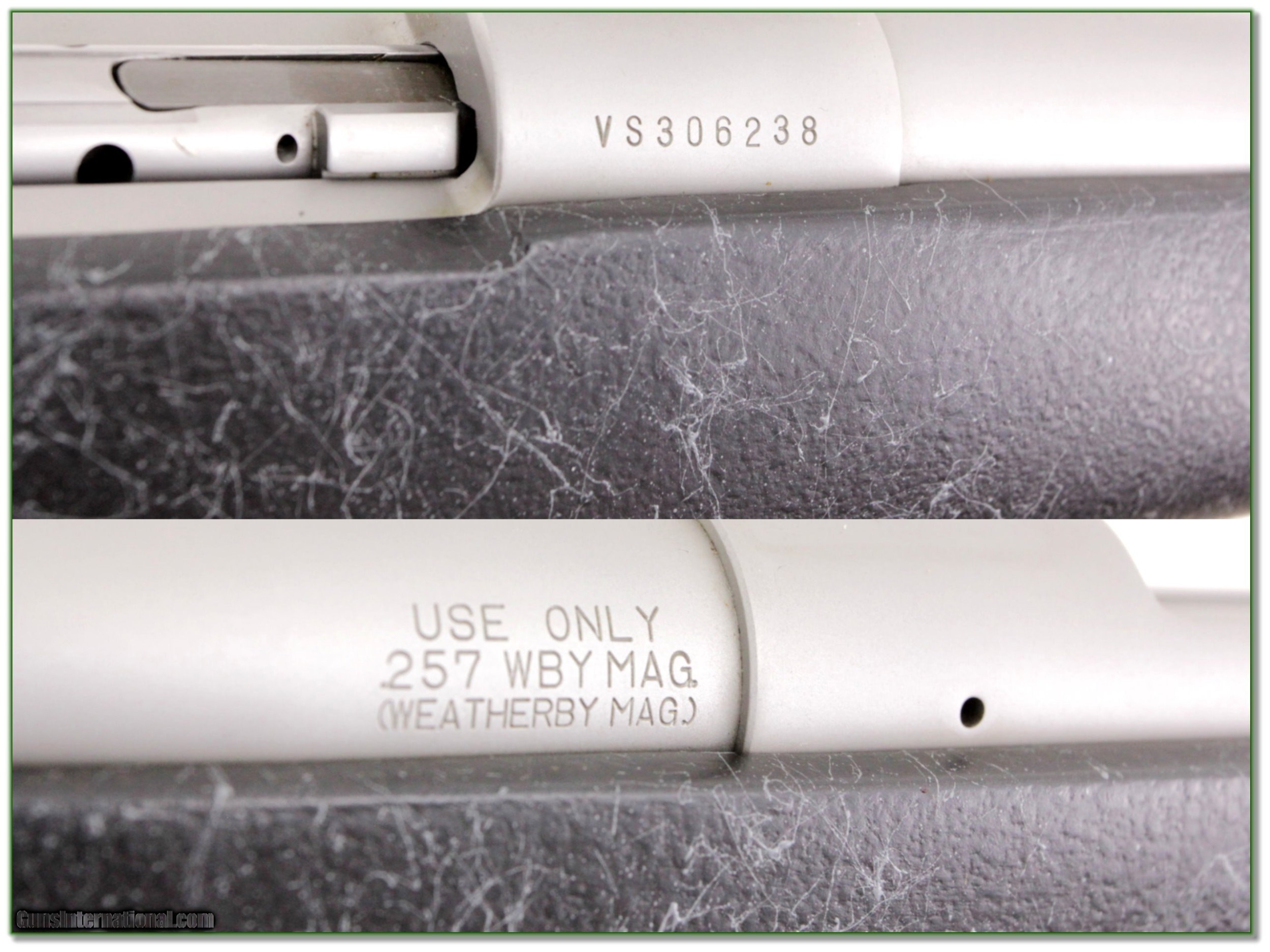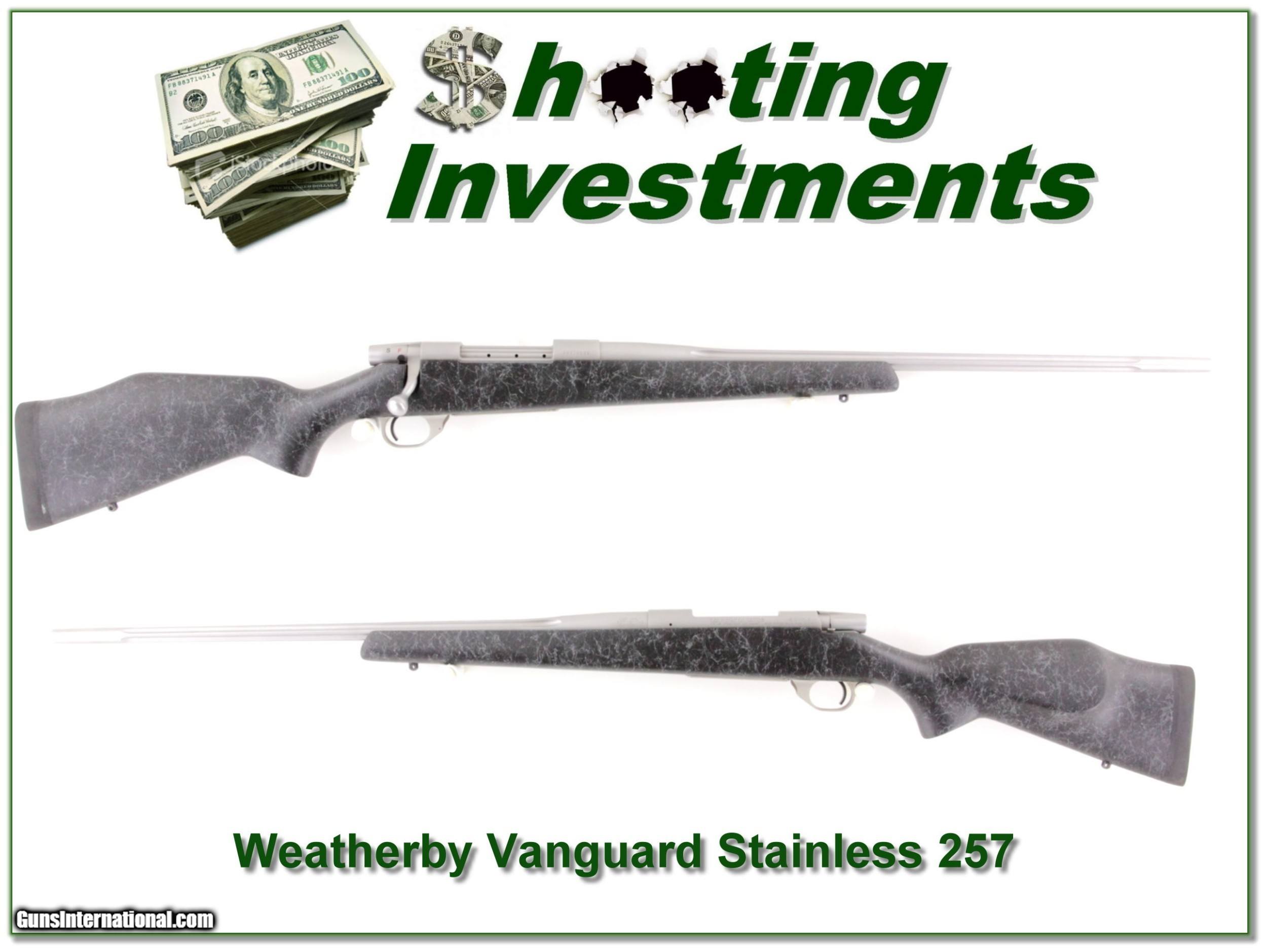Description: This is an excellent condition Weatherby Accuguard in the flat shooting 257 Weatherby Magnum. I am sure only a few rounds fired. I see no marks. These stainless guns make excellent lightweight all-weather hunting guns. I am selling this one on consignment and as such lay-a-way can’t be used. It does of course have the standard 3-day inspection. Shipping with insurance is $39. Please email me with any questions or larger pictures. (Consign your quality firearms with Shooting Investments for only 12%! Let me know if you have any you would like to sell!) 19-0553 Payment: Payment is by Money Order, Cashiers Check or Personal Check. I can now also accept MasterCard and Visa with a 3% convenience fee. PayPal can be used for some items but never firearms. Please let us know if you would like to pay via PayPal. Shipping: The shipping charge will be listed in each description. It is $39 for most long guns and $29 for most handguns. Some heavy guns or those insured for over $2000 will be higher. Shipments to Alaska and Hawaii are higher because air shipment is required. Most firearms are shipped on Tuesday and Thursday and usually in 5 days of receipt of payment. We package all shipments carefully and insure them. For long guns you can purchase a new Plano case for $19. They now cost us $22 when buying 100 at a time. Optics are shipped Priority Mail and most other non-firearm shipments are shipped First Class. Returns: Our return policy is simple. If for any reason you are not pleased with your purchase, you may return your item for a full refund of purchase price. Ammunition cannot be returned. It is important to us that you are happy. Guns cannot be fired or dissembled before returning them and they must be returned in the same condition as received. Notification of a return must occur with-in 3 days of receipt at your dealer. Shipping, convenience and dealer fees are not refundable and are the responsibility of the buyer. Lay-a-way: If needed, we offer a 60 day lay-a-way option on most firearms. It is 1/3 now, 1/3 in 30 days and 1/3 in 60 days. Lay-a-way firearm sales are final and if not completed the first payment cannot be returned. Consigning your firearms with Shooting Investments: We will help you get top dollar for your firearms. While most local guns shops charge 20% or more, our fee is only 12% with a minimum of $75. At your local gun shop it might take months to sell. Selling on-line provides instant access to thousands of interested buyers. You won’t find any other on-line dealer willing to sell your firearms for only 12% or listing every gun on 3 separate s. Selling through an House typically costs the seller 15% and the buyer an addition 15% (so 30%) and you have to wait several months to sell and longer to receive funds. If properly priced, we will sell your firearms in a few weeks. Send us an email or give us a call and we’ll explain how easy it is for you to get top dollar. Trading: Trading for use is really just buying your gun to re-sell. If you have a gun you want to trade, please email a picture and we will let you know what we can give or it. You will always get more if we sell it for you on consignment. Help for California Buyers: We are happy to ship to California. It is the buyer’s responsibility to make sure any item you buy is legal in your state. We are also happy to help with your purchase of a firearm from someone other than us. If you see a gun you would like to buy but the seller can’t or won’t ship to California they can ship to use and we’ll then ship it to your California dealer. The cost for this service is only $30 + shipping. Let us know if we can help! SOLD |
