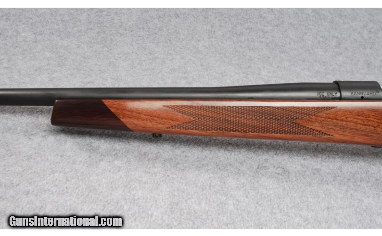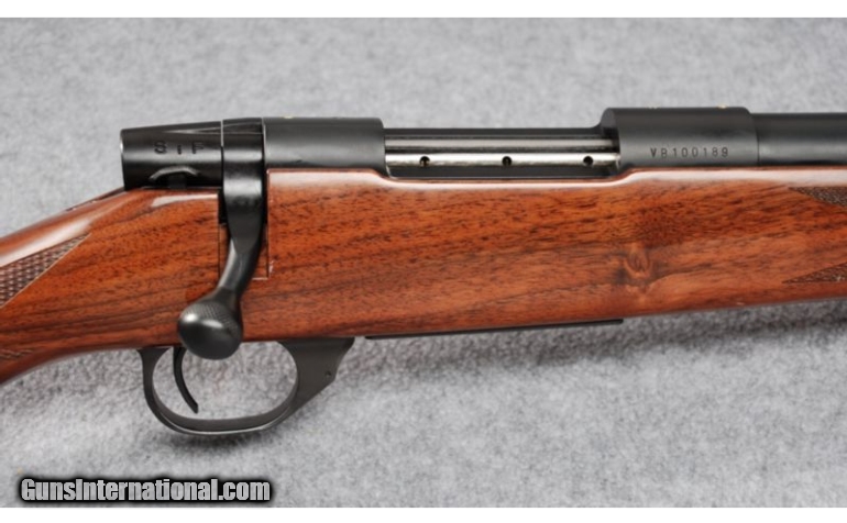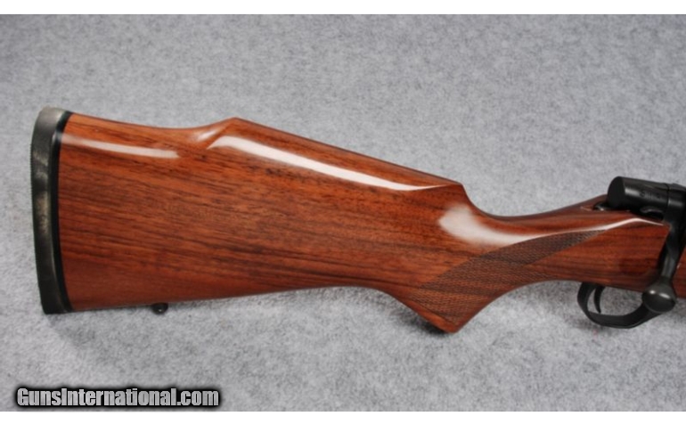 Description: SOLD Caliber Info: .308 Win. Metal Condition: Very minor handling marks. Wood Condition: Shows a few contact marks. Bore Condition: Bright and clean with sharp lands. Barrels: 24". Matte bead blasted blued finish. Stock: Raised comb, Monte Carlo “A” grade Turkish walnut stock with satin urethane finish. Checkered pistol grip. Stock Dimensions: 13 1/2" LOP Fore End: Rosewood forend and fineline diamond point checkering. Butt Pad: Rubber. Weight: 7 Lbs. 14 Oz. Sights: Drilled and tapped. Extras: Box and papers. Item Location: Billings, MT |