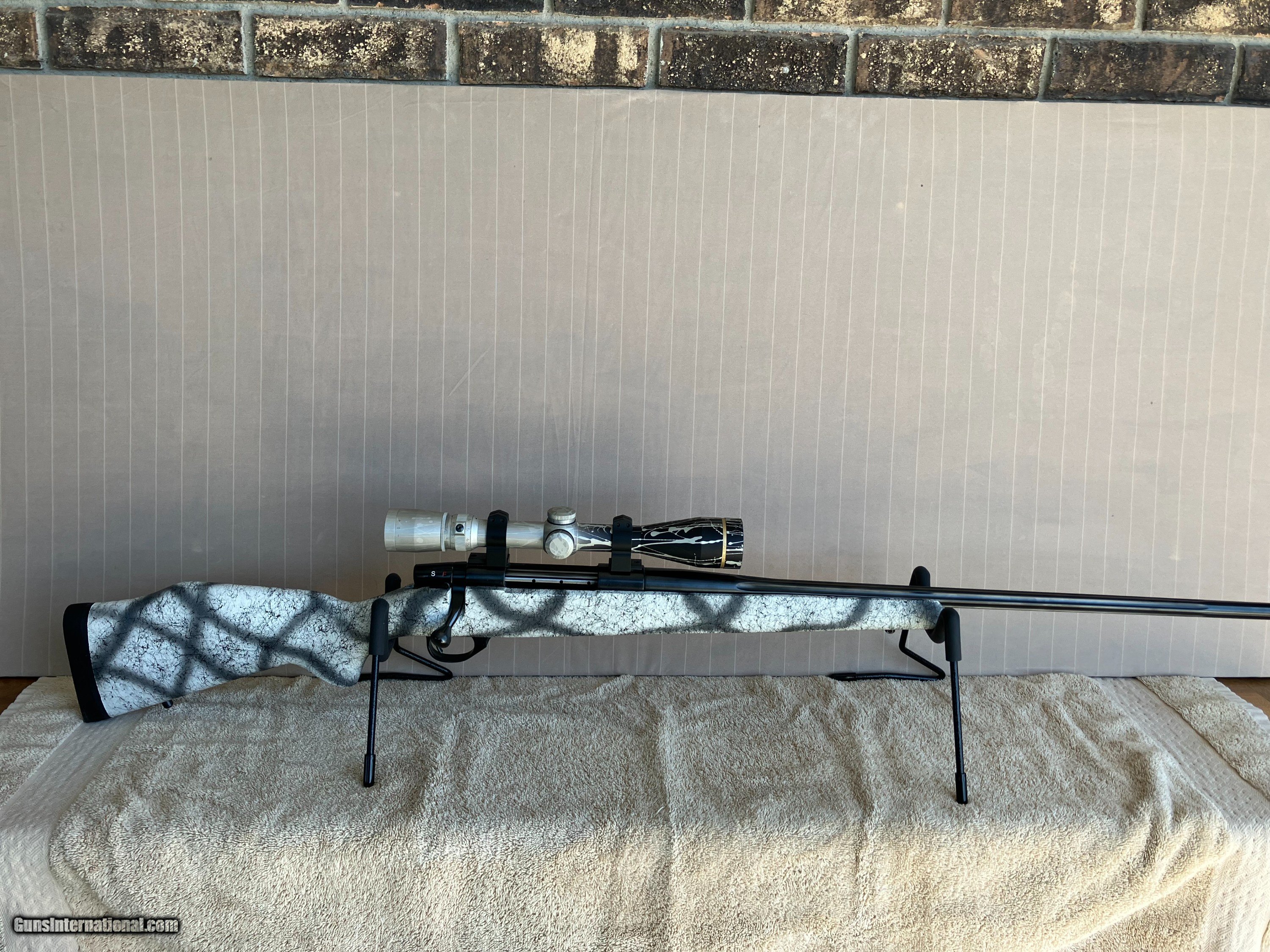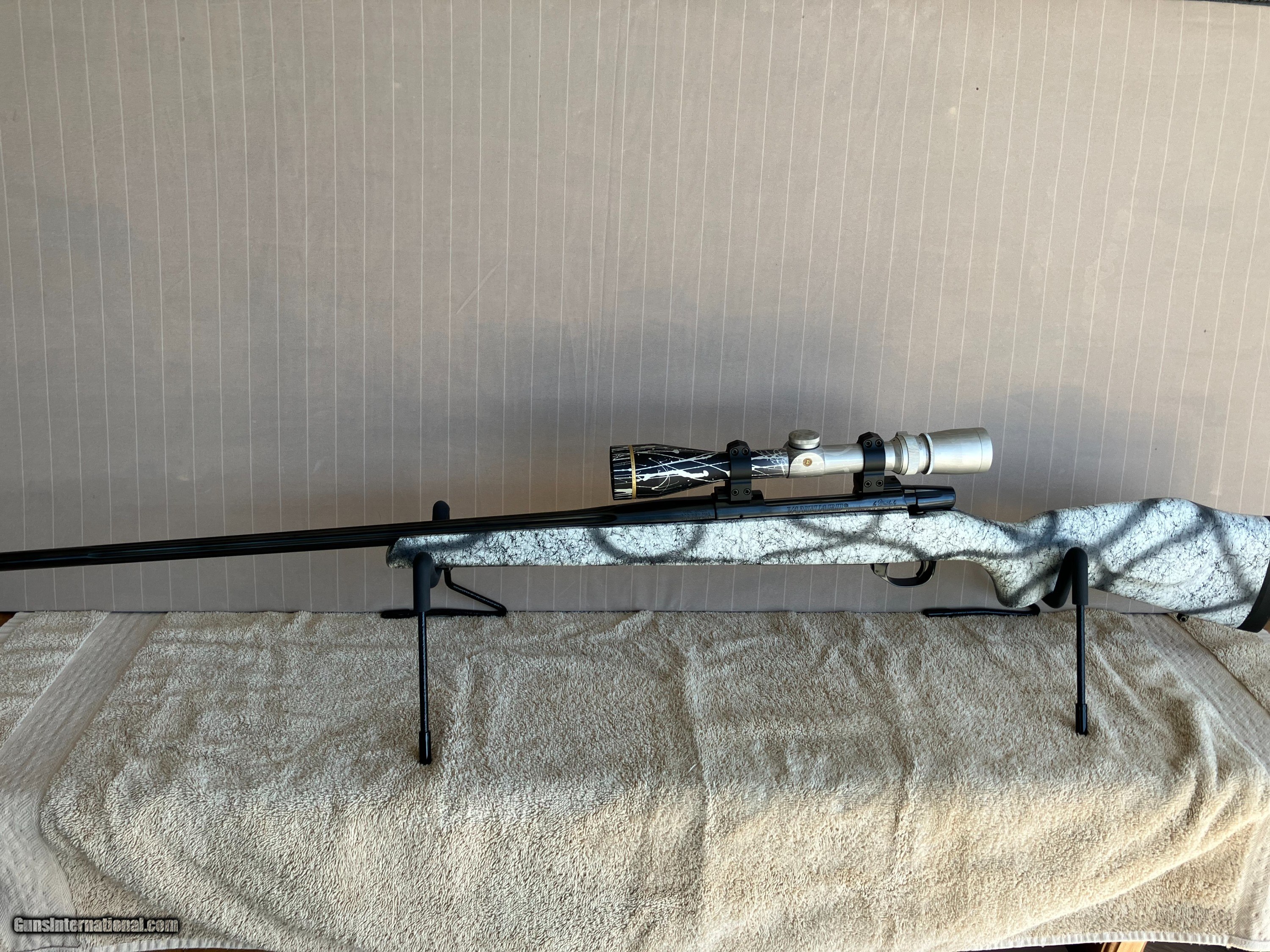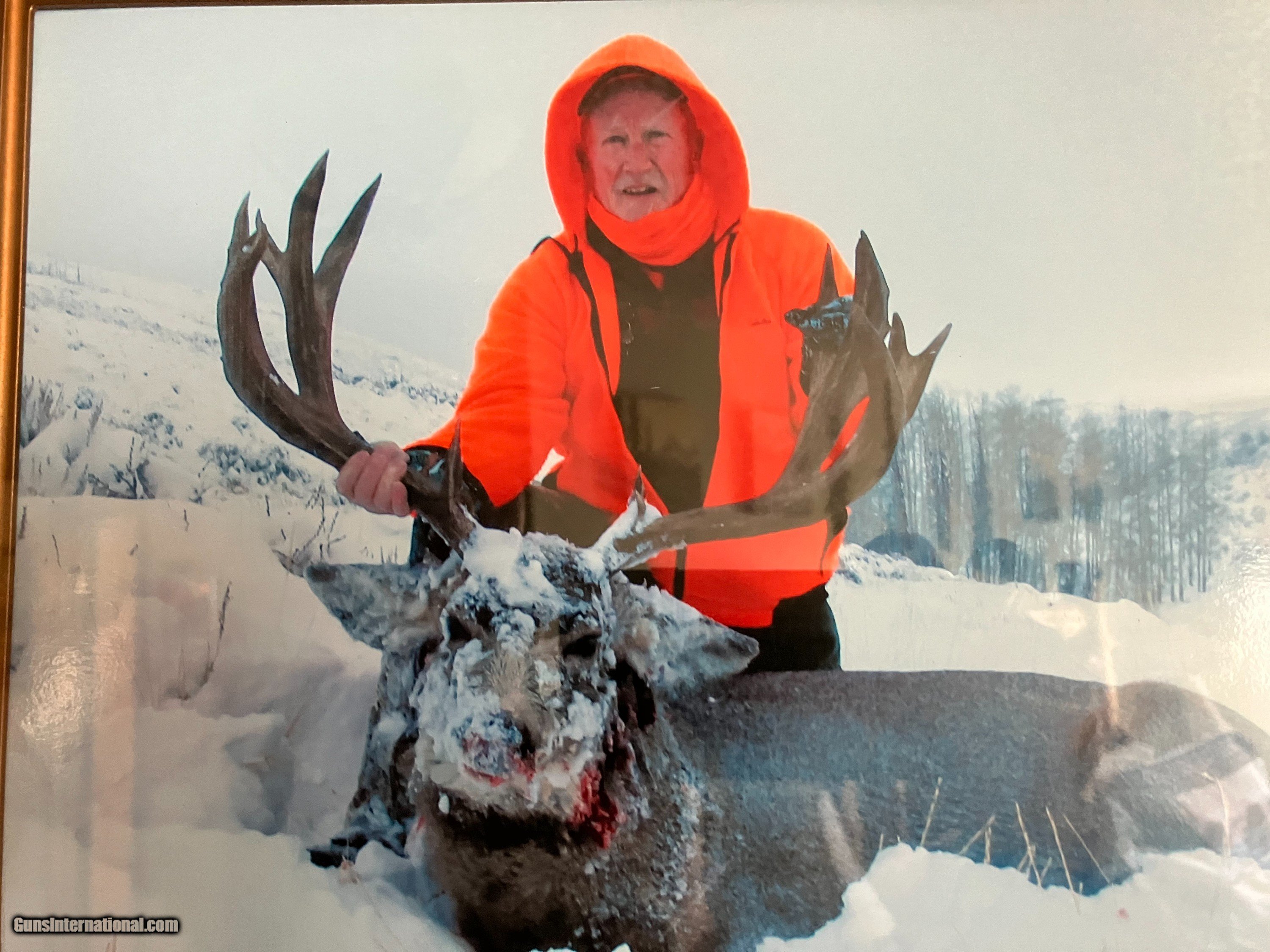 Description: Custom ordered Weatherby Vanguard, 300 Weatherby Magnum. In 2007 Weatherby offered a stock and barrel choice for they're Vanguards. I ordered this one with the Bell & Carlson aluminum bedded fiberglass stock in snow camo, fluted 24" barrel, blued. Added Timney Trigger. I also ordered a Leupold 3.5x10x40 VX3 custom shop scope with a fine duplex reticle. I put it in in Warne rings and bases. Not a mark on this rifle but it has been hunted, it accounted for a 194" Colorado Mule deer and others. It comes in the original box with paperwork, Weatherby test target and lock, also have the original scope box and pw. NO returns please ask questions, I prefer Email or phone call $95.00 shipping insurance buy buyer about $2.00 per hundred SOLD |