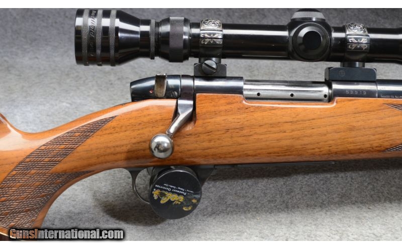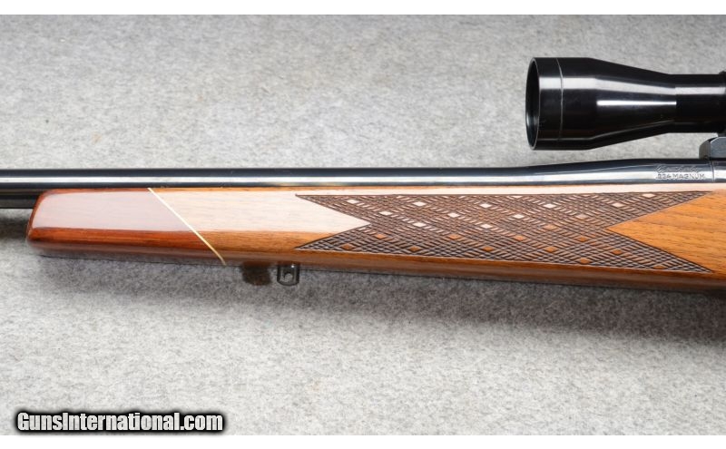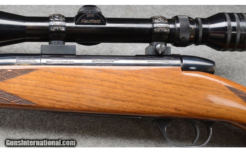 Description: SOLD Caliber Info: .224 Varmintmaster Metal Condition: Excellent overall, a small amount of wear around the muizzle Wood Condition: Very good to excellent, with shallow scratches on the stock. Bore Condition: Bright and shiny. Barrels: 24 inch Stock: Monte Carlo pattern checkered walnut with cheekpiece. Contrasting Rosewood grip and forearm tips. Stock Dimensions: 13 - 1/2 Inch LOP Butt Pad: Rubber pad Weight: 7 lbs - 9 oz as shown with scope Sights: Redfield 2-7X Extras: Scope Item Location: Rogers,, MN |