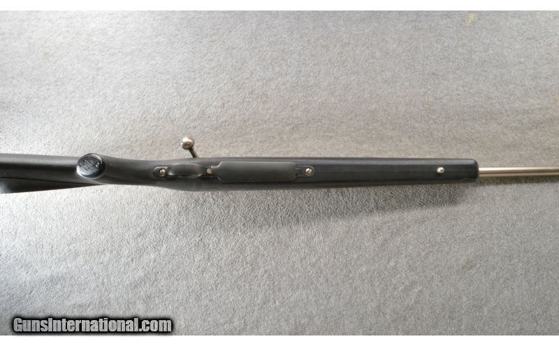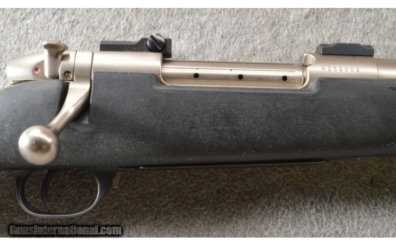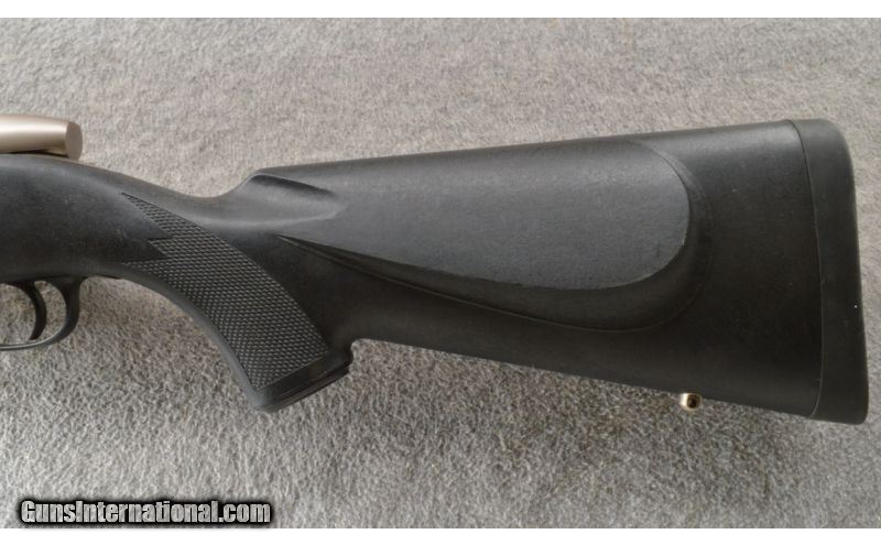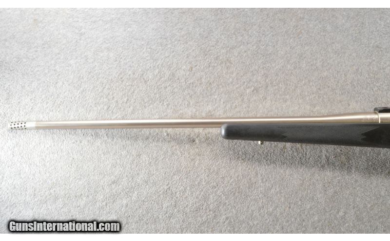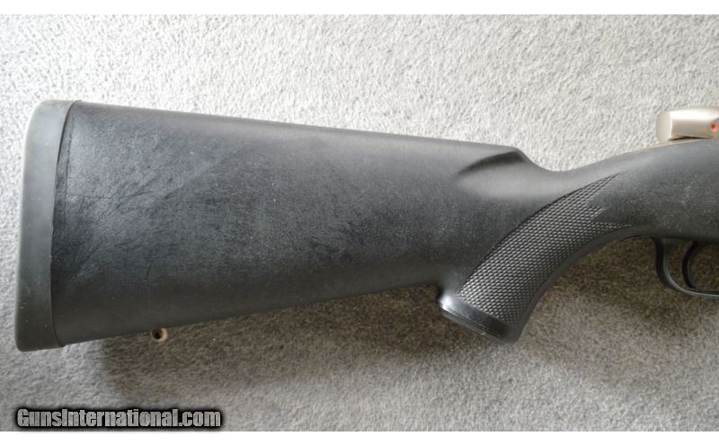 Description: This is a very nice Weathermark Alaskan rifle in .300 Wby Mag. The rifle is a electroless nickel synthetic model with a 24 inch barrel with a muzzle break and a black synthetic stock. The electroless nickel is in great condition with no negative issues. The bolt face is still like new. The black synthetic stock is also in excellent condition. This nice hunting rifle comes with a set of Leupold scope bases. SOLD Caliber Info: .300 Weatherby Magnum. Chambers: Bolt action repeater. Metal Condition: About new looking. Wood Condition: The stock is excellent. Bore Condition: Bright and shiny. Barrels: 24 inch stainless steel with a break. Triggers: Single blue. Stock: Black synthetic with a raised cheek, checkered pistol grip and sling stud. Stock Dimensions: 13 1/4 inch LOP. Fore End: Matching checkered black synthetic with a sling stud. Butt Pad: Weatherby black rubber butt pad. Weight: 7 Lbs 12 Oz. Sights: Leupold scope bases. Extras: Comes with the break and scope mounts. Item Location: Lacey, WA |