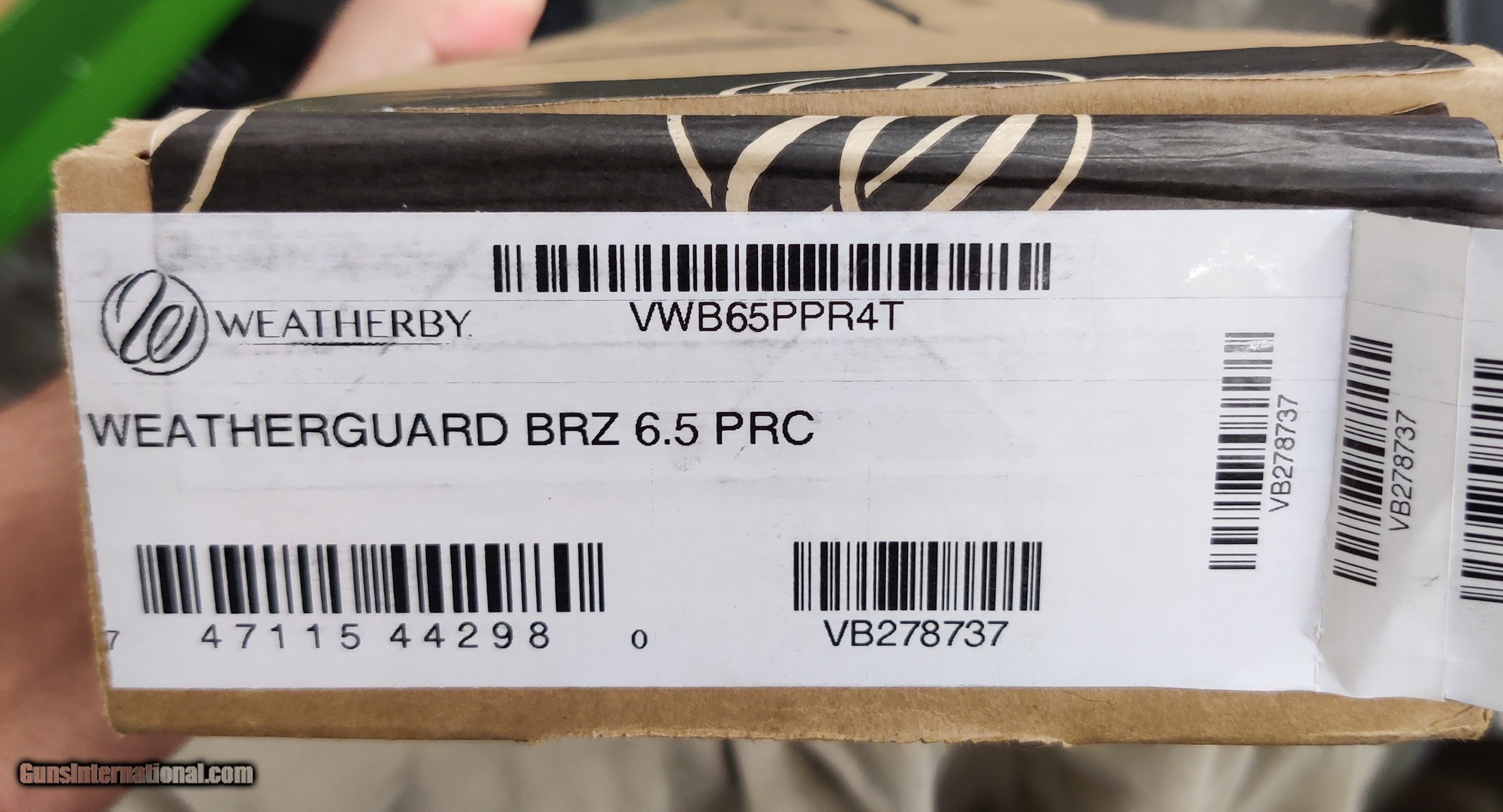 Description: New in the box Weatherby weatherguard bronze in 6.5 prc. SOLD Rifle Caliber: 6.5 PRC |