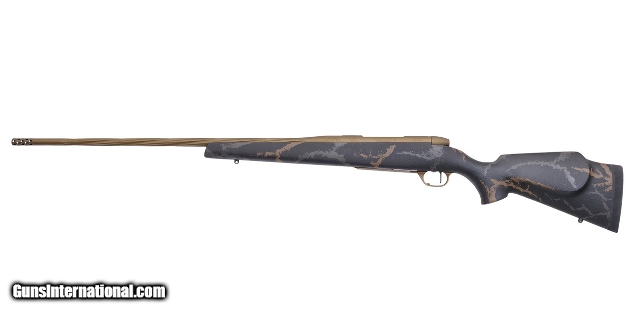 Description: Manufacturer: Weatherby, Inc. - Made in Sheridan, Wyoming Model: Mark V Weathermark Limited SKU: MWL05N65RWR6B Caliber: 6.5 WBY RPM Capacity: 4+1 Rounds Barrel Length: 24" Spiral Fluted Action/Barrel OAL: 26" with Brake, 1/2x28 Threads Spiral Fluted Barrel / Brake / Receiver / Trigger Guard: Burnt Bronze Cerakote Bolt / Bolt Knob / Safety: Graphite Black Cerakote Stock: Black Base Hand-laid, Raised Comb Monte Carlo Composite Stock with Grey & Brown Accents Weight: 5.90 lbs Sights: None Twist: 1:8" Length of Pull: 13.625" Overall Length: 46.625" All items are factory new in box unless otherwise stated. Based on the information available to us, the above specifications describe this item to the best of our knowledge. For further information, please contact or visit the manufacturer's . SOLD |