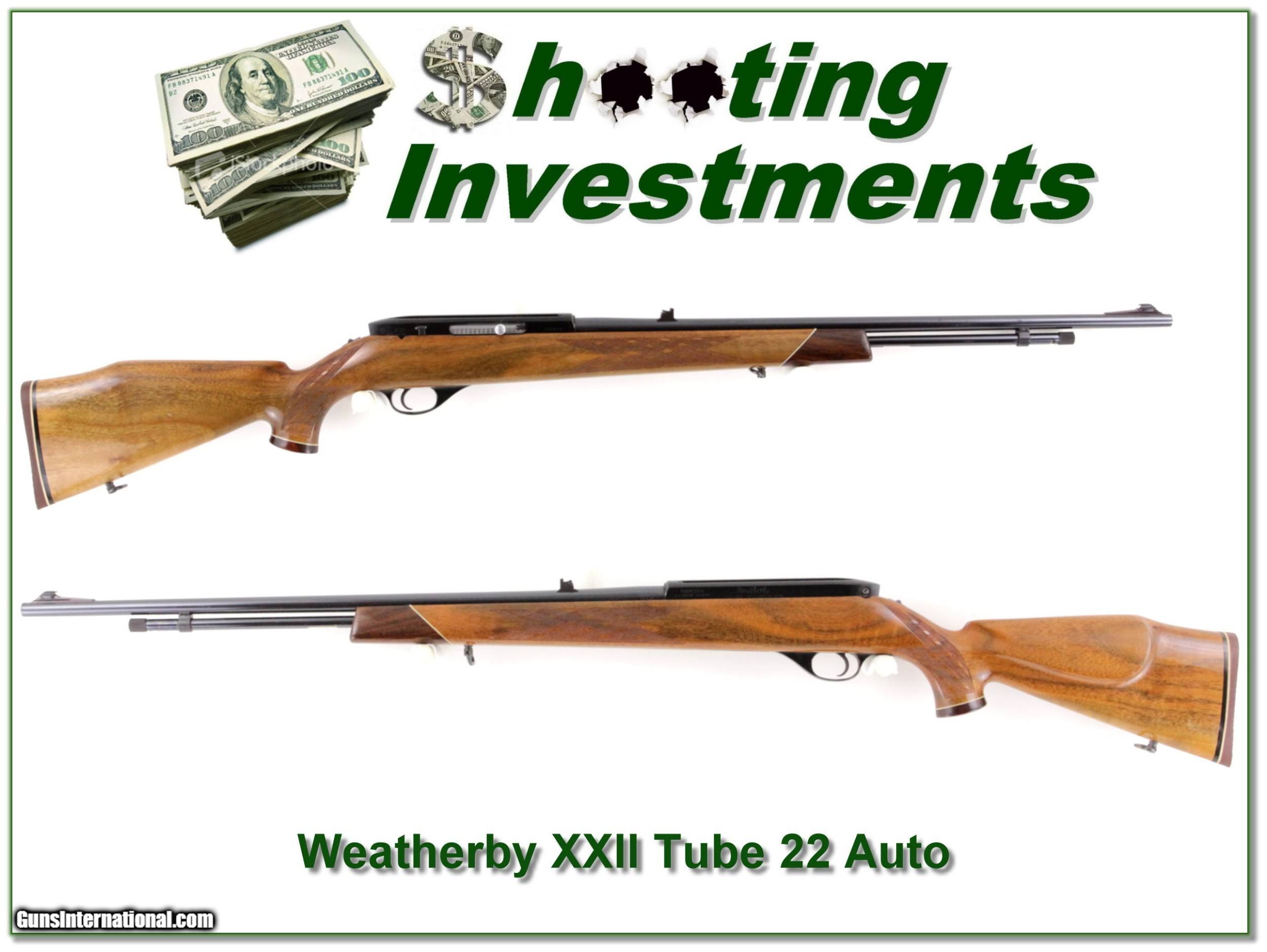 Description: Collectors and shooters, this is a hard to find Weatherby XXII 22 Auto with 15 round tube feed magazine. It has beautiful honey blond wood with no marks of note and just a couple small marks on the barrel. I am sure only a few rounds fired. It will make a high-end rimfire and fine addition to your collection. Shipping with insurance is $39. Please email me with any questions or larger pictures. (Consign your quality firearms with Shooting Investments for only 12%! Let me know if you have any you would like to sell!) 19-0910 Payment: Payment is by Money Order, Cashiers Check or Personal Check. I can now also accept Credit Cards (MasterCard, Visa, Discover & American Express) with a 3% convenience fee. PayPal can be used for some items but never for firearms. Shipping: The shipping charge will be listed in each description. It is $39 for most firearms. Some heavy guns or those insured for over $2000 will be higher. Shipments to Alaska and Hawaii are higher because air shipment is required. Most firearms are shipped on Tuesday and Thursday and usually in 5 days of receipt of payment. We package all shipments carefully and insure them. Optics are shipped Priority Mail and most other non-firearm shipments are shipped First Class. Returns: Our return policy is simple. If for any reason you are not pleased with your purchase, you may return your item for a full refund of purchase price. Ammunition cannot be returned. It is important to us that you are happy. Guns cannot be fired or dissembled before returning them and they must be returned in the same condition as received. Notification of a return must occur with-in 3 days of receipt at your dealer. Shipping, convenience and dealer fees are not refundable and are the responsibility of the buyer. Lay-a-way: If needed, we offer a 60 day lay-a-way option on most firearms. It is 1/3 now, 1/3 in 30 days and 1/3 in 60 days. Lay-a-way firearm sales are final and if not completed the first payment cannot be returned. Consigning your firearms with Shooting Investments: We will help you get top dollar for your firearms. While most local guns shops charge 20% or more, our fee is only 12% with a minimum of $75. At your local gun shop it might take months to sell. Selling on-line provides instant access to thousands of interested buyers. You won’t find any other on-line dealer willing to sell your firearms for only 12% or listing every gun on 3 separate s. Selling through an House typically costs the seller 15% and the buyer an addition 15% (so 30%) and you have to wait several months to sell and longer to receive funds. If properly priced, we will sell your firearms in a few weeks. Send us an email or give us a call and we’ll explain how easy it is for you to get top dollar. Trading: Trading for use is really just buying your gun to re-sell. If you have a gun you want to trade, please email a picture and we will let you know what we can give or it. You will always get more if we sell it for you on consignment. Help for California Buyers: We are happy to ship to California. It is the buyer’s responsibility to make sure any item you buy is legal in your state. We are also happy to help with your purchase of a firearm from someone other than us. If you see a gun you would like to buy but the seller can’t or won’t ship to California they can ship to use and we’ll then ship it to your California dealer. The cost for this service is only $30 + shipping. Let us know if we can help! SOLD |