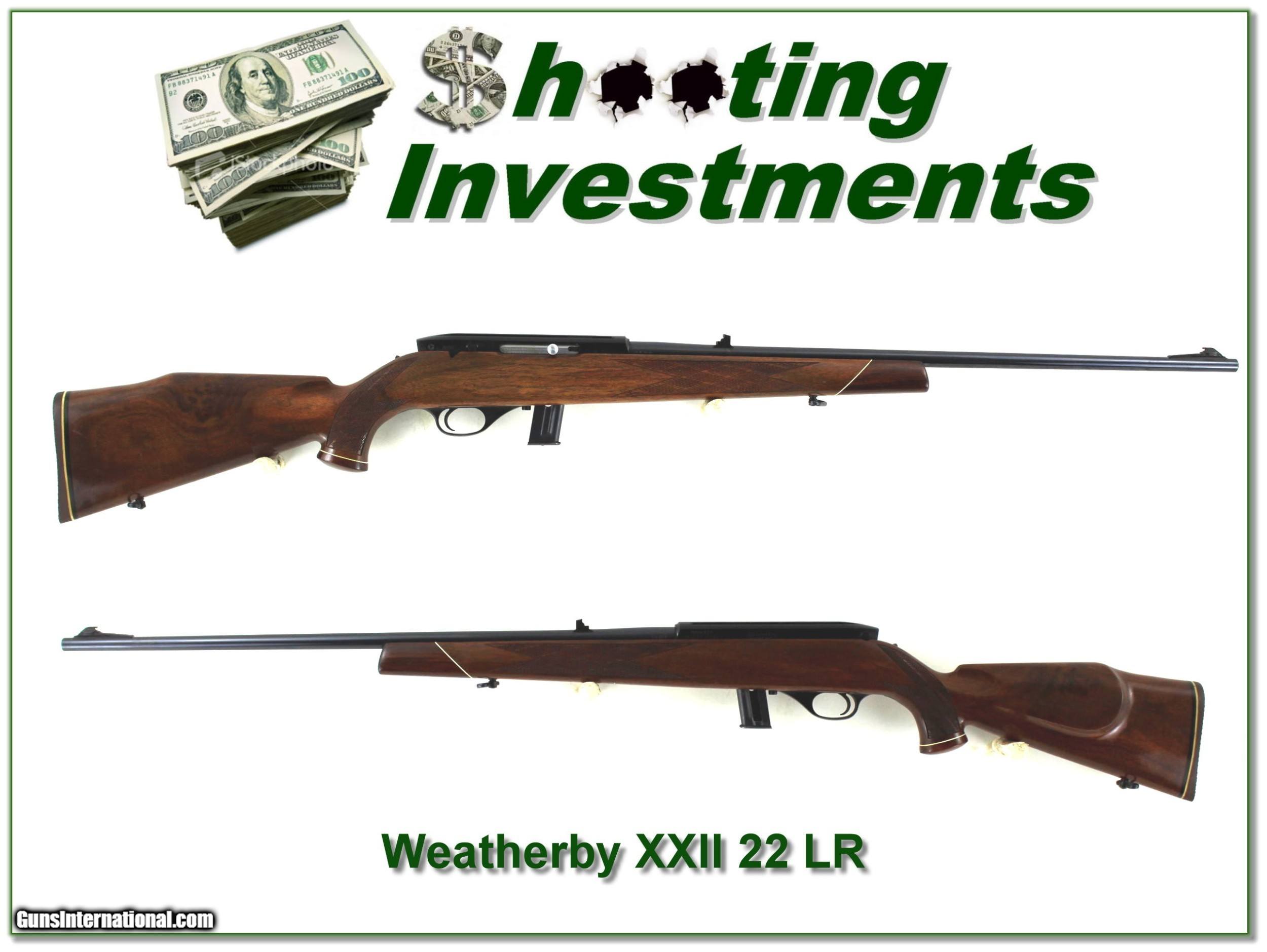 Description: This is a Weatherby XXII 22 semi-auto. It has very nice wood grain and colors and comes with a 10 round magazine as seen. The wood has scattered marks from use. From the bolt I’m sure not many rounds through it. These Weatherby 22’s are known for their accuracy and this one will make a nice one you can use! Shipping and insurance is $49. Please email me with any questions or larger pictures. (Consign your quality firearms with Shooting Investments for only 12%! Let me know if you have any you would like to sell!) 22-0710 Payment: Payment is by Money Order, Cashiers Check or Personal Check. I can now also accept Credit Cards (MasterCard, Visa, Discover & American Express) with a 3% convenience fee. Shipping: The shipping charge will be listed in each description. It is $49 for most long guns. Some heavy guns, over 48in boxes or those insured for over $2000 will be higher. Shipments to Alaska and Hawaii are higher because air shipment is required. Most firearms are shipped on Tuesday and Thursday and usually in 5 days of receipt of payment. We package all shipments carefully and insure them. Optics are shipped Priority Mail and most other non-firearm shipments are shipped First Class. Returns: Our return policy is simple. If for any reason you are not pleased with your purchase, you may return your item for a full refund of purchase price. Ammunition cannot be returned. It is important to us that you are happy. Guns cannot be fired or dissembled before returning them and they must be returned in the same condition as received. Notification of a return must occur with-in 3 days of receipt at your dealer. Shipping, convenience and dealer fees are not refundable and are the responsibility of the buyer. Lay-a-way: If needed, we offer a 60 day lay-a-way option on most firearms. It is 1/3 now, 1/3 in 30 days and 1/3 in 60 days. Lay-a-way firearm sales are final and if not completed the first payment cannot be returned. Consigning your firearms with Shooting Investments: We will help you get top dollar for your firearms. While most local guns shops charge 20% or more, our fee is only 12% with a minimum of $75. At your local gun shop it might take months to sell. Selling on-line provides instant access to thousands of interested buyers. You won’t find any other on-line dealer willing to sell your firearms for only 12% or listing every gun on 3 separate s. Selling through an House typically costs the seller 15% and the buyer an addition 15% (so 30%) and you have to wait several months to sell and longer to receive funds. If properly priced, we will sell your firearms in a few weeks. Send us an email or give us a call and we’ll explain how easy it is for you to get top dollar. Trading: Trading for use is really just buying your gun to re-sell. If you have a gun you want to trade, please email a picture and we will let you know what we can give or it. You will always get more if we sell it for you on consignment. Help for California Buyers: We are happy to ship to California. It is the buyer’s responsibility to make sure any item you buy is legal in your state. We are also happy to help with your purchase of a firearm from someone other than us. If you see a gun you would like to buy but the seller can’t or won’t ship to California they can ship to use and we’ll then ship it to your California dealer. The cost for this service is only $30 + shipping. Let us know if we can help! SOLD |