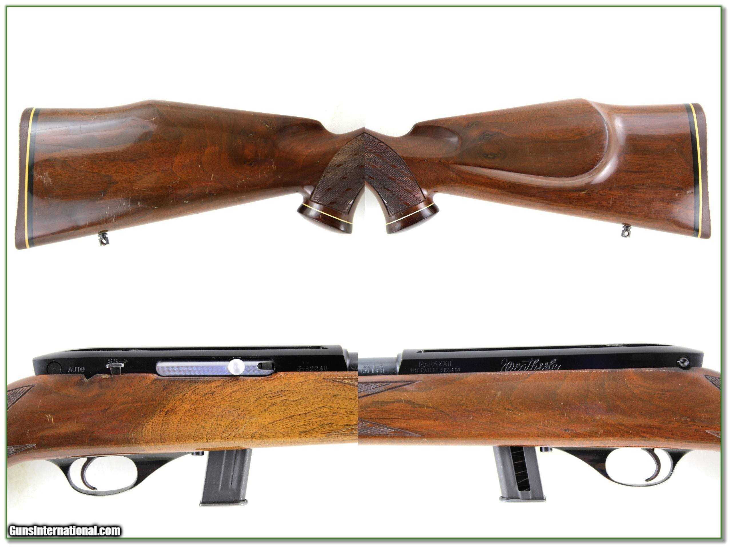 Description: This is a very nice Weatherby XXII 22 LR Semi-Auto. It is an early first model Japan made gun (same model as original Italian ones). The metal is excellent and the high-gloss wood has some marks as seen. From the bolt jeweling it don‘t think many rounds fired. These are known as excellent shooters! Shipping and insurance is $49. Please email me with any questions or larger pictures. (Consign your quality firearms with Shooting Investments for only 12%! Let me know if you have any you would like to sell!) 14-0650 Payment: Payment is by Money Order, Cashier’s Check or Personal Check. I can now also accept Credit Cards (MasterCard, Visa, Discover & American Express) with a 3% convenience fee. Shipping: The shipping charge will be listed in each description. It is $49 for most firearms. Some heavy guns or those insured for over $2000 will be higher. Shipments to Alaska and Hawaii are higher because air shipment is required. Most firearms are shipped on Tuesday and Thursday and usually in 5 days of receipt of payment. We package all shipments carefully and insure them. Optics are shipped Priority Mail and most other non-firearm shipments are shipped First Class. Returns: Our return policy is simple. If for any reason you are not pleased with your purchase, you may return your item for a full refund of purchase price. Ammunition cannot be returned. It is important to us that you are happy. Guns cannot be fired or dissembled before returning them and they must be returned in the same condition as received. Notification of a return must occur within 3 days of receipt at your dealer. Shipping, convenience and dealer fees are not refundable and are the responsibility of the buyer. Lay-a-way: If needed, we offer a 60 day lay-a-way option on most firearms. It is 1/3 now, 1/3 in 30 days and 1/3 in 60 days. Lay-a-way firearm sales are final and cannot be returned. If a lay-a-way is not completed the first payment cannot be refunded. Consigning your firearms with Shooting Investments: We will help you get top dollar for your firearms. While most local guns shops charge 20% or more, our fee is only 12% with a minimum of $75. At your local gun shop it might take months to sell. Selling on-line provides instant access to thousands of interested buyers. You won’t find any other on-line dealer willing to sell your firearms for only 12% or listing every gun on 3 separate s. Selling through an House typically costs the seller 15% and the buyer an addition 15% (so 30%) and you have to wait several months to sell and longer to receive funds. If properly priced, we will sell your firearms within a few weeks. Send us an email or give us a call and we’ll explain how easy it is for you to get top dollar. Trading: Trading for us is really just buying your gun to re-sell. If you have a gun you want to trade, please email a picture and we will let you know what we can give for it. You will always get more if we sell it for you on consignment. SOLD |