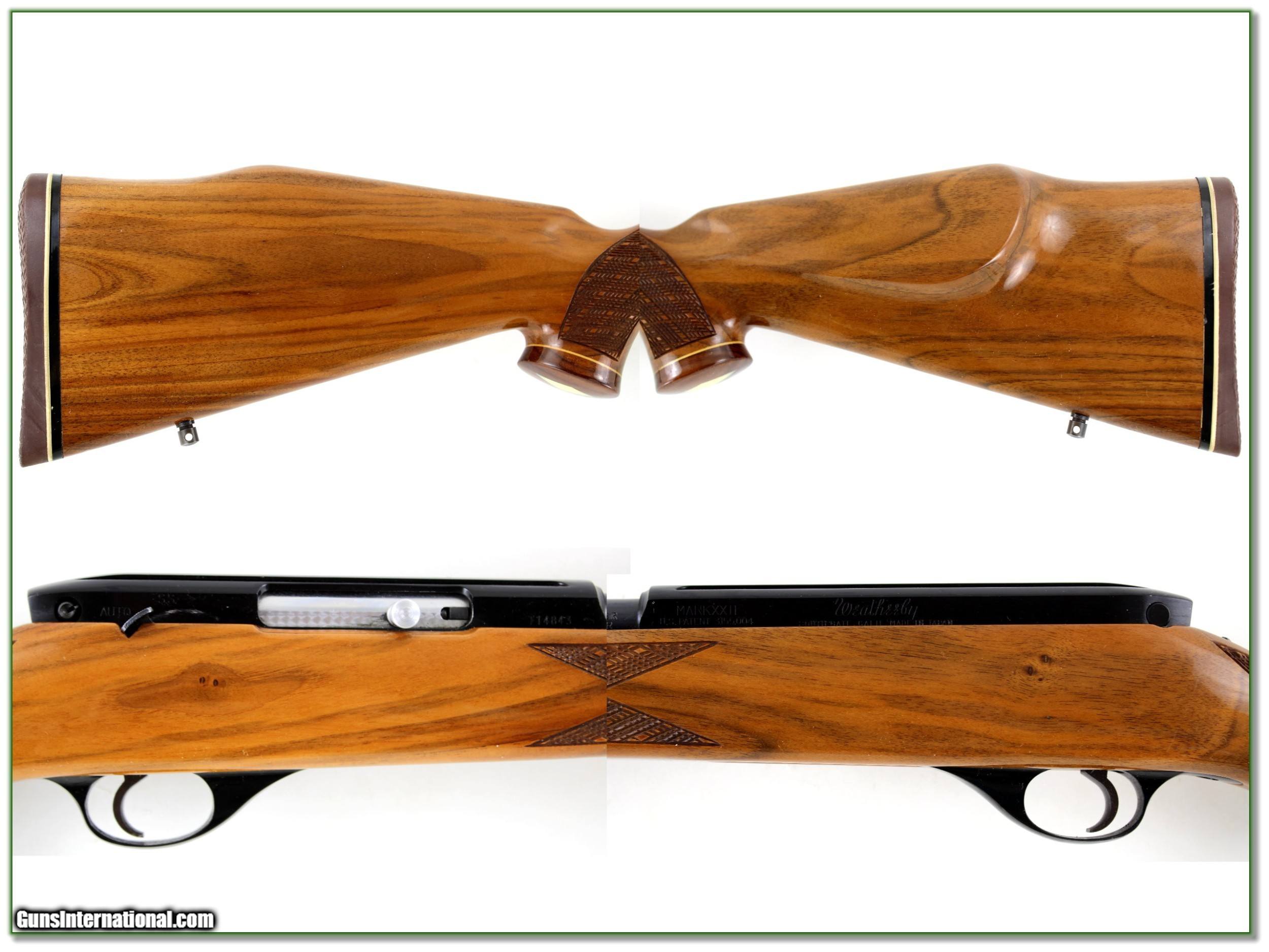 Description: This is an excellent condition Weatherby XXII 22 Auto. The tube guns are much harder to find that the magazine version. And finding one in the box has gotten VERY hard. This one has beautiful honey blond wood with a just a few marks. The metal has no marks I see. I am sure not many rounds fired. It comes with box and even Weatherby cardboard shipping box. Manual and factory test target are included. I cannot find the box end label. I am selling this one on consignment and as such lay-a-way can’t be used. It does of course have the standard 3-day inspection. Shipping with insurance is $39. Please email me with any questions or larger pictures. (Consign your quality firearms with Shooting Investments for only 12%! Let me know if you have any you would like to sell!) 20-0090 Payment: Payment is by Money Order, Cashiers Check or Personal Check. I can now also accept MasterCard and Visa with a 3% convenience fee. PayPal can be used for some items but never firearms. Please let us know if you would like to pay via PayPal. Shipping: The shipping charge will be listed in each description. It is $39 for most guns. Some heavy guns or those insured for over $2000 will be higher. Shipments to Alaska and Hawaii are higher because air shipment is required. Most firearms are shipped on Tuesday and Thursday and usually in 5 days of receipt of payment. We package all shipments carefully and insure them. Returns: Our return policy is simple. If for any reason you are not pleased with your purchase, you may return your item for a full refund of purchase price. Ammunition cannot be returned. It is important to us that you are happy. Guns cannot be fired or dissembled before returning them and they must be returned in the same condition as received. Notification of a return must occur with-in 3 days of receipt at your dealer. Shipping, convenience and dealer fees are not refundable and are the responsibility of the buyer. Lay-a-way: If needed, we offer a 60 day lay-a-way option on most firearms. It is 1/3 now, 1/3 in 30 days and 1/3 in 60 days. Lay-a-way firearm sales are final and if not completed the first payment cannot be returned. Consigning your firearms with Shooting Investments: We will help you get top dollar for your firearms. While most local guns shops charge 20% or more, our fee is only 12% with a minimum of $75. At your local gun shop it might take months to sell. Selling on-line provides instant access to thousands of interested buyers. You won’t find any other on-line dealer willing to sell your firearms for only 12% or listing every gun on 3 separate s. Selling through an House typically costs the seller 15% and the buyer an addition 15% (so 30%) and you have to wait several months to sell and longer to receive funds. If properly priced, we will sell your firearms in a few weeks. Send us an email or give us a call and we’ll explain how easy it is for you to get top dollar. Trading: Trading for use is really just buying your gun to re-sell. If you have a gun you want to trade, please email a picture and we will let you know what we can give or it. You will always get more if we sell it for you on consignment. Help for California Buyers: We are happy to ship to California. It is the buyer’s responsibility to make sure any item you buy is legal in your state. We are also happy to help with your purchase of a firearm from someone other than us. If you see a gun you would like to buy but the seller can’t or won’t ship to California they can ship to use and we’ll then ship it to your California dealer. The cost for this service is only $30 + shipping. Let us know if we can help! SOLD |