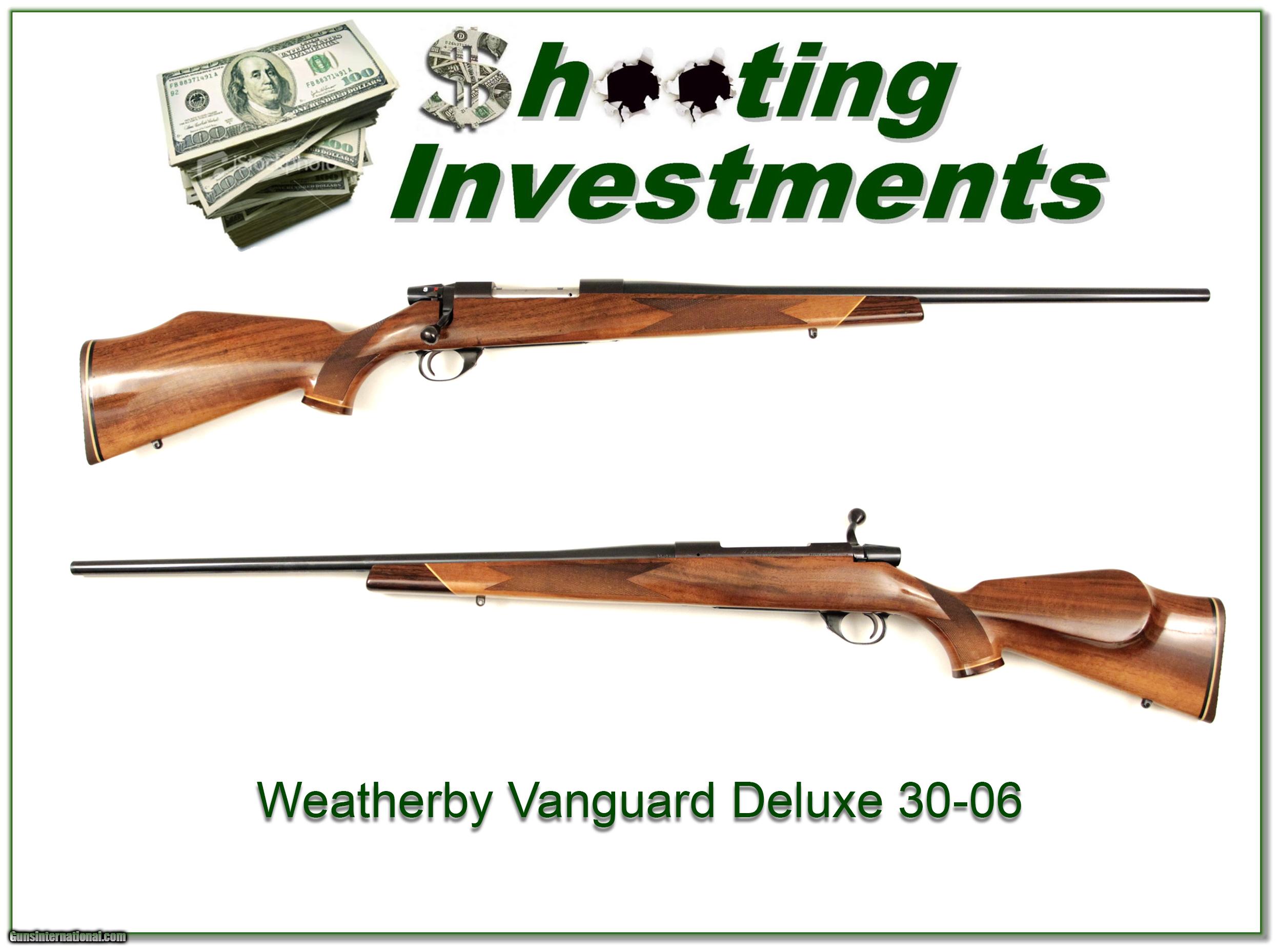 Description: This is an early Vanguard Deluxe in 30-06. These have polished blue and high gloss stocks. This one is in excellent condition with only a couple minor marks. It is in a standard caliber and will make a high end hunting gun for the cost of a low quality new gun. And this one will likely go up in value over time. That’s what I call a Shooting Investment. Shipping and insurance is $30 and please email me with any questions or larger pictures. (I now consign quality firearms only 10%! Let me know if you have any you would like to sell!) [14-1020] Payment: Payment is by Money Order, Cashiers Check or Personal Check. I can now also accept MasterCard and Visa with a 3% convenience fee. PayPal can be used for some items but never firearms. Please let us know if you would like to pay via PayPal. Shipping: The shipping charge will be listed in each description. It is $35 for most guns. Some heavy guns or those insured for over $2000 will be higher. Shipments to Alaska and Hawaii are higher because air shipment is required. Most firearms are shipped within 5 days of receipt of payment. We prefer shipping at the beginning of the week to avoid firearms in transit over weekends. We package all shipments carefully and insure them for the full purchase price, rounded up to the next $100. In the unlikely event that damage occurs, it is important that you save all packaging material for the claims process. Optics are shipped Priority Mail and most other non-firearm shipments are shipped First Class. Returns: Our return policy is simple. If for any reason you are not pleased with your purchase, you may return your item for a refund. The only exception is ammunition, it cannot be returned. It is important to us that you are happy. Guns cannot be fired or dissembled before returning them and must be returned in the same condition as received. Notification of a return must occur with-in 3 days of receipt at your dealer. Shipping, convenience and dealer fees are not refundable and are the responsibility of the buyer. Lay-a-way: If needed, we offer a 60 day lay-a-way option on most firearms. It is 1/3 now, 1/3 in 30 days and 1/3 in 60 days. Lay-a-way firearm sales are final. Consigning your firearms with Shooting Investments: We will help you get top dollar for your firearms. While most local guns shops charge 20% or more, our fee is only 10% with a minimum of $50. At your local gun shop it might take months to sell. Selling on-line provides instant access to thousands of interested buyers. You won’t find any other on-line dealer willing to sell your firearms for only 10% or listing every gun on 4 separate s. Selling through an House typically costs the seller 15% and the buyer an addition 15% (so 30%) and you have to wait several months to sell and longer to receive funds. If properly priced, we will sell your firearms in a week or two. Send us an email or give us a call and we’ll explain how easy it is for you to get top dollar. Trading: We collect guns and usually just trade for guns we want to add to our collections. We often sell guns for others wanting to purchase one of ours. We find this the most fair to both of us. Our Commission is only 10% and we hold the gun you want until yours sells. Please contact us if you want to sell one of yours to buy one of ours. Help for California Buyers: We are happy to ship to California. It is the buyer’s responsibility to make sure any item you buy is legal in your state. We are also happy to help with your purchase of a firearm from someone other than us. If you see a gun you would like to buy but the seller can’t or won’t ship to California we can help. You buy the gun and have it shipped to us. We’ll then ship it to your California dealer. The cost for this service is only $30 + shipping. Let me know if we can help! SOLD |