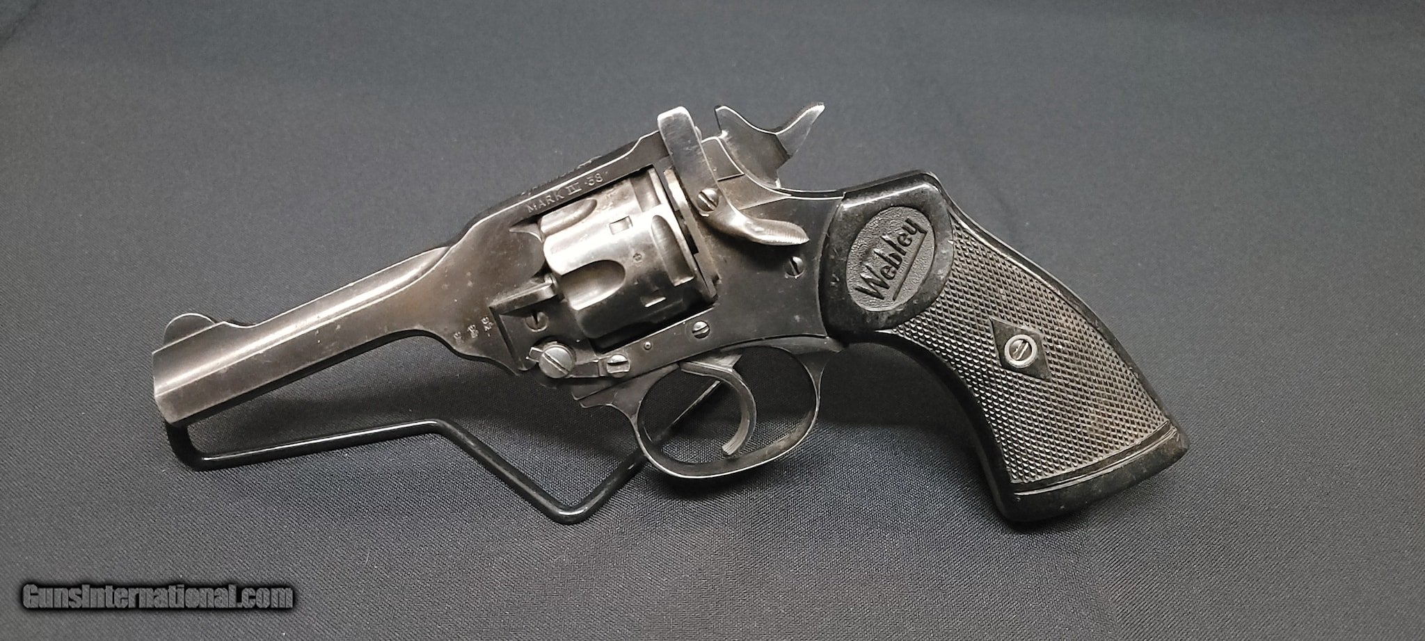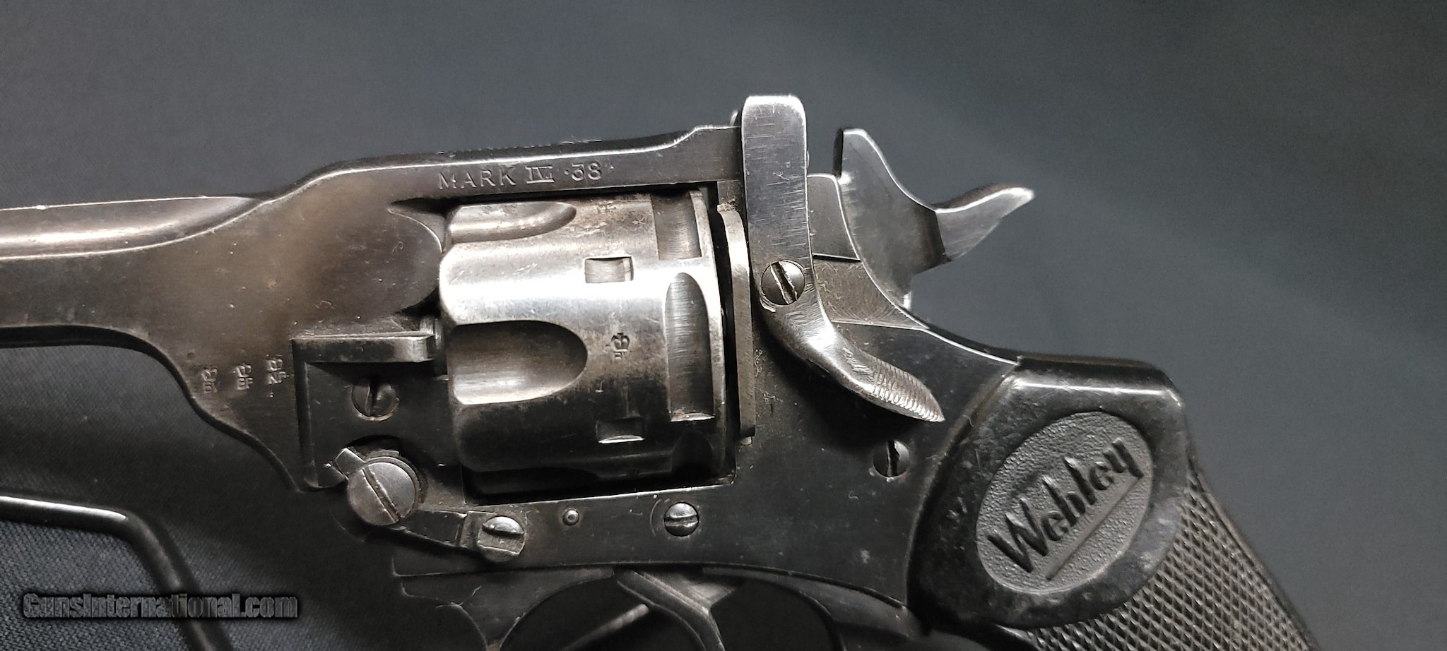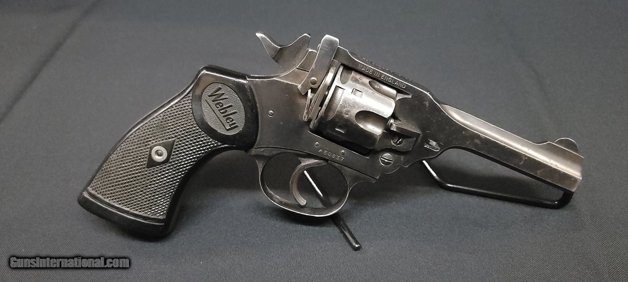 Description: Guns Listing ID: 1231305 Webley & Scott Mark IV Revolver chambered in .38 S&W . Serial number puts manufacture date between 1947-1957. Barrel measures 4\" with good rifling and shiny bore. See pictures for more detail. SOLD Manufacturer: WEBLEY & SCOTT Model: MARK IV Caliber Info: .38 S&W Condition: Used - Non-Certified Barrels: 4 BARREL Finish: BLUE |