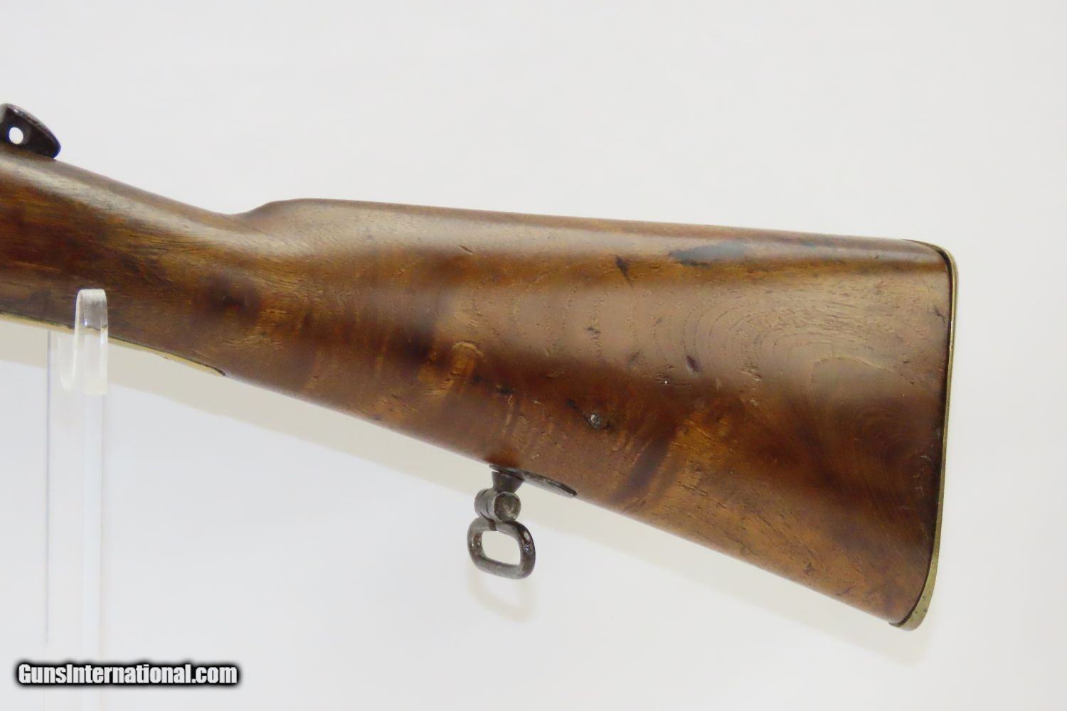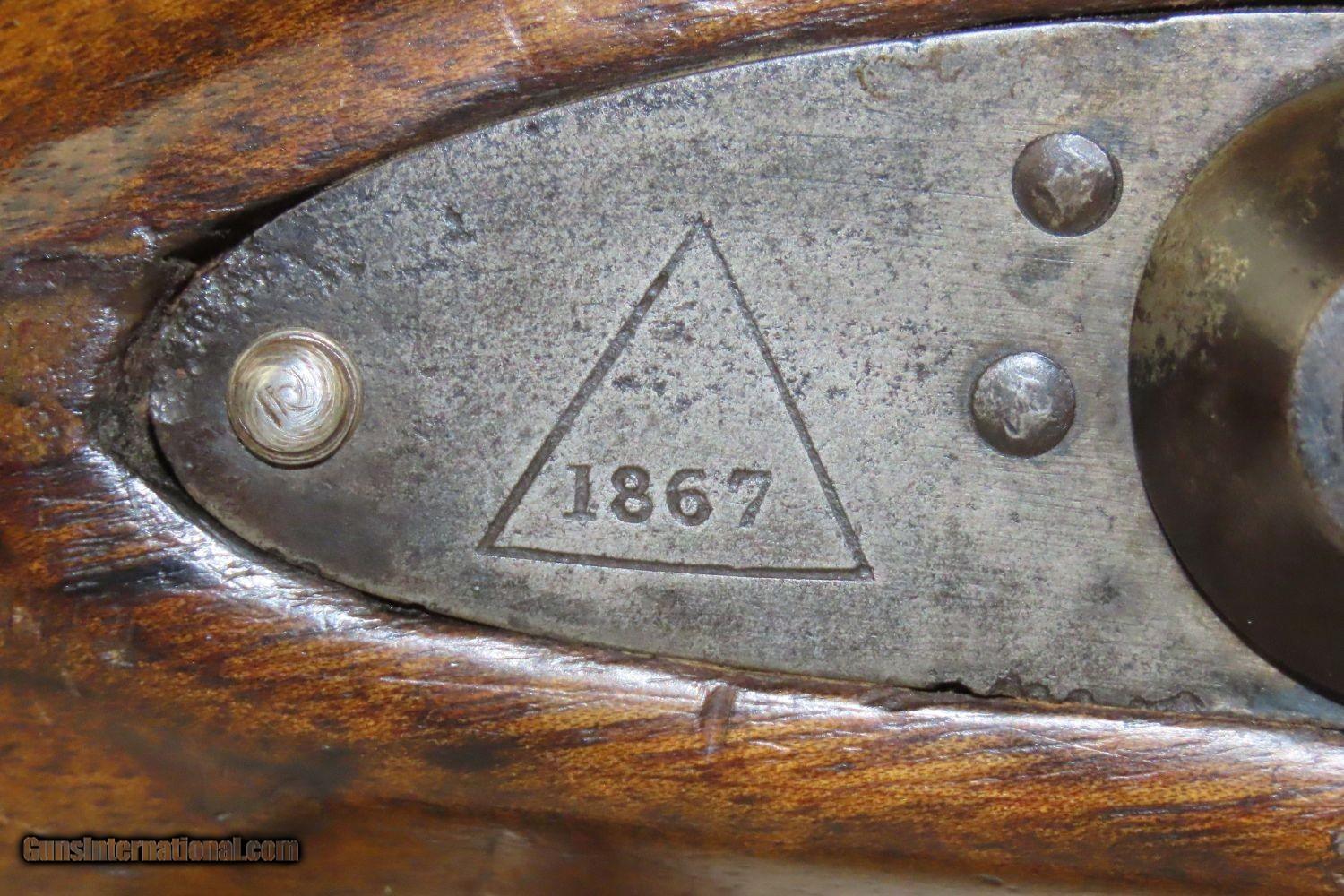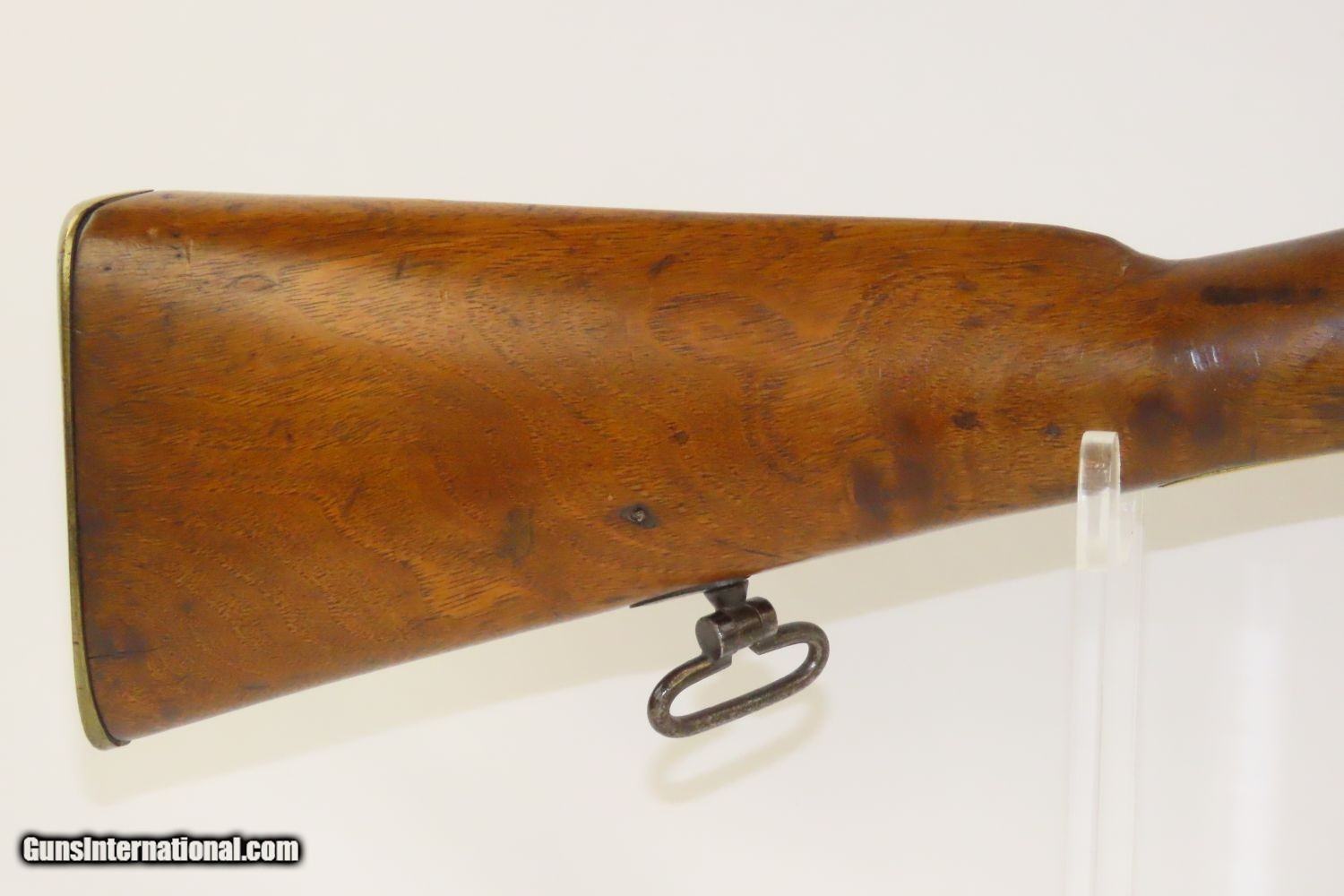 Description: SCARCE “MONKEY TAIL” Carbine by WESTLEY RICHARDS British Percussion Antique Breech Loading Favorite of Boers during War, 1867 Date Here we present an antique Westley Richards Monkey Tail Breech-Loading Percussion Carbine, made in 1867 in Birmingham, England. Westley Richards & Co. still make world class firearms to this day, over 200 years. William Westley Richards established his prestigious company in 1812, only yet 22 years of age, at 82 High Street in Birmingham. He established his high end London shop in 1815 at 170 New Bond Street. William’s son, Westley Richards, joined his father in business at the age of 26 and continued to prosper the business with his own ideas and patents. It was he who was responsible for the design of the aforementioned Monkey Tail Carbine in 1858. The source of its being called a “Monkey Tail” is the shape of the small knob on the loading lever. The carbine was an early pioneer in the use of polygonal rifling and utilized an ingenious caplock, breech-loading system. The rifling is what the “Whitworth’s Patent” marking on the barrel refers to, though it seems at this time the marking was a friendly attribution to Joseph Whitworth and not required by law. Both Richards and Whitworth appear to have worked simultaneously, if not somewhat together, on improving rifling technology. The rifling in these guns is octagonal, whereas Whitworth’s was hexagonal. Nevertheless, Richards seems to have wanted to give Whitworth the credit. As for the breech-loading system, the top lever hinges up, allowing the shooter to load the cartridge, just like some other designs of the time. However, upon closing the lever, the brass piston inside was mobile and when a cartridge was ignited, the gas pressure would push the piston back, locking the breech closed while chamber pressure was high. Richards’s carbines and rifles were met with great interest from the British military, which did lead to extensive testing and even a sizeable contract, but it was not adopted as a primary arm. Nevertheless, about 27,000 were issued in the British Army and about 4,000 to volunteer and colonial forces. British ally, Portugal, also ordered 11,000, and Westley Richards & Co. sold many (about 21,000) to South Africa in the 1870s and 80s, prior to complete deterioration in relations between the Boers and Britain. These were the guns that Boer children grew up shooting and it has been said that the proof test of marksmanship was hitting a chicken’s egg at 100 yards with a Monkey Tail. The carbine’s short overall length made it extremely handy on horseback or foot, and in thick vegetation. Though considered quite obsolete at the time of the Boer War in 1881, this is how many of the Boer fighters were armed when they defeated the British and gained their independence. At Majuba, 500 Boers, mostly armed with the Richards, defeated 647 British soldiers, who were armed with the more modern Martini Henry rifle. In fact, more modern metallic cartridges could have proved a hindrance to them as ammunition availability was scarce. The old Monkey Tail was actually advantageous, since it used paper cartridges. Powder, paper, ball and primers were easily obtained in remote Africa and the ‘tail could be muzzle loaded if paper was not handy. “1867 and “WESTLEY RICHARDS & Co.” is engraved on the lock and breech. “WHITWORTH PATENT” can be read a top the barrel. The overall condition is very good. The action is strong. The bore is bright in good shape. All markings are clear. There is a very small, hairline split at the front of the comb that does not move. The various proofs on the left of the barrel are sharp. A wonderful example of a scarce British carbine! Own the original! This is a legitimate antique and not a reproduction. Barrel is 20 inches in length. Caliber: .451 Overall condition as seen in photos. Very Fast. Very Safe. FREE SHIPPING WORLDWIDE. Delivered directly to your door by express mail! Guaranteed AUTHENTIC & Includes CERTIFICATE OF AUTHENTICITY. ancestryguns $3645 #201282 SOLD Antique: Yes |
