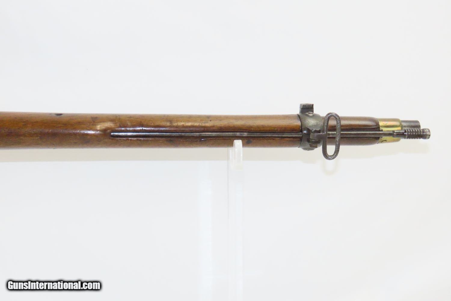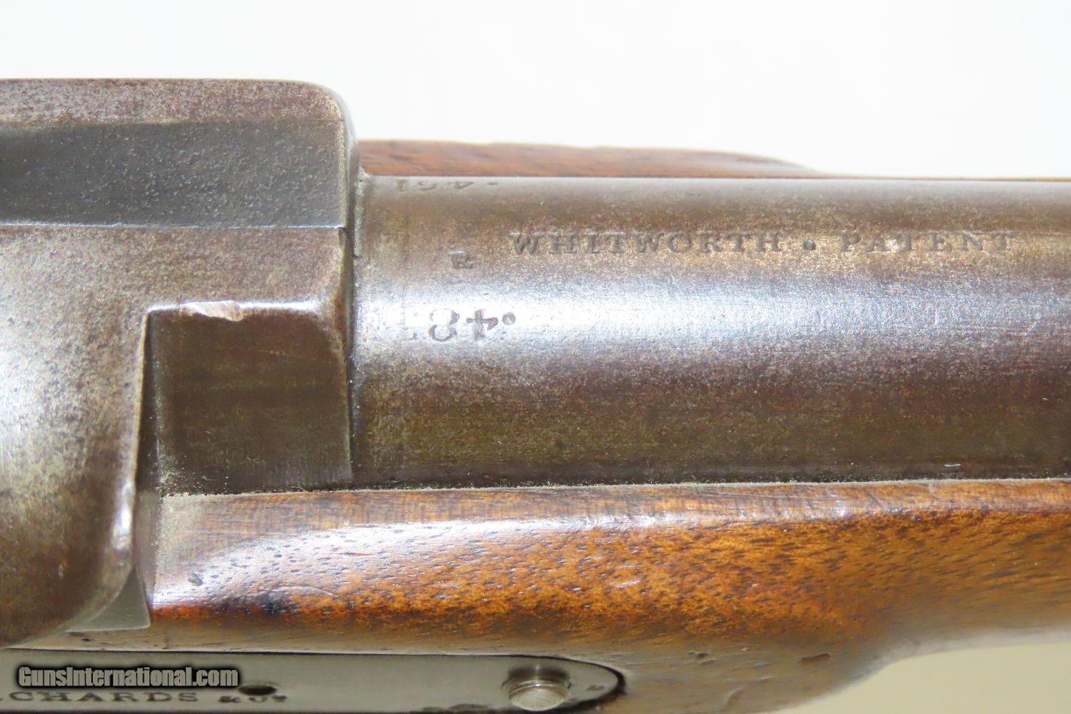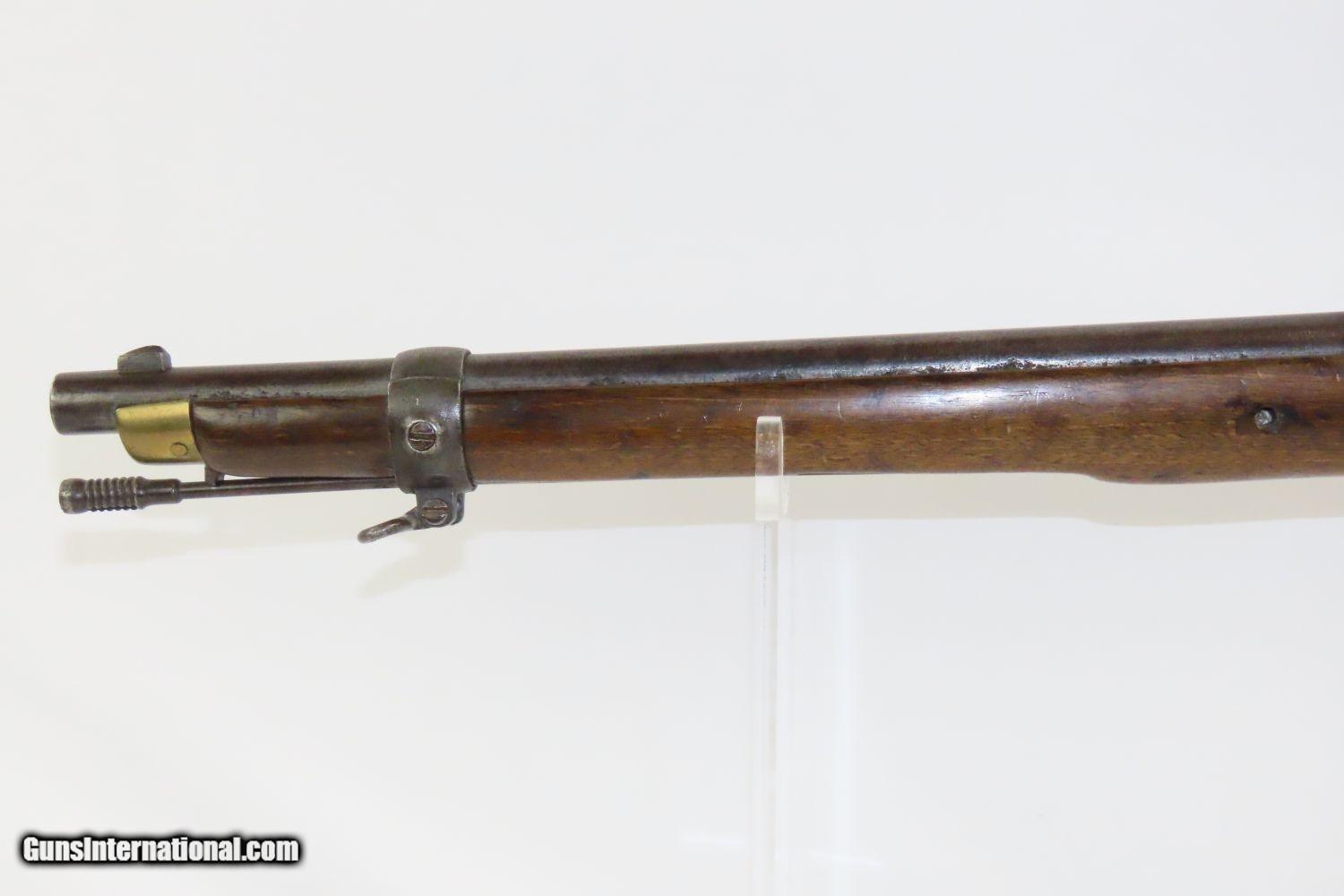 Description: SCARCE “MONKEY TAIL” Carbine by WESTLEY RICHARDS British Percussion Antique Breech Loading Favorite of Boers during War, 1867 Date Here we present an antique Westley Richards Monkey Tail Breech-Loading Percussion Carbine, made in 1867 in Birmingham, England. Westley Richards & Co. still make world class firearms to this day, over 200 years. William Westley Richards established his prestigious company in 1812, only yet 22 years of age, at 82 High Street in Birmingham. He established his high end London shop in 1815 at 170 New Bond Street. William’s son, Westley Richards, joined his father in business at the age of 26 and continued to prosper the business with his own ideas and patents. It was he who was responsible for the design of the aforementioned Monkey Tail Carbine in 1858. The source of its being called a “Monkey Tail” is the shape of the small knob on the loading lever. The carbine was an early pioneer in the use of polygonal rifling and utilized an ingenious caplock, breech-loading system. The rifling is what the “Whitworth’s Patent” marking on the barrel refers to, though it seems at this time the marking was a friendly attribution to Joseph Whitworth and not required by law. Both Richards and Whitworth appear to have worked simultaneously, if not somewhat together, on improving rifling technology. The rifling in these guns is octagonal, whereas Whitworth’s was hexagonal. Nevertheless, Richards seems to have wanted to give Whitworth the credit. As for the breech-loading system, the top lever hinges up, allowing the shooter to load the cartridge, just like some other designs of the time. However, upon closing the lever, the brass piston inside was mobile and when a cartridge was ignited, the gas pressure would push the piston back, locking the breech closed while chamber pressure was high. Richards’s carbines and rifles were met with great interest from the British military, which did lead to extensive testing and even a sizeable contract, but it was not adopted as a primary arm. Nevertheless, about 27,000 were issued in the British Army and about 4,000 to volunteer and colonial forces. British ally, Portugal, also ordered 11,000, and Westley Richards & Co. sold many (about 21,000) to South Africa in the 1870s and 80s, prior to complete deterioration in relations between the Boers and Britain. These were the guns that Boer children grew up shooting and it has been said that the proof test of marksmanship was hitting a chicken’s egg at 100 yards with a Monkey Tail. The carbine’s short overall length made it extremely handy on horseback or foot, and in thick vegetation. Though considered quite obsolete at the time of the Boer War in 1881, this is how many of the Boer fighters were armed when they defeated the British and gained their independence. At Majuba, 500 Boers, mostly armed with the Richards, defeated 647 British soldiers, who were armed with the more modern Martini Henry rifle. In fact, more modern metallic cartridges could have proved a hindrance to them as ammunition availability was scarce. The old Monkey Tail was actually advantageous, since it used paper cartridges. Powder, paper, ball and primers were easily obtained in remote Africa and the ‘tail could be muzzle loaded if paper was not handy. “1867 and “WESTLEY RICHARDS & Co.” is engraved on the lock and breech. “WHITWORTH PATENT” can be read a top the barrel. The overall condition is very good. The action is strong. The bore is bright in good shape. All markings are clear. There is a very small, hairline split at the front of the comb that does not move. The various proofs on the left of the barrel are sharp. A wonderful example of a scarce British carbine! Own the original! This is a legitimate antique and not a reproduction. Barrel is 20 inches in length. Caliber: .451 Overall condition as seen in photos. Very Fast. Very Safe. FREE SHIPPING WORLDWIDE. Delivered directly to your door by express mail! Guaranteed AUTHENTIC & Includes CERTIFICATE OF AUTHENTICITY. ancestryguns $3645 #201282 SOLD Antique: Yes |