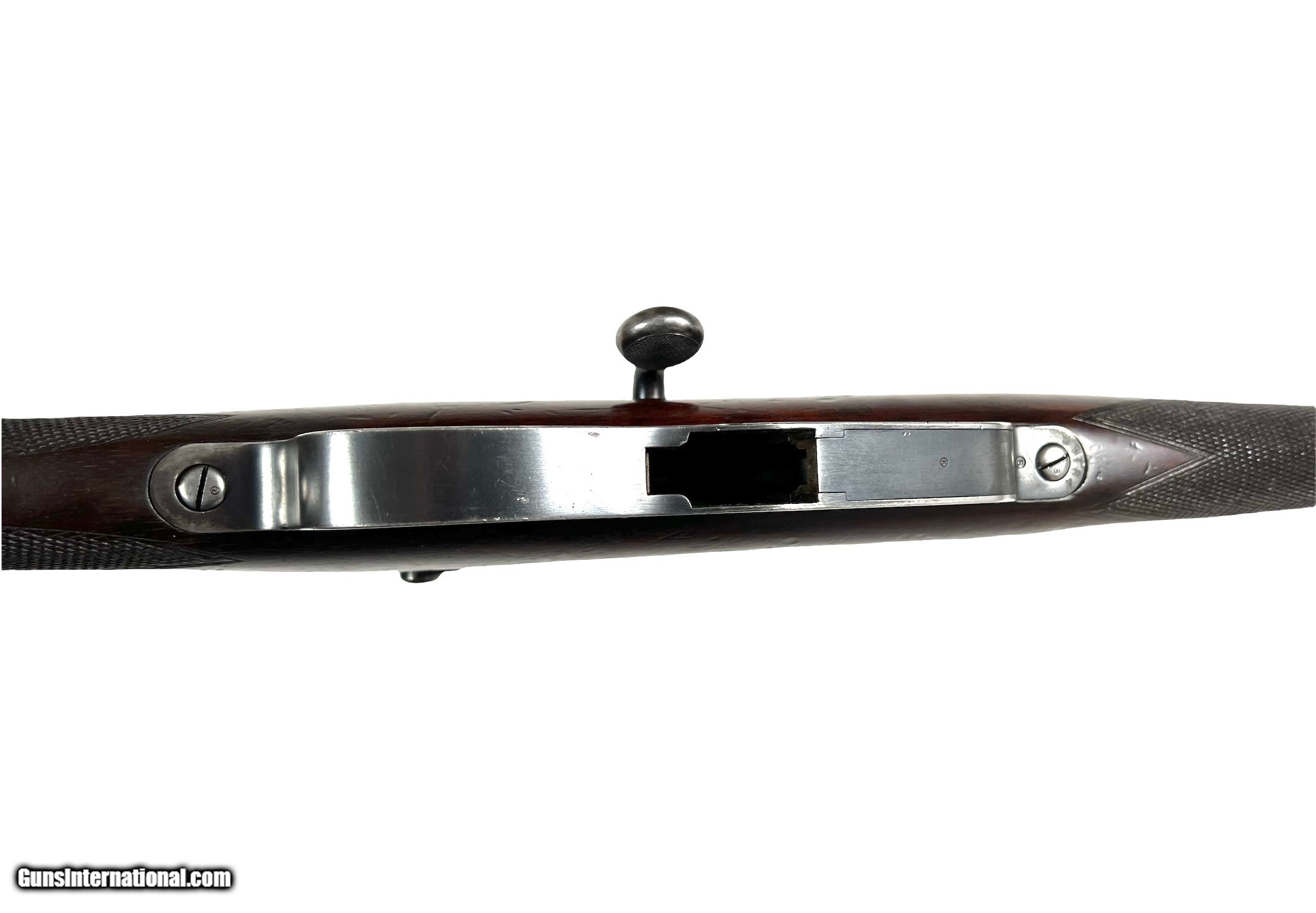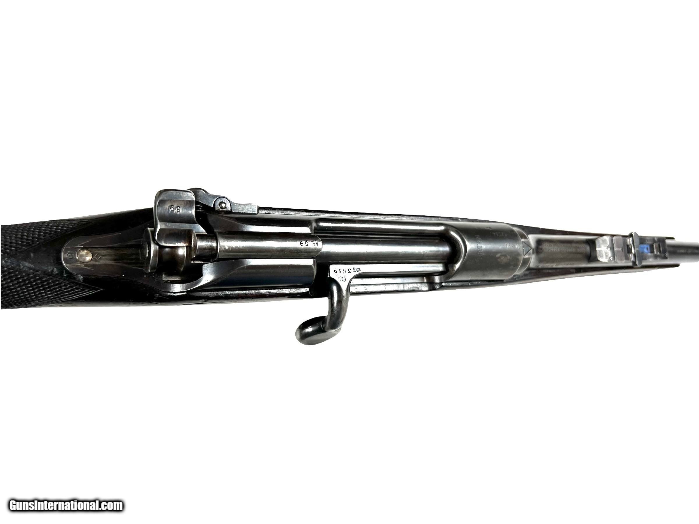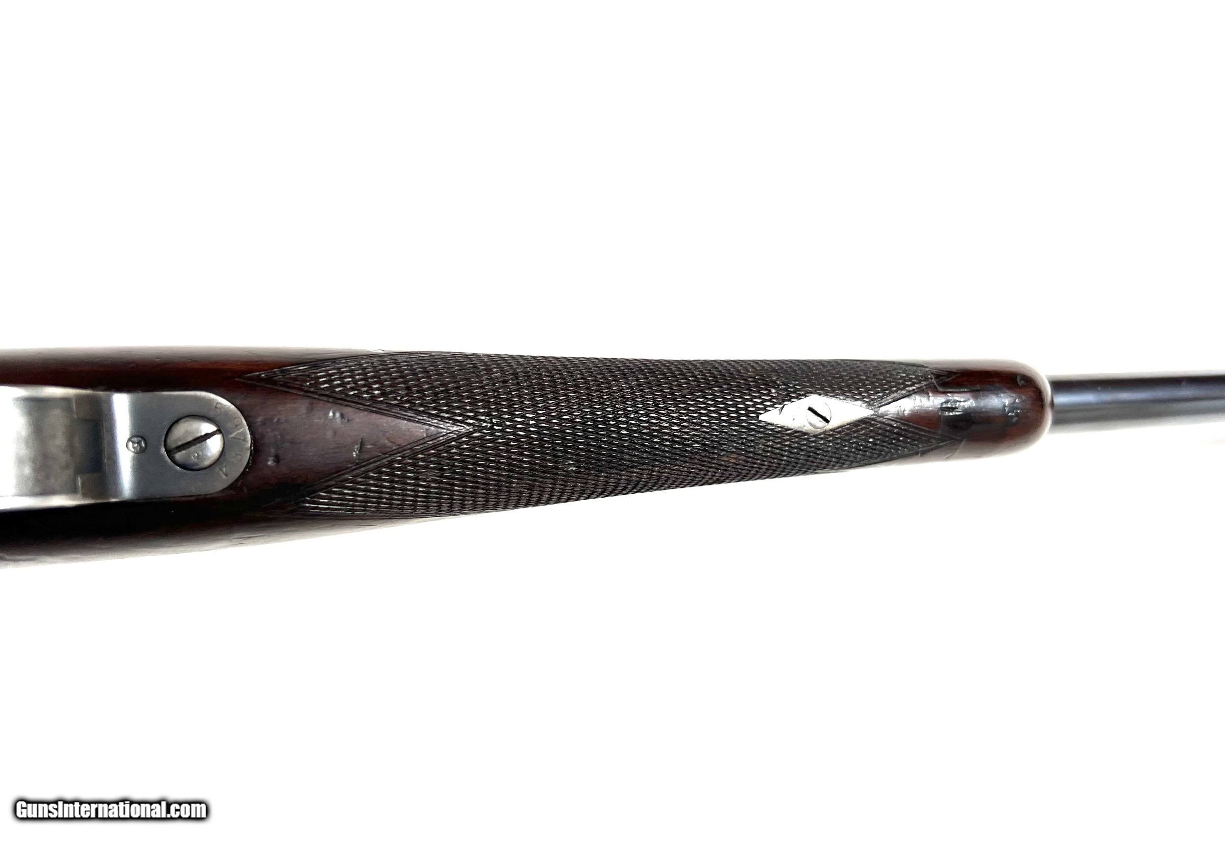 Description: Westley Richards 1892 mannlicher 375 2 1/2" nitro 25" barrel with excellent bore Express rear sight( standing 100 yard, folding to 300 yards, and a ladder to 1200 yards) Ramp front sight LOP 14" 6lbs 14oz Original condition early mannlicher express rifle that shoots 270grain bullets very well 20 rounds included with the rifle SOLD Antique: Yes Condition: Very good original condition Bore Condition: Excellent |