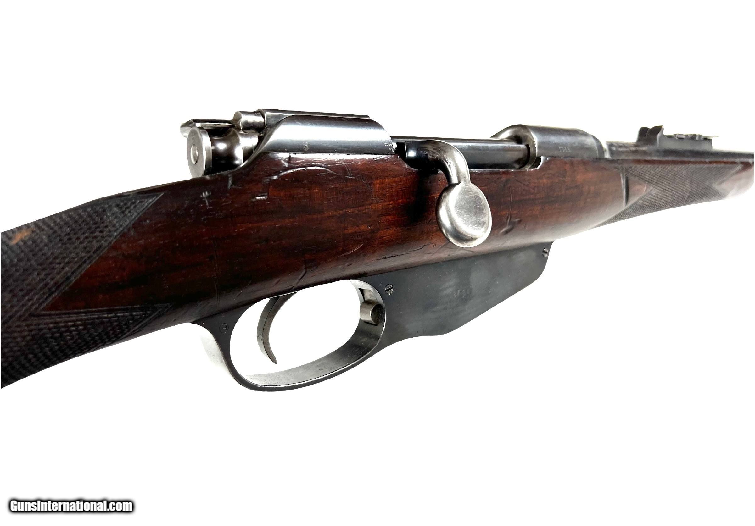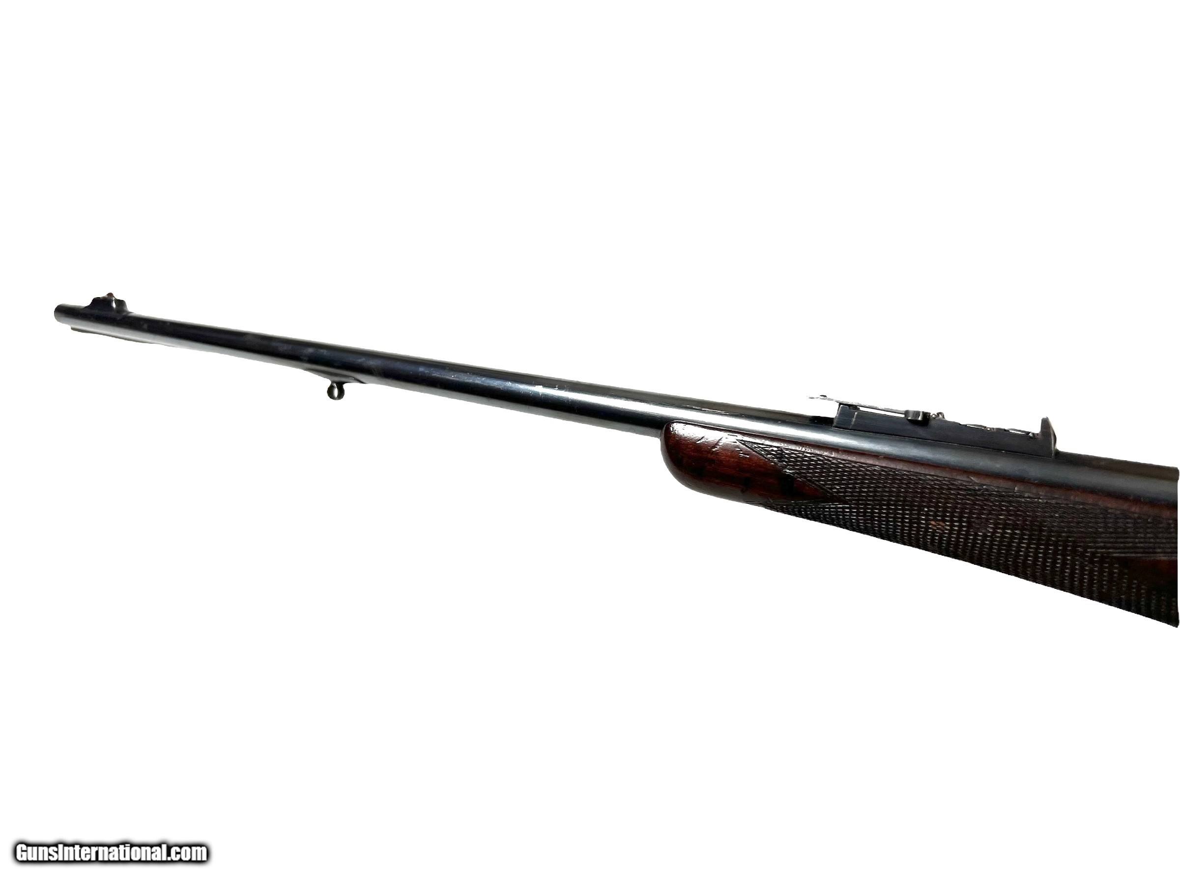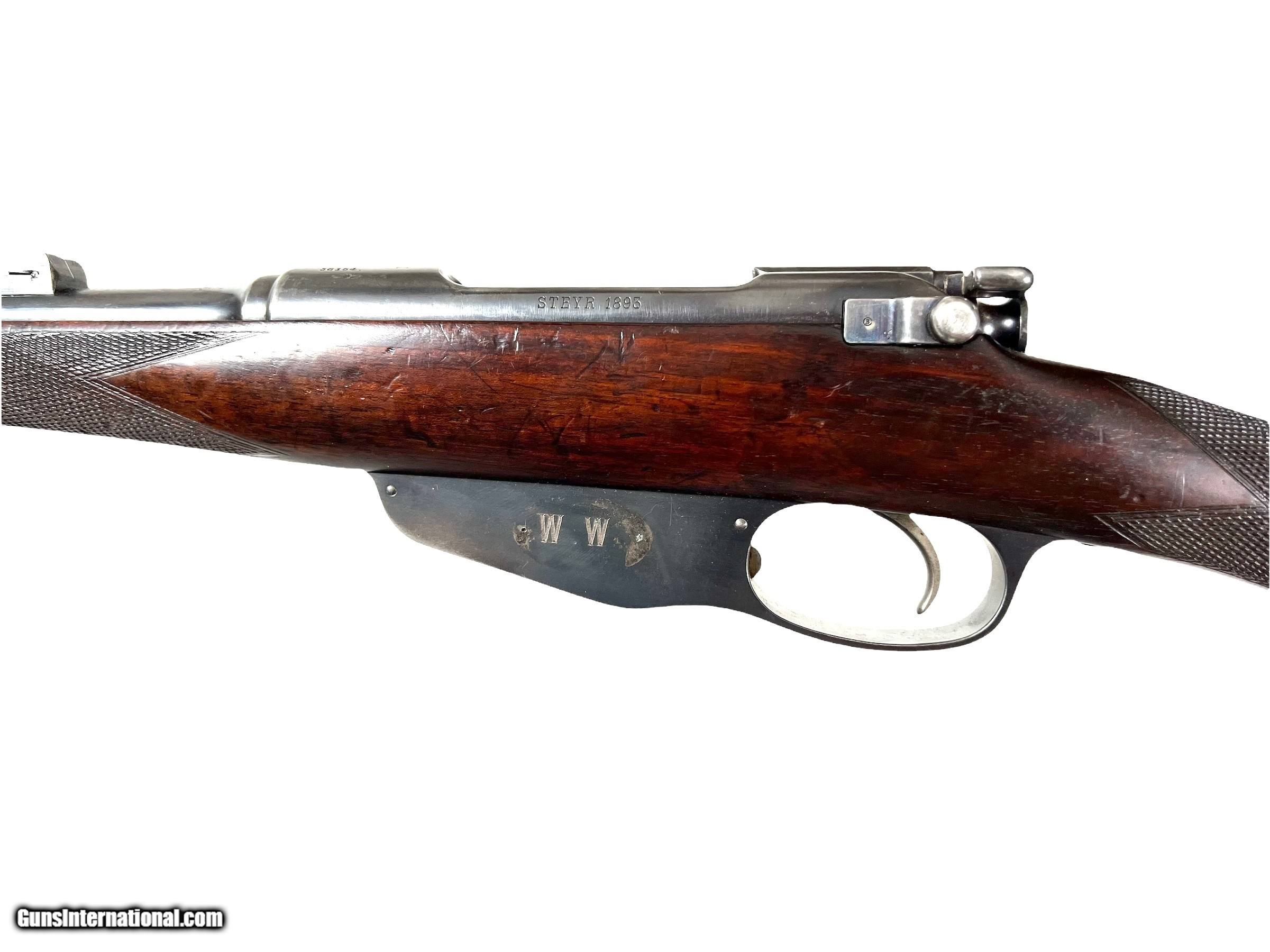 Description: Westley Richards 1892 mannlicher 375 2 1/2" nitro 25" barrel with excellent bore Express rear sight( standing 100 yard, folding to 300 yards, and a ladder to 1200 yards) Ramp front sight LOP 14" 6lbs 14oz Original condition early mannlicher express rifle that shoots 270grain bullets very well 20 rounds included with the rifle SOLD Antique: Yes Condition: Very good original condition Bore Condition: Excellent |