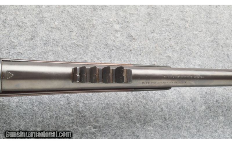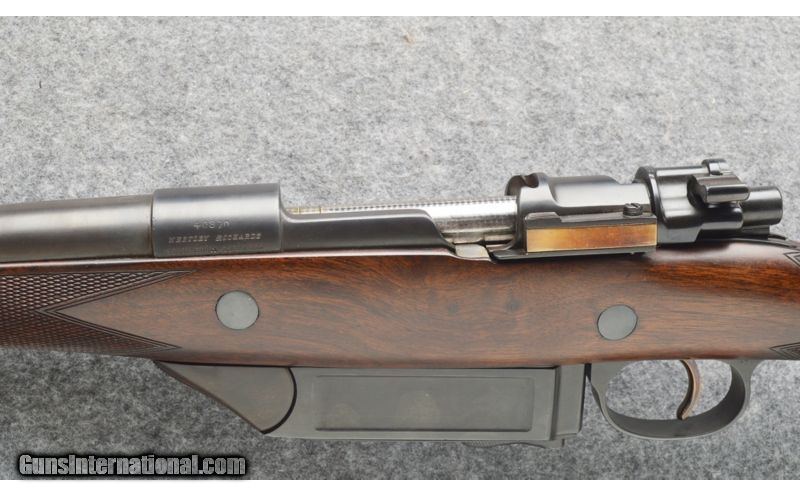 Description: Westley Richards 425 MAG Custom Big Game Rifle. Very high condition. SOLD Manufacturer: 1920-1921 production Caliber Info: .425 MAG Chambers: Express Magnum Metal Condition: Few handling marks Wood Condition: Few very light handling marks Bore Condition: Strong rifling Barrels: 28 inches Triggers: Adjustable Trigger Stock Dimensions: 14" LOP Fore End: Checkered pattern Butt Pad: Rubber Weight: 8.9 lb. Sights: Fixed Quad-leaf sight w. raised dovetail bladefront Item Location: Post Falls, ID |