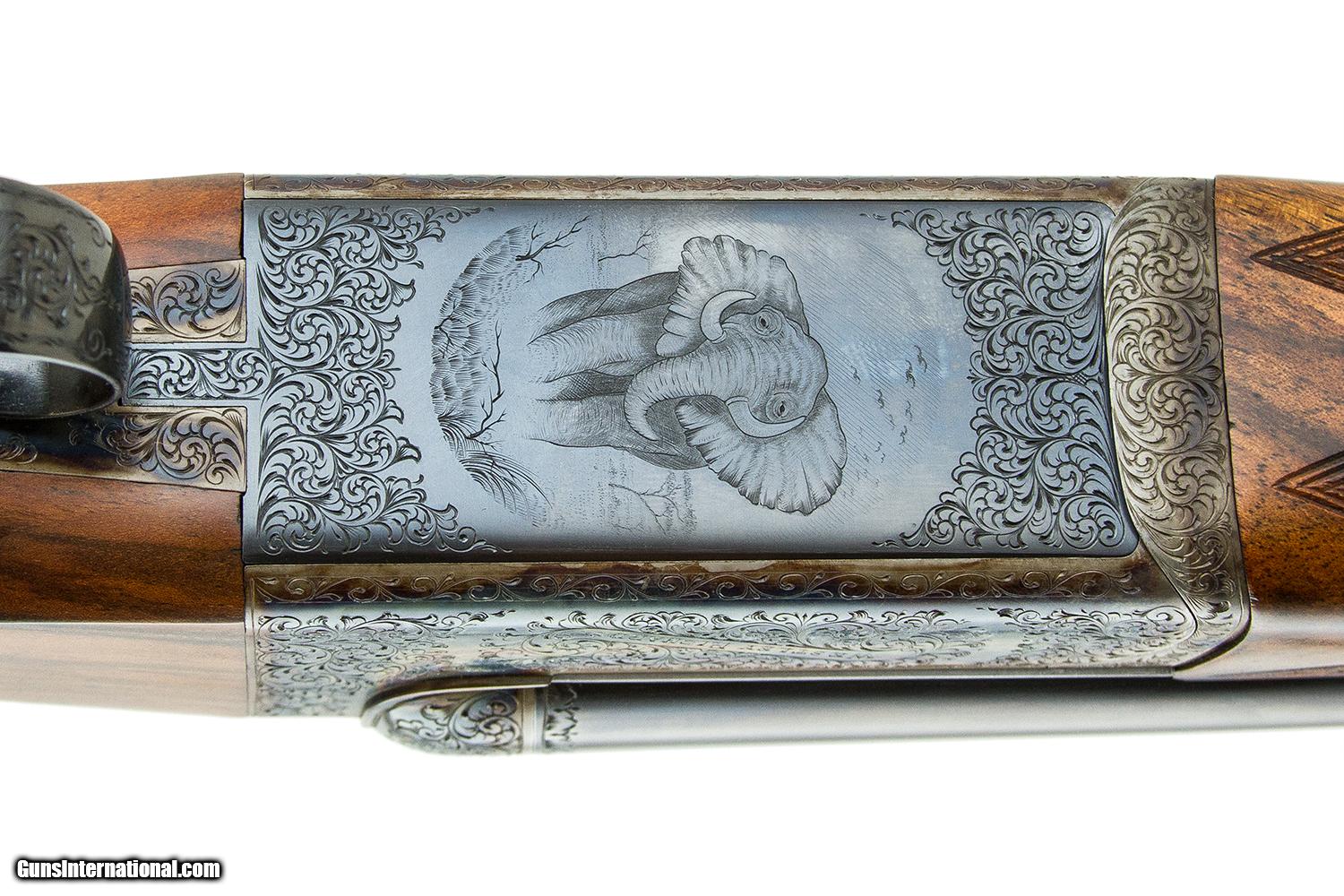 Description: completed 1998 25" BARREL WITH 1/4 RIB SIGHT AND 3 LEAF EXPRESS SIGHT WITH PATENTED WESTLEY NIGHT SIGHT DOUBLE TRIGGER EJECTORS SPLINTER FOREARM PISTOL GRIP BONE FOREARM TIP CASE COLORED ENGRAVED TRAP DOOR GRIP CAP MAKERS CASE TEST FIRED ONLY 11BS 4 OZ X 14 9/16 LOP SOLD |