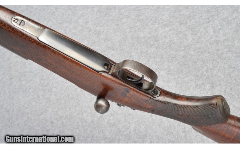 Description: Westley Richards Bolt Action Rifle in 318 AE,Serial No. LT42377. Marked “Westley Richards & Co London", MADE FOR FEREDAY & SONS SOLE AGENTS SALISBURY RHODESIA. Mauser based rifle shows heavy metal finish wear, Horn capped and tipped stock was repaired and refinished at sometime. 26 inch barrel equipped with an island base front sight with fine bead. Rear sight with 1 standing blade marked 100, 2 folding blades marked 200 and 300 and folding ladder. SOLD Caliber Info: 318 Accelerated Express Metal Condition: Bluing worn to light gray Wood Condition: Repaired and refinished . Bore Condition: Sharp rifling, slight frost in the grooves Barrels: 26 Inch Stock: Capped Pistol Grip, Checkered Walnut Stock Dimensions: 14 5/8 " LOP Fore End: Horn Tip Butt Pad: Steel with Trapdoor Weight: 7 Lbs 14 Ozs Sights: One Standing-Two Leaf with One Folding Ladder Rear Sight Item Location: Buda, TX |