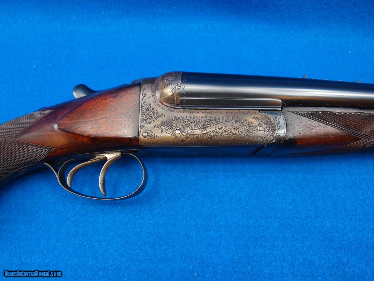 Description: Westley Richards & Co. 450/400 Nitro Express, Boxlock with Scroll Engraving, One Standing With Four Folding Sights (100-500) Sling Eyes,Checkered Forend with Ebony Tip, Checkered Pistol Grip, Bushed Firing Pin, Dolls Head, 26" BBL, 15 1/4" LOP, 11lbs 6oz. London Address Line on Barrel, 450/400-60/400 Cartridge 3 /14 Case Behind Address. Add 3% For Credit Cards S&H $75 SOLD |