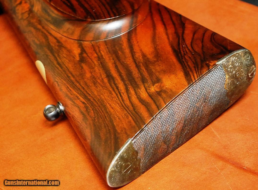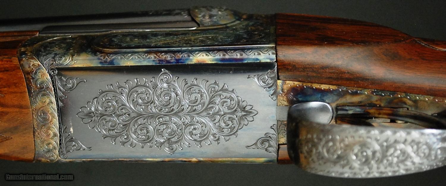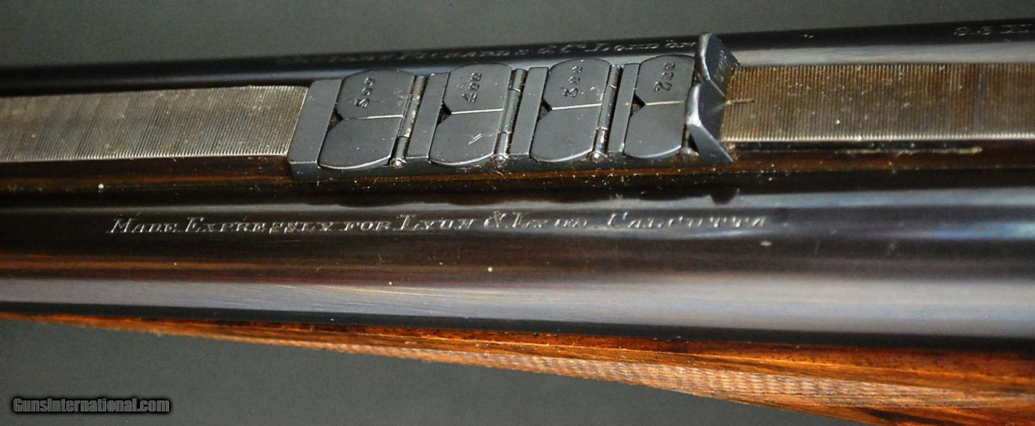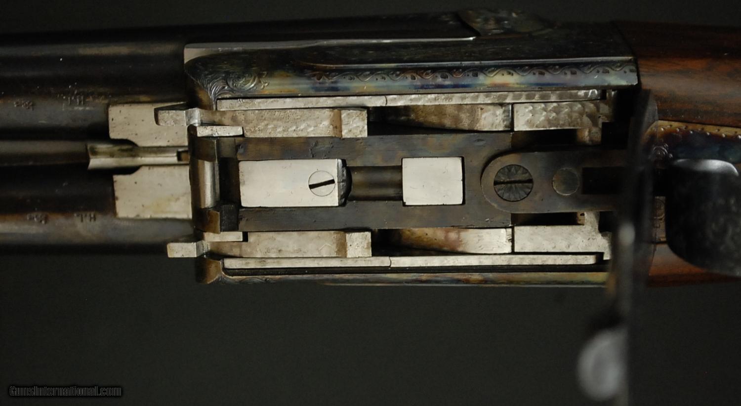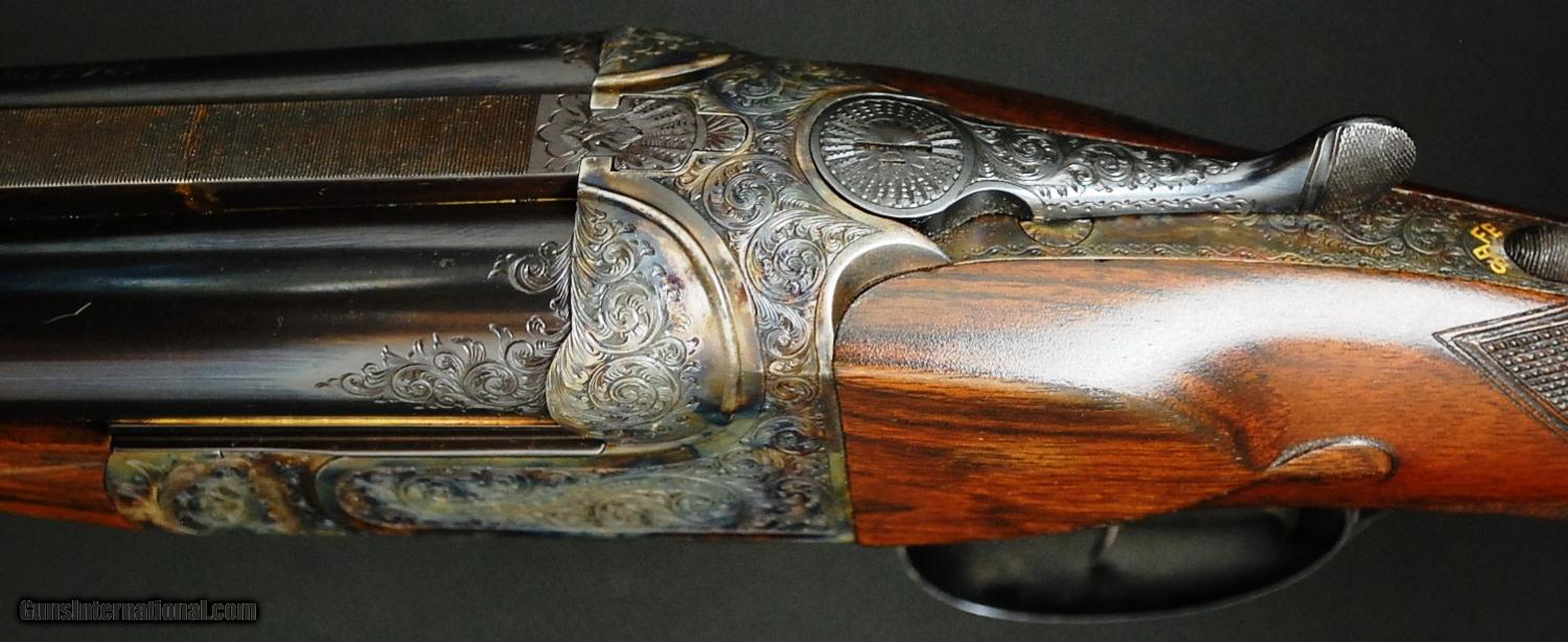 Description: Westley Richards - Double Rifle, 9.3 x 74R, 26” barrels, hinged plate drop lock, double triggers, cheek piece, flip leaf sights, checkered butt with heal and toe plate, ornamental scroll engraving, pistol grip stock with long tang trigger guard and cap, splinter forend, automatic ejectors, auto-safety, sling swivels, in its maker's oak and leather case with accessories, gun is in very good condition condition, the very highest quality workmanship available for immediate delivery.