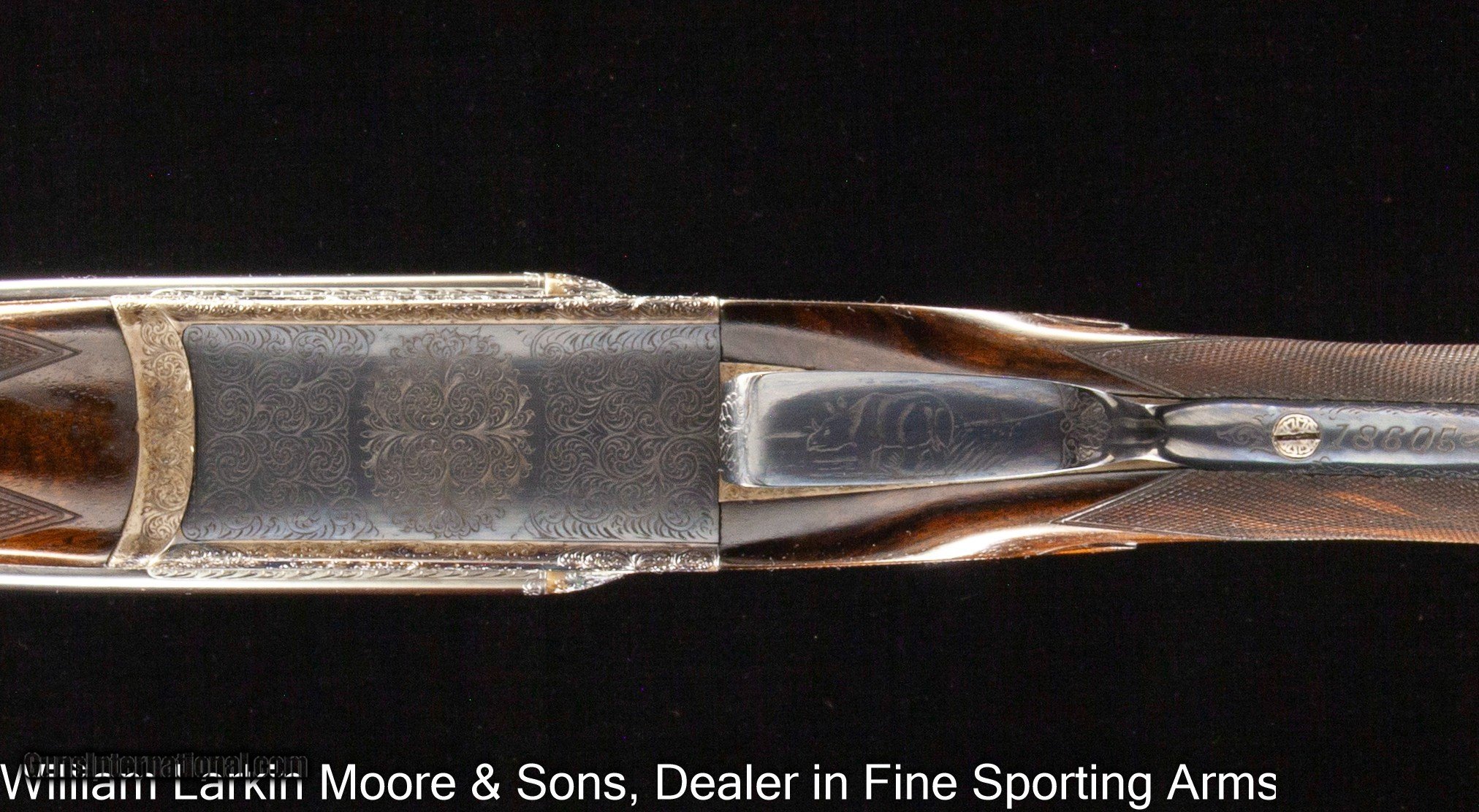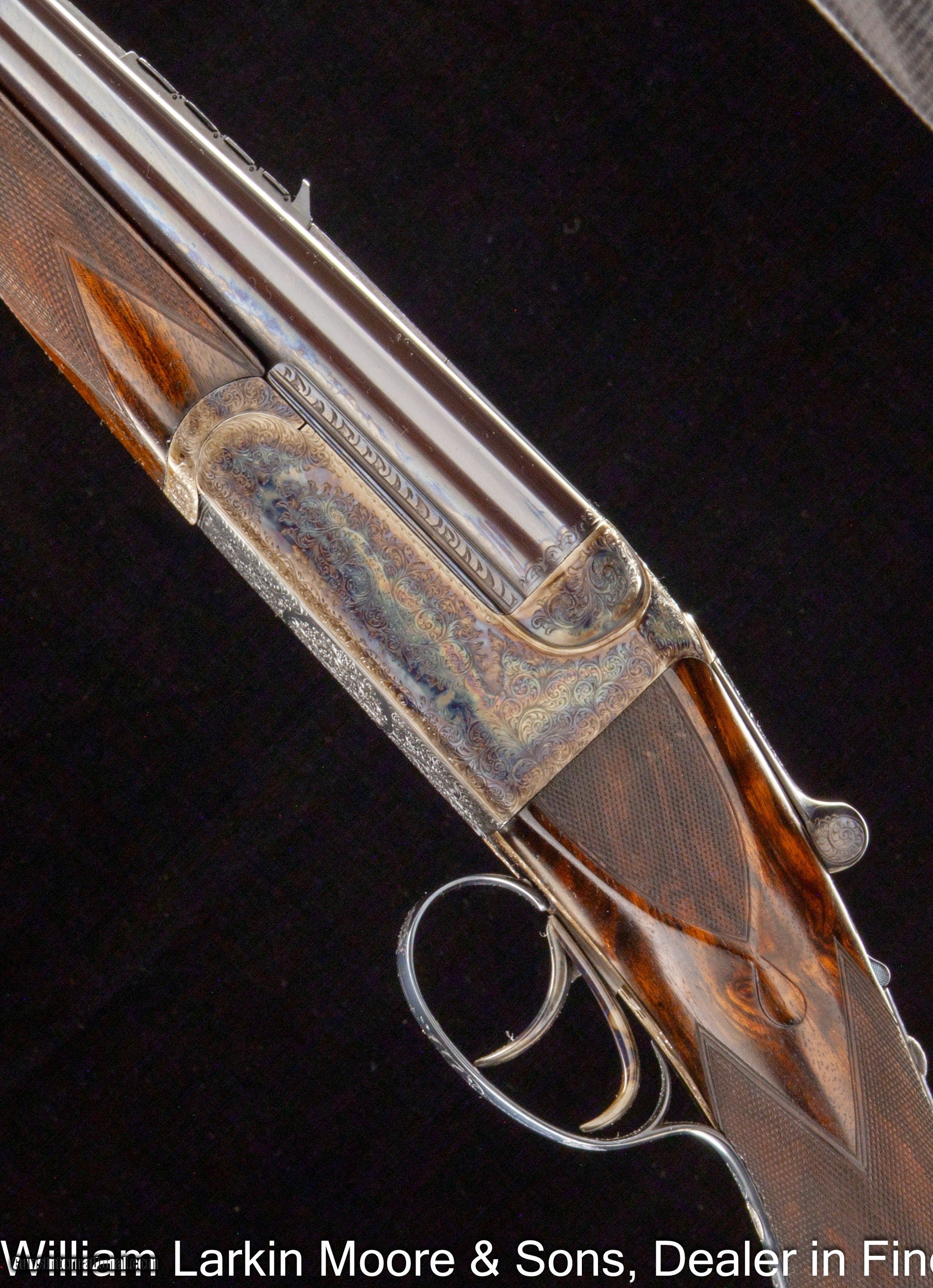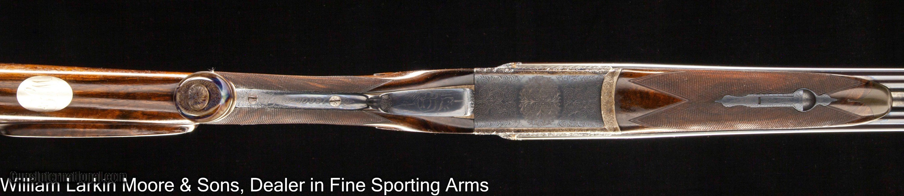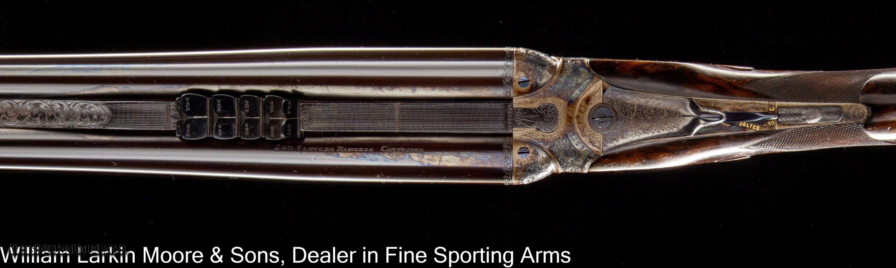 Description: ID # 8508 Make WESTLEY RICHARDS Model DROPLOCK EXPRESS, 2 BARREL SET Configuration Double Rifle Gauge / Caliber .500 SCHULLER RIMLESS (.500 JEFFREY) AND .458 WIN. MAG. Price $75,000.00 Serial # 18602 Country of Origin England Barrel Length (in Inches) .500 BBL 24", .458 BBL. 22" Choke R/U Choke L/O Trigger DT (Double) Stock Configuration Pistol Grip Forearm Type Splinter Forearm Rib Type 1/4 Rib with express sights(1 standing 3 folding leafs), HOODED FRONT SIGHT FLIP-UP NIGHT SIGHT Receiver Finish Casehardened Engraving Type Fine Scroll & Rosette Engraving Other Options TRAP STEEL GRIP CAP, BOLTED SAFETY, CHECKERED PANELS W/ DROP POINTS, GOLD OVAL, PAD Condition EXC. Condition Weight 11LB 14OZ Dimensions LOP 14-1/2" Other Details THE GUN WAS RETURNED TO THE FACTORY FOR THE ADDITIONAL SET OF .458 WIN. MAG. BARRELS IN 1975 William Larkin Moore & Sons LLC 16622 N 91st Street Suite 102-103 Scottsdale, AZ 85260 USA Tel or Text: 480-951-8913 Fax: 480-951-3677 SOLD |