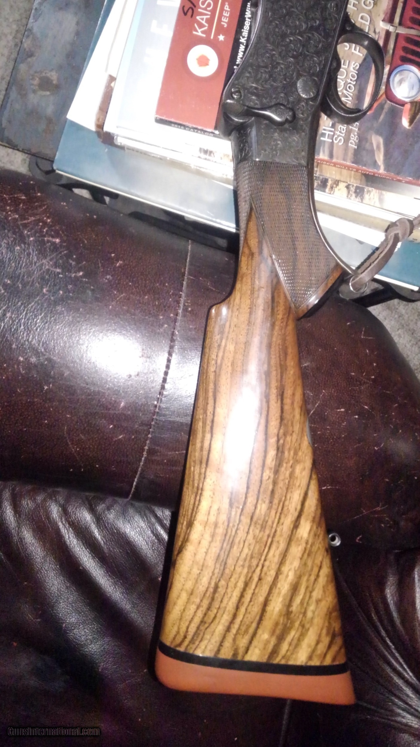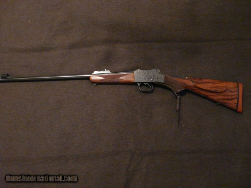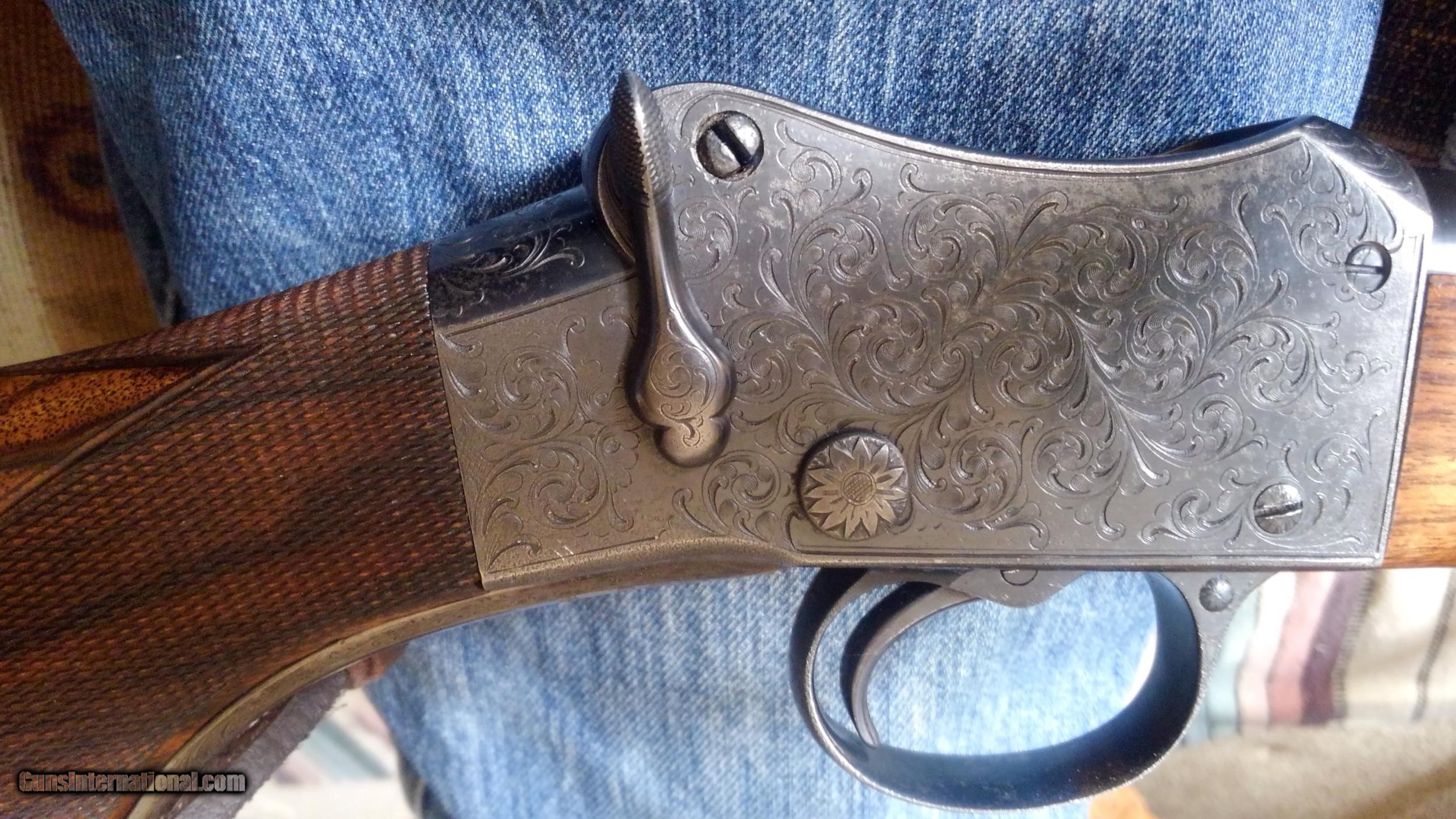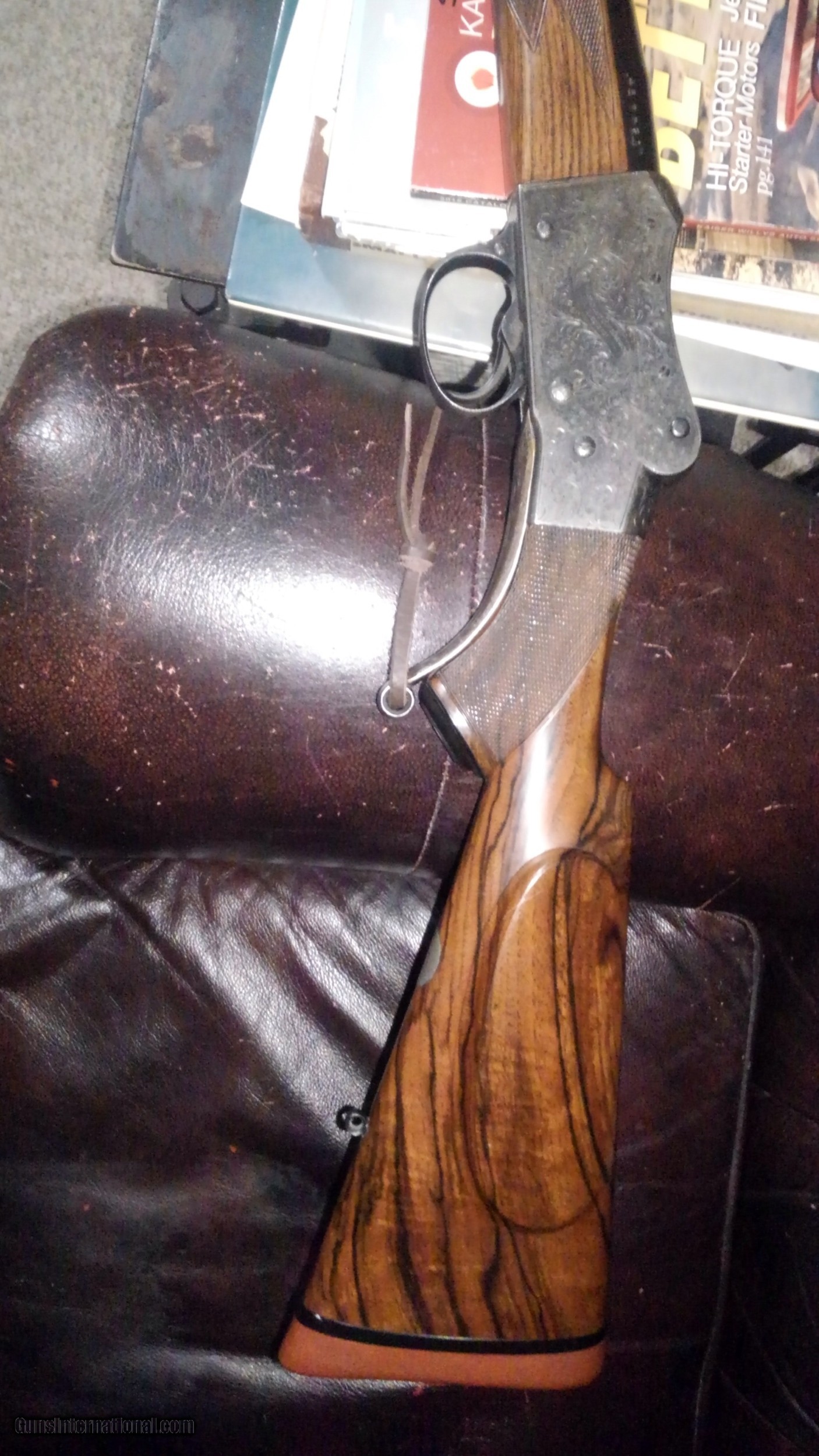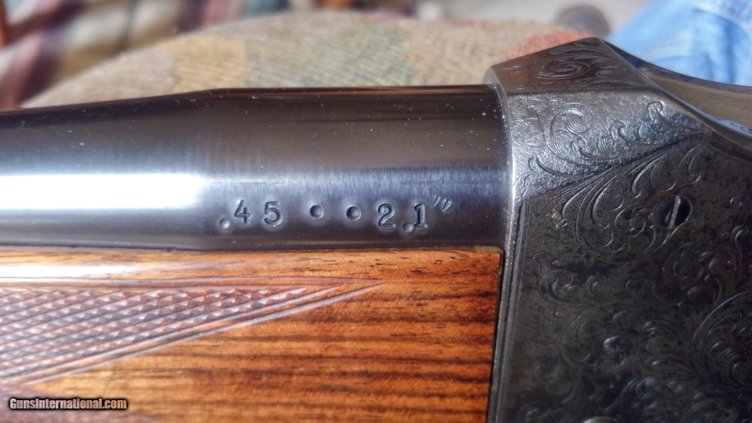 Description: A fine custom engraved single shot rifle in 45 x 2.1" or 45-70. I'm not sure of year of manufacture or who the actual maker of the gun is but it truly is a beautiful rifle! It sports a fine three leaf express type sight, absolutely beautiful wood, the fit and finish are phenomenal! Bore is perfect, I tried to show everything in the pictures but please email for any questions or comments and I will do my best to answer them. I am starting this rifle at a price that I feel is reasonable as it would take at least that much to build such a fine fire arm. SOLD Curio/Relic: Yes Manufacturer: Westley Richards Model: Martini Single Shot Caliber Info: 45-70 Condition: Excellent Metal Condition: Excellent Wood Condition: Excellent Bore Condition: Excellent Action: Single Shot |