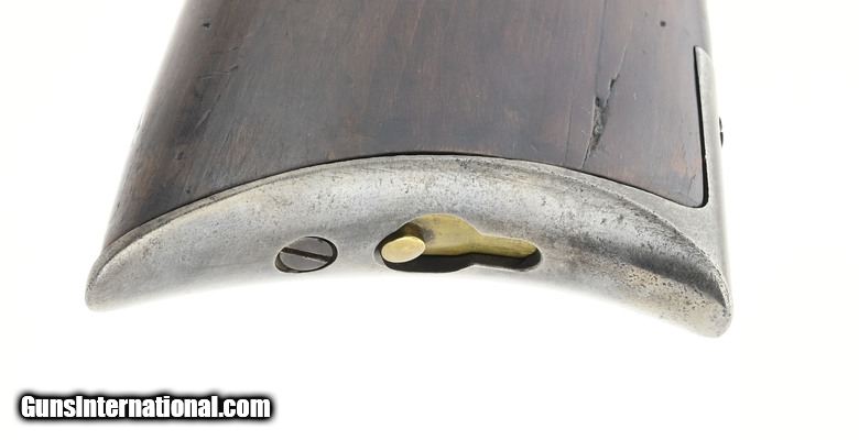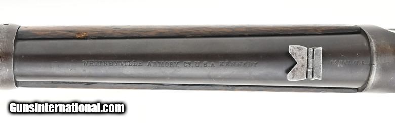Description: " Scarce Whitney-Kennedy saddle ring carbine with s-lever. Only about 1,000 carbines were made circa 1879-1886. The overall length is approximately 38¾”. The 20” round .44 caliber centerfire (.44-40) barrel has a good shootable bore with strong rifling and a few areas of pitting. Metal is a pleasing smooth blue/brown patina. The butt stock is good with a gap to the frame that could be fixed. It is also undersized at the wrist. The forearm is very good. The action functions correctly. The barrel is marked “Whitneyville Armory CT. USA Kennedy. The saddle ring is present. This carbine competed with the Winchester Model 1873 it belongs in any carbine or Western collection. SOLD Antique: Yes |