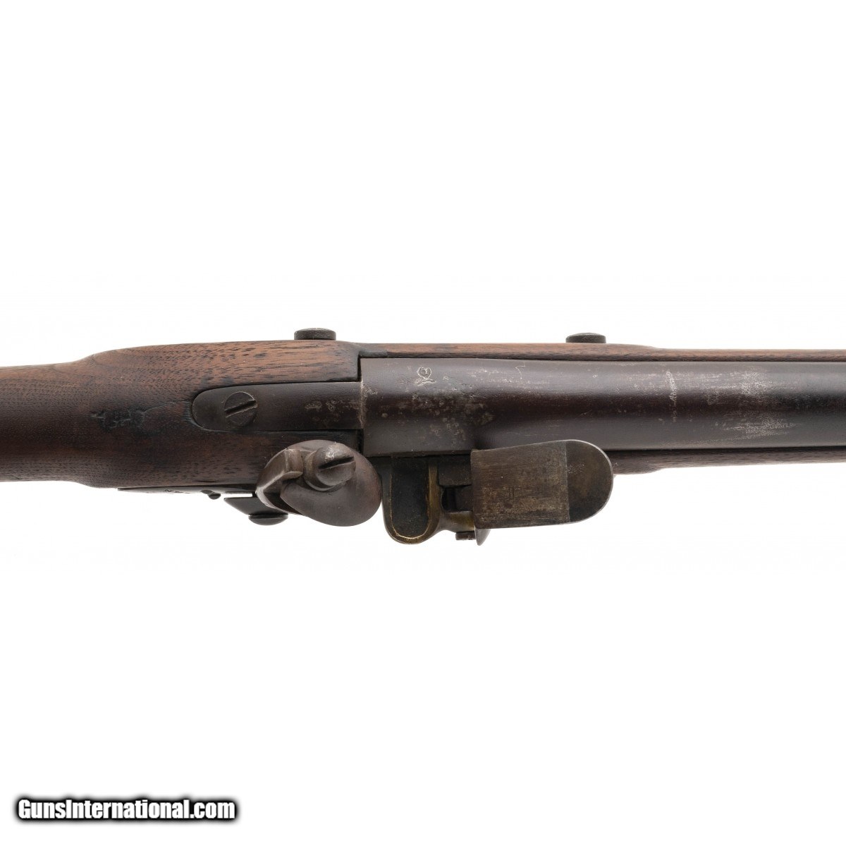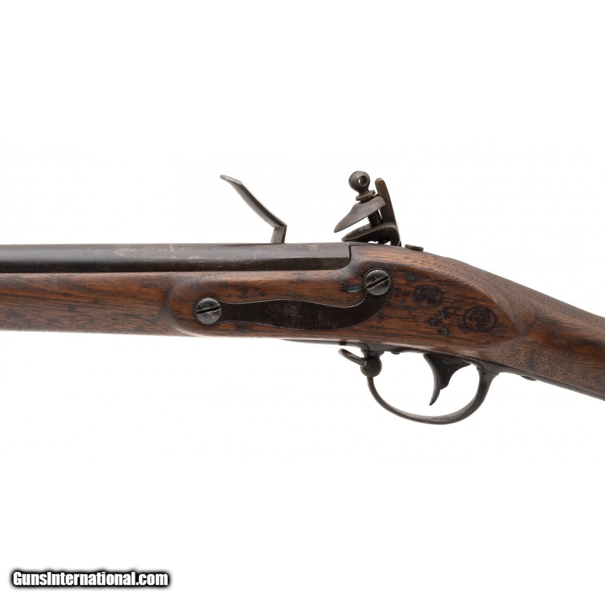 Description: " NSN, made in 1829, .69 caliber, 42"" round smoothbore barrel. First contract of 15,000 flintlock muskets by Whitney with the Lock plate marked ""US/P&E.W Blake"" forward of the hammer with ""NEW HAVEN/1829"" Barrel and Iron parts are a dark brown patina with surface oxidation noted. Stock has been lightly sanded at some point but retains two handsome cartouches with ""Ohio"" also stamped in between. Action holds at half and full cock. SOLD Antique: Yes |