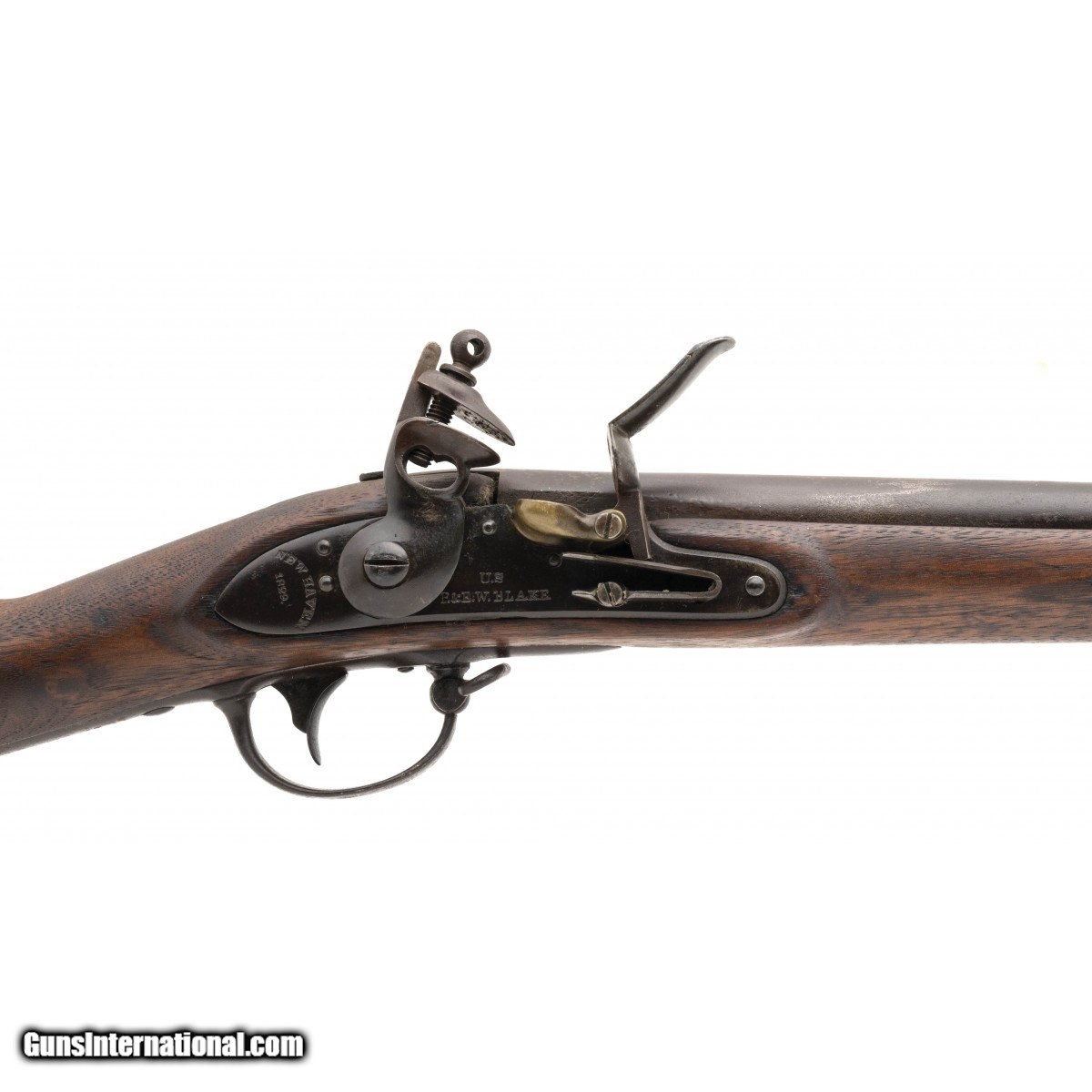 NSN, made in 1829, .69 caliber, 42"" round smoothbore barrel. First contract of 15,000 flintlock muskets by Whitney with the Lock plate marked ""US/P&E.W Blake"" forward of the hammer with ""NEW HAVEN/1829"" Barrel and Iron parts are a dark brown patina with surface oxidation noted. Stock has been lightly sanded at some point but retains two handsome cartouches with ""Ohio"" also stamped in between. Action holds at half and full cock.