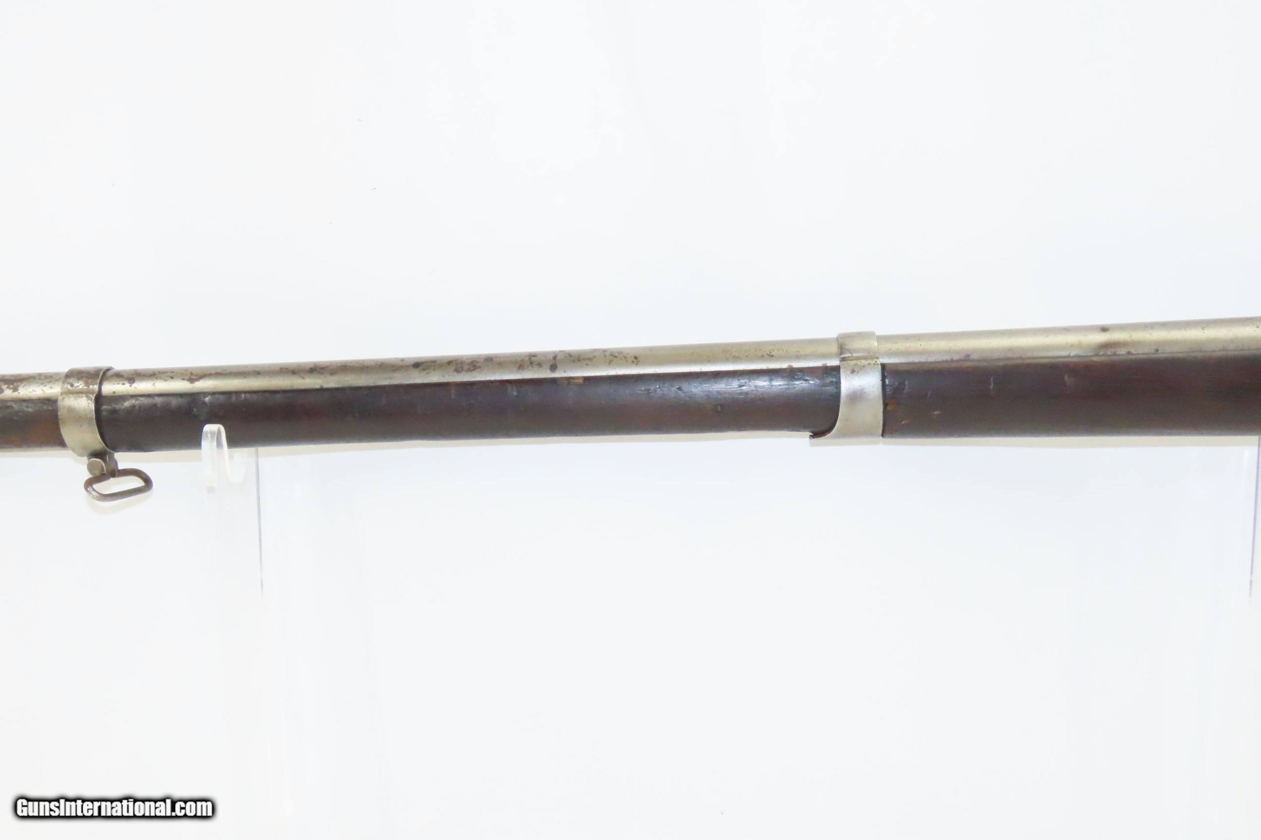 Description: RARE Massachusetts STATE MILITIA M1816 WHITNEY CONVERSION Musket Antique 1 of 300 with “Cone Conversion” by ELI WHITNEY Here we present an antique Model 1816 Massachusetts Militia Percussion Conversion Musket, made in Millbury, Massachusetts circa 1833 and converted circa 1851. This period of United States history saw quite a small national standing army and hosts of statewide militias. These were meant for repelling foreign invasion, creating a barrier between states and the federal government, defending towns from attack and uprisings from Native Americans, slaves, and bandits, among other policing duties. Militias were sometimes longstanding, prestigious and influential organizations. At other times they were ad hoc and reactive to the given circumstances. There was a great distrust of a federally controlled militia system or a large standing army in the early days of the Republic. This musket was contracted to be made by Asa Waters Jr., a very successful businessman in Millbury, Massachusetts, who learned gun making from his father. He and his brother established their own gun making firm. He went on to go into banking and politics. The Georgian Colonial-style mansion that he built for his wife, beginning in 1824 still stands today and has been called “the finest example of Georgian Colonial style in the country.” The materials alone took two years to gather. His contribution to the federal and state supply of Model 1816 muskets was about 36,000 over a 21-year period. This number in contrast to the 675,000 produced at the two federal armories. There were only 300 of these conversions performed by Eli Whitney sometime around 1851. This included a thinned buttstock and a heavy brass buttplate, which this example is marked “55” on the top tang and “B” on the left side, indicating a rack/inventory number. Most observed will be Whitney muskets but other specimens from other contracts have been known. The overall condition is good. Strong action. The bore is in good shape (aged). Solid stock with an above amount of wear (dents, dings, and a stable crack over top the wrist). “1883” and “US/A. WATERS” is marked on the lock. A bit of a cartouche remnant remains on the left wrist and a militia type “P” is marked on the breech. A nice example of a rare gun. Own the original! This is a legitimate antique and not a reproduction. Barrel is 42 inches. Caliber: .69 Percussion Overall condition as seen in photos. Very Fast. Very Safe. FREE SHIPPING WORLDWIDE. Delivered directly to your door by express mail! Guaranteed AUTHENTIC & Includes CERTIFICATE OF AUTHENTICITY. ancestryguns $2000 #215278 SOLD Antique: Yes |