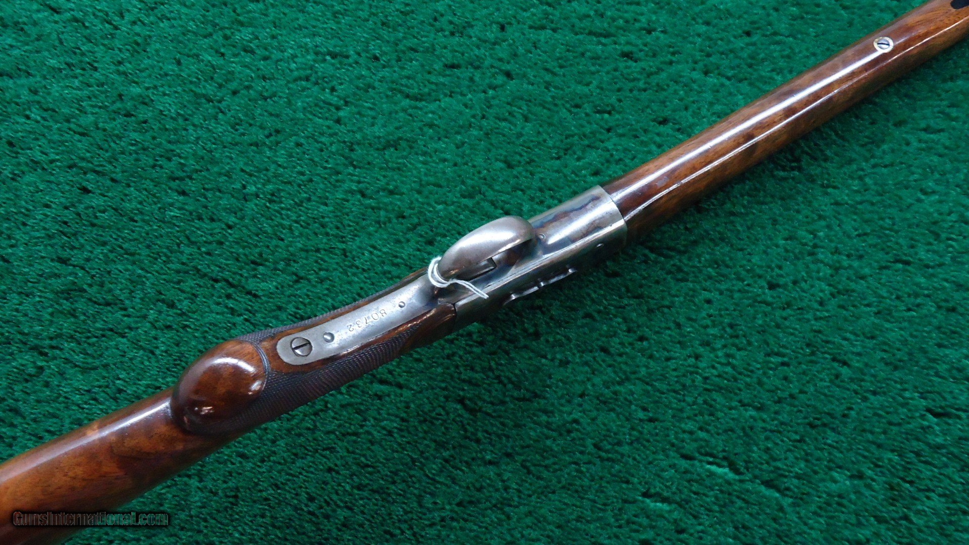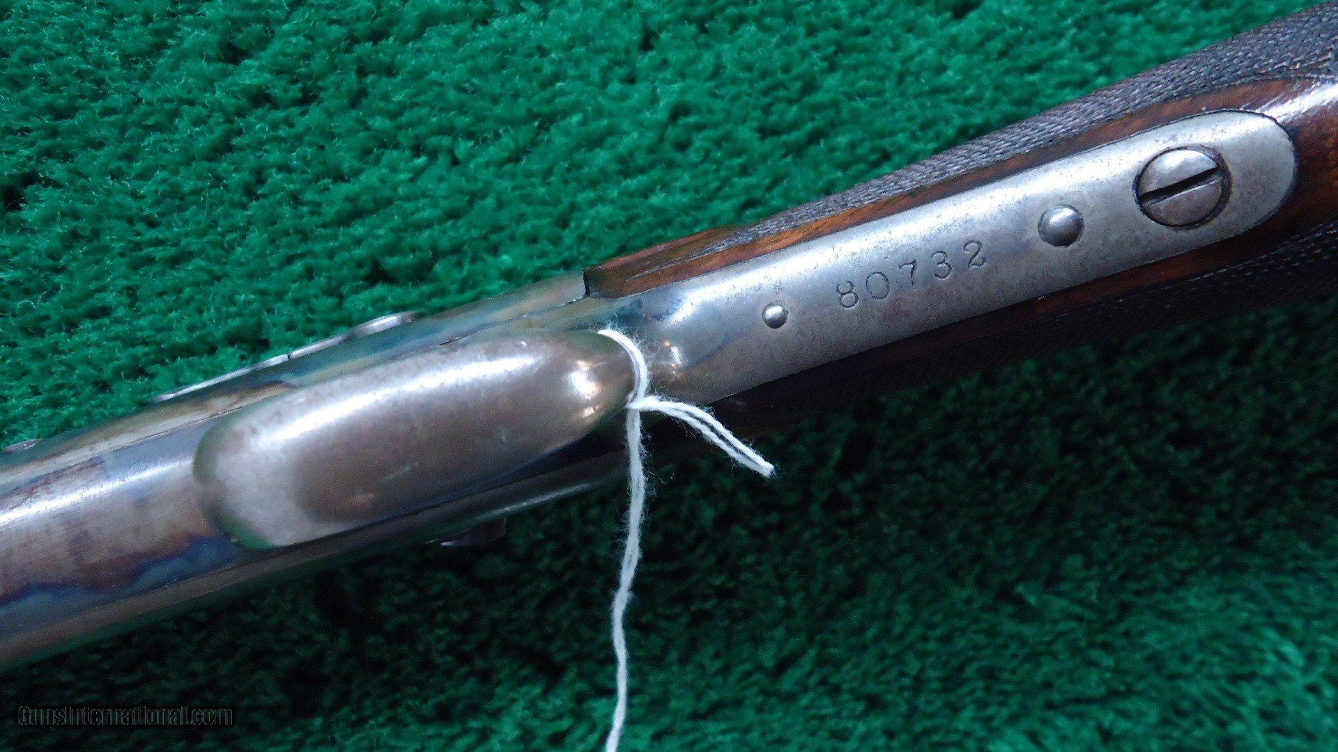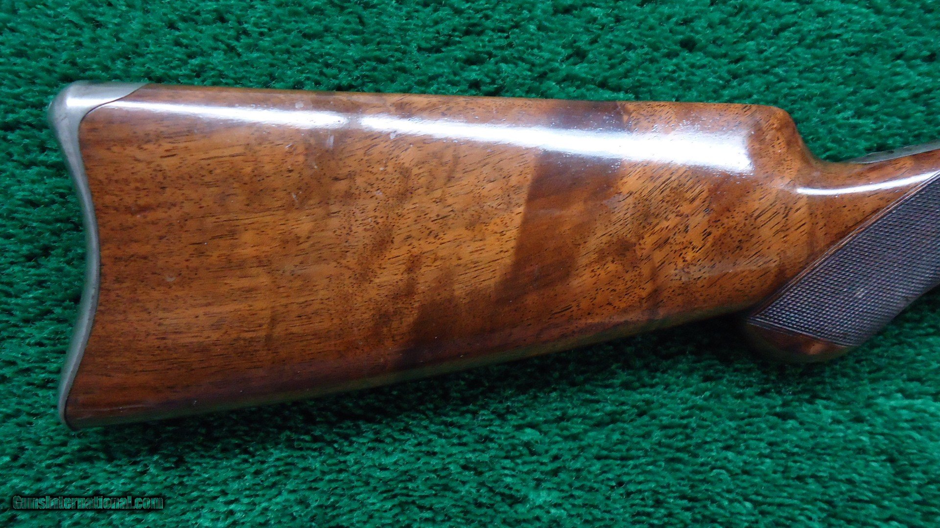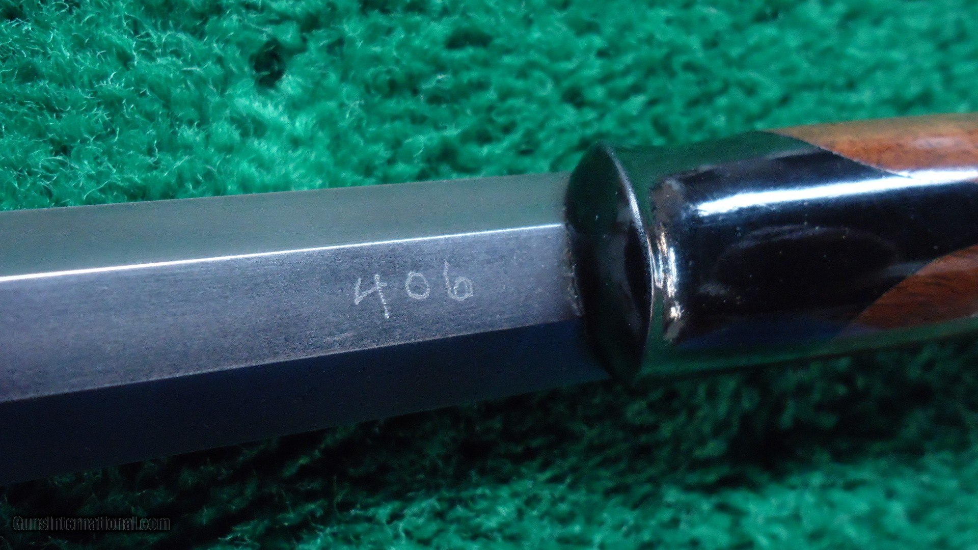 Description: What is interesting about these guns is that unless you are in the know on Rolling Blocks, the Whitney and the Remington are almost indistinguishable. Of course you see more of the Remington Rolling blocks. This one is the Whitney Arms Co. which is marked on the upper tang. It is my understanding they call this one the style 2. Caliber 40-60. This gun features dlx pistol grip wood, case colored frame and 28 inch octagon barrel. This would be a mid-weight barrel with aging blue with most blue present. Number 406 on the bottom flat of the barrel. What that is for? Front sight is a blade style and looks like it was made by a gunsmith. Nice job was done. I believe the rear sight is an original Whitney Arms sight. Elevator is also quite unique and I believe that is correct also. Frame has all case colors present except a little by the lower tang. They are sharp vivid case colors! Wood is in exceptional condition. Light shrinkage at the toe and a little at the frame. Forearm is a nice piece of wood. Light chipping on the right side. The Rolling Block is a fine rifle no matter the manufacture. If you want something different and scarce, get a Whitney Rolling Block. Leroy Merz Antique Firearms specializes in antique and vintage Winchesters and other fine American firearms. Since 1965 Mr. Merz has taken part in the world of firearms and has been a contributor to many well known reference books. Just recently we mailed the 129th edition of our privately-published catalog. We have hundreds of additional guns in every price range at our home online. Search for Merz Antiques in google. SOLD Antique: Yes |