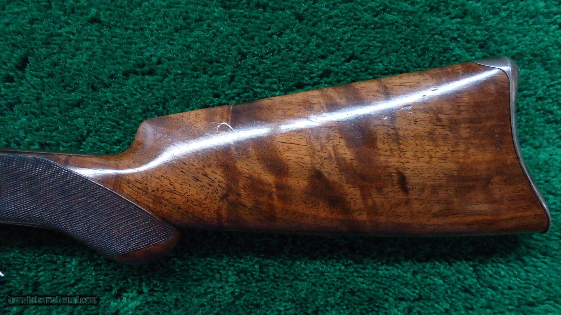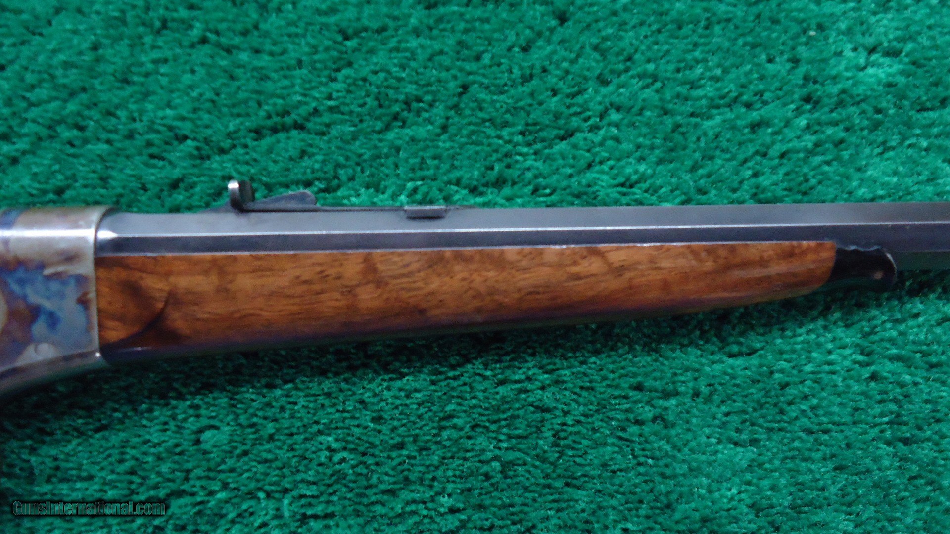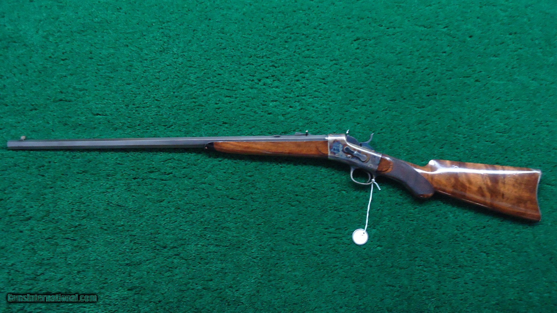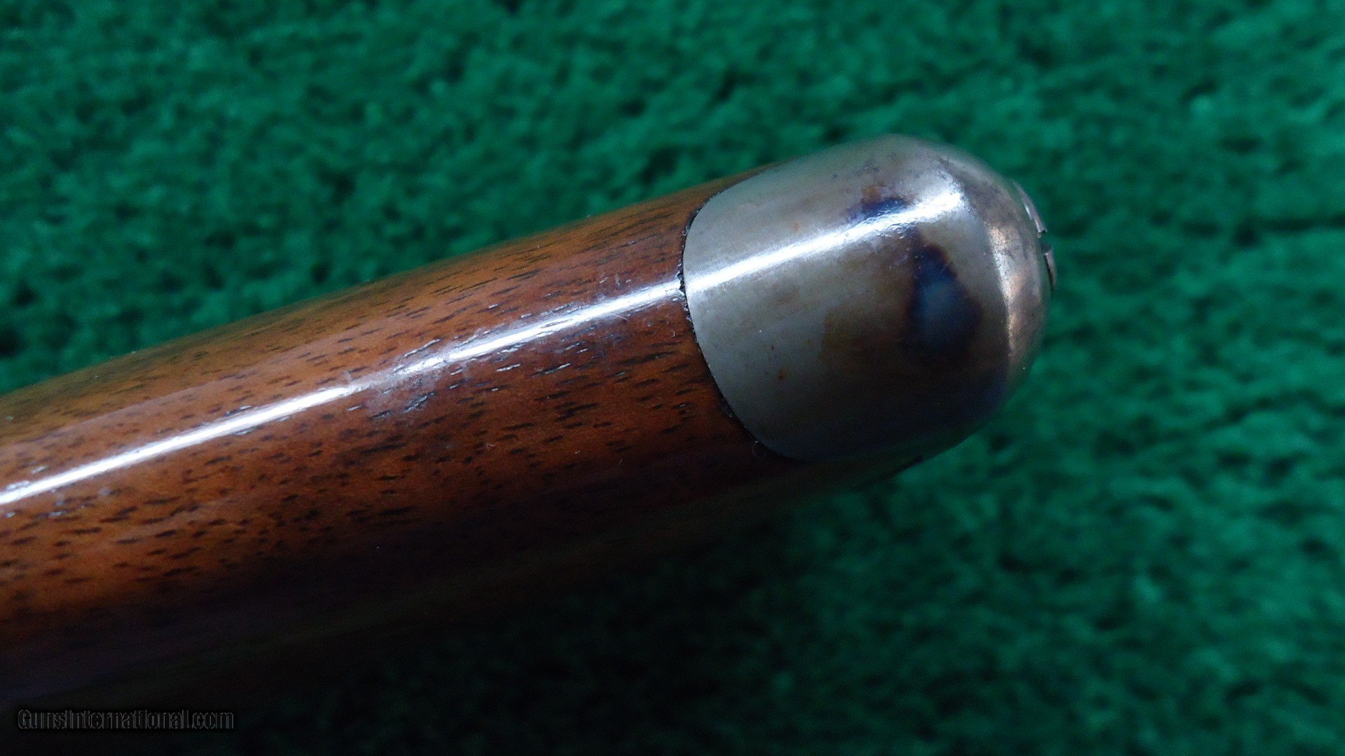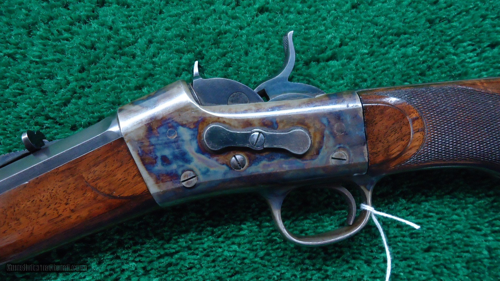 Description: What is interesting about these guns is that unless you are in the know on Rolling Blocks, the Whitney and the Remington are almost indistinguishable. Of course you see more of the Remington Rolling blocks. This one is the Whitney Arms Co. which is marked on the upper tang. It is my understanding they call this one the style 2. Caliber 40-60. This gun features dlx pistol grip wood, case colored frame and 28 inch octagon barrel. This would be a mid-weight barrel with aging blue with most blue present. Number 406 on the bottom flat of the barrel. What that is for? Front sight is a blade style and looks like it was made by a gunsmith. Nice job was done. I believe the rear sight is an original Whitney Arms sight. Elevator is also quite unique and I believe that is correct also. Frame has all case colors present except a little by the lower tang. They are sharp vivid case colors! Wood is in exceptional condition. Light shrinkage at the toe and a little at the frame. Forearm is a nice piece of wood. Light chipping on the right side. The Rolling Block is a fine rifle no matter the manufacture. If you want something different and scarce, get a Whitney Rolling Block. Leroy Merz Antique Firearms specializes in antique and vintage Winchesters and other fine American firearms. Since 1965 Mr. Merz has taken part in the world of firearms and has been a contributor to many well known reference books. Just recently we mailed the 129th edition of our privately-published catalog. We have hundreds of additional guns in every price range at our home online. Search for Merz Antiques in google. SOLD Antique: Yes |